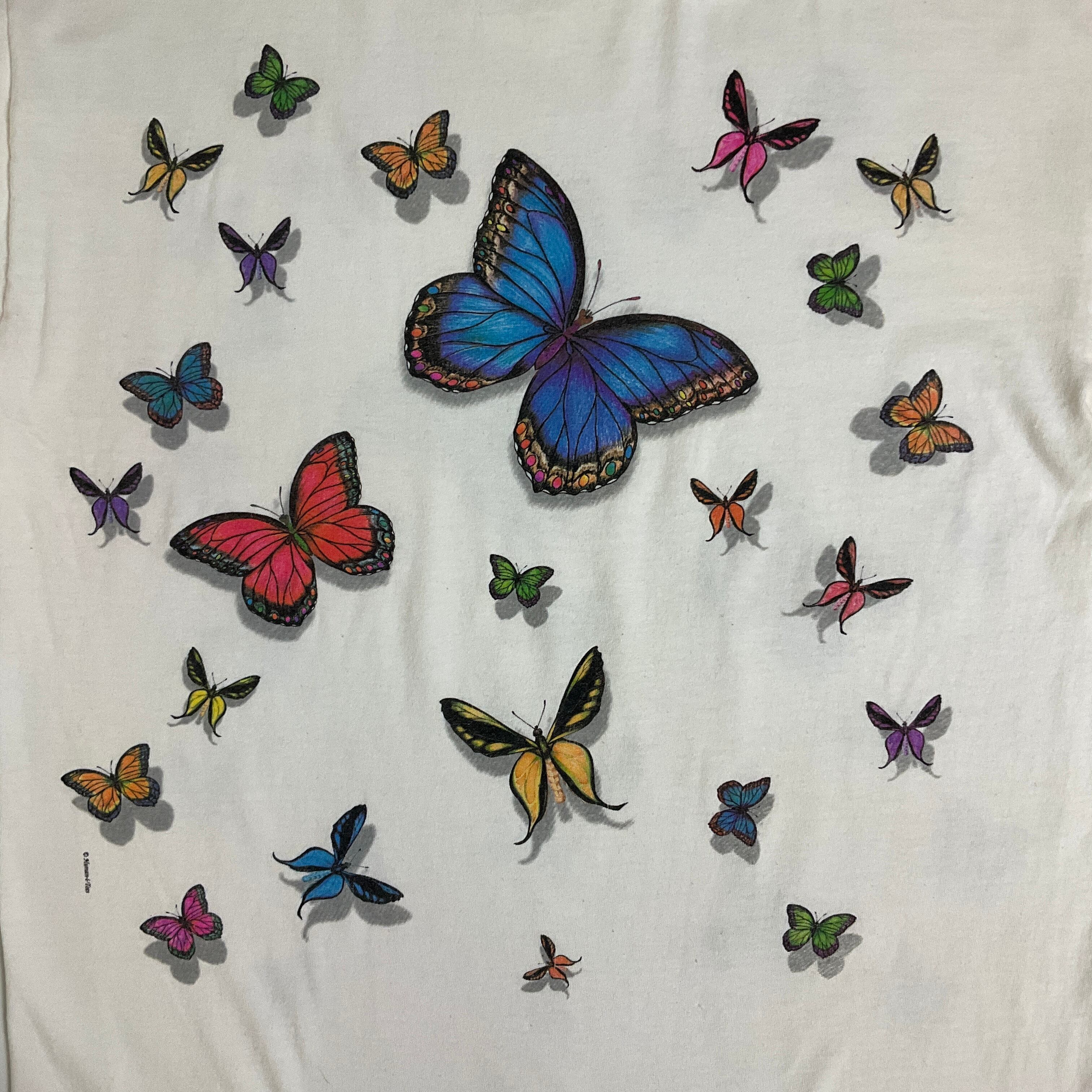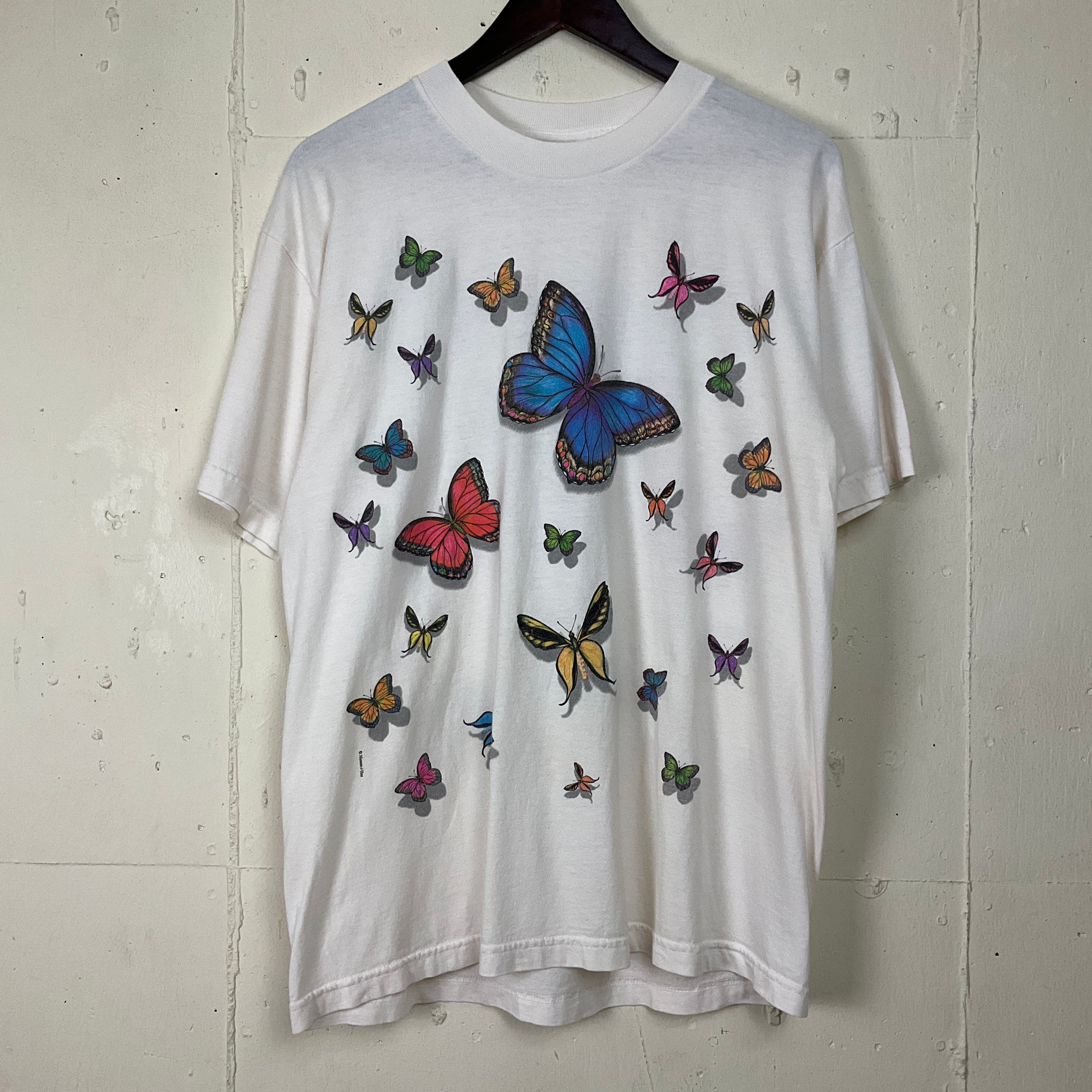 90年代 90s 蝶々 バタフライ アニマル 両面プリント Tシャツ 古着 ヴィンテージ ビンテージ メンズL ホワイト 白 【f240220003】
