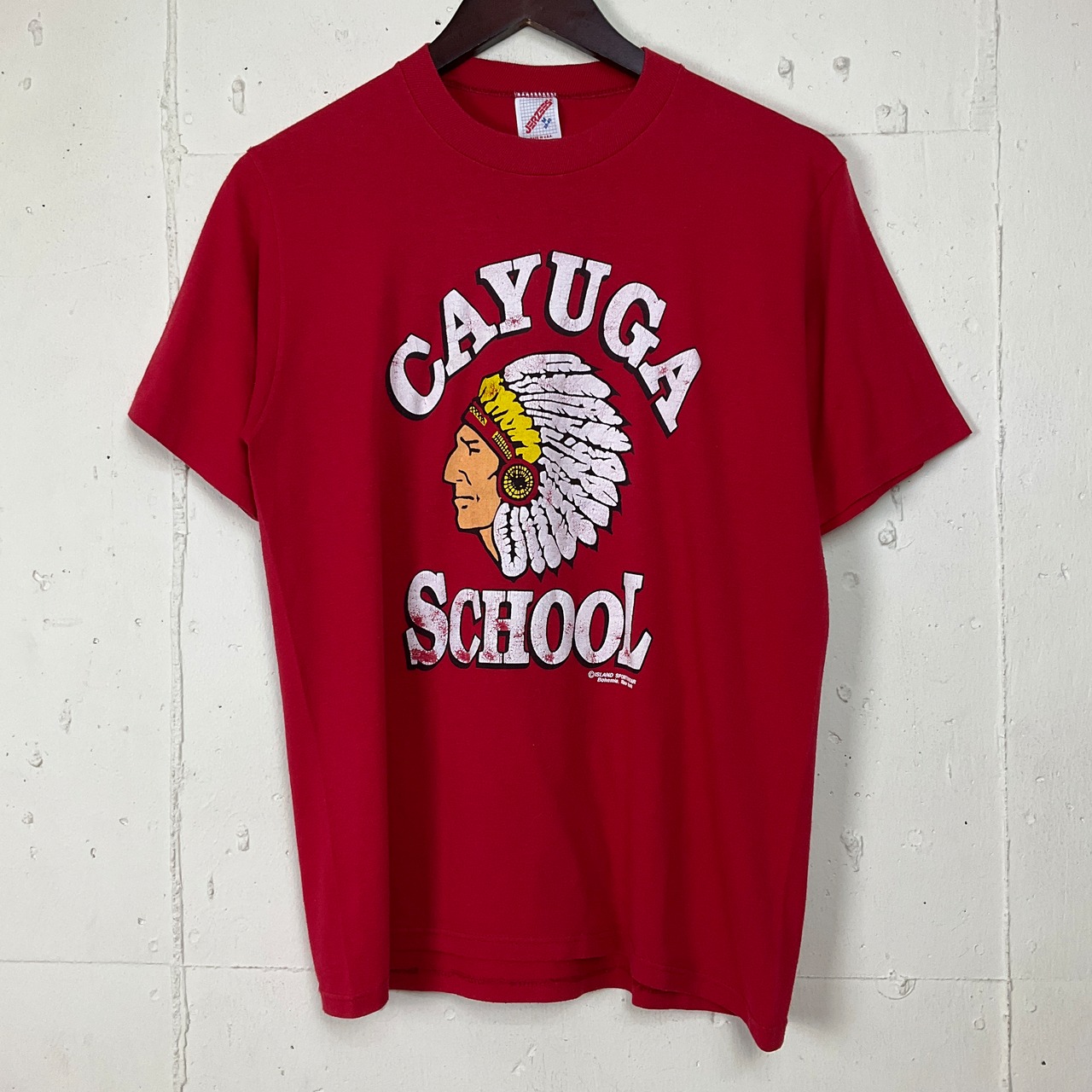 USA製 80年代 80s インディアン カレッジ プリント Tシャツ 古着 ヴィンテージ ビンテージ メンズM レディース レッド 赤 シングルステッチ 【f240220011】