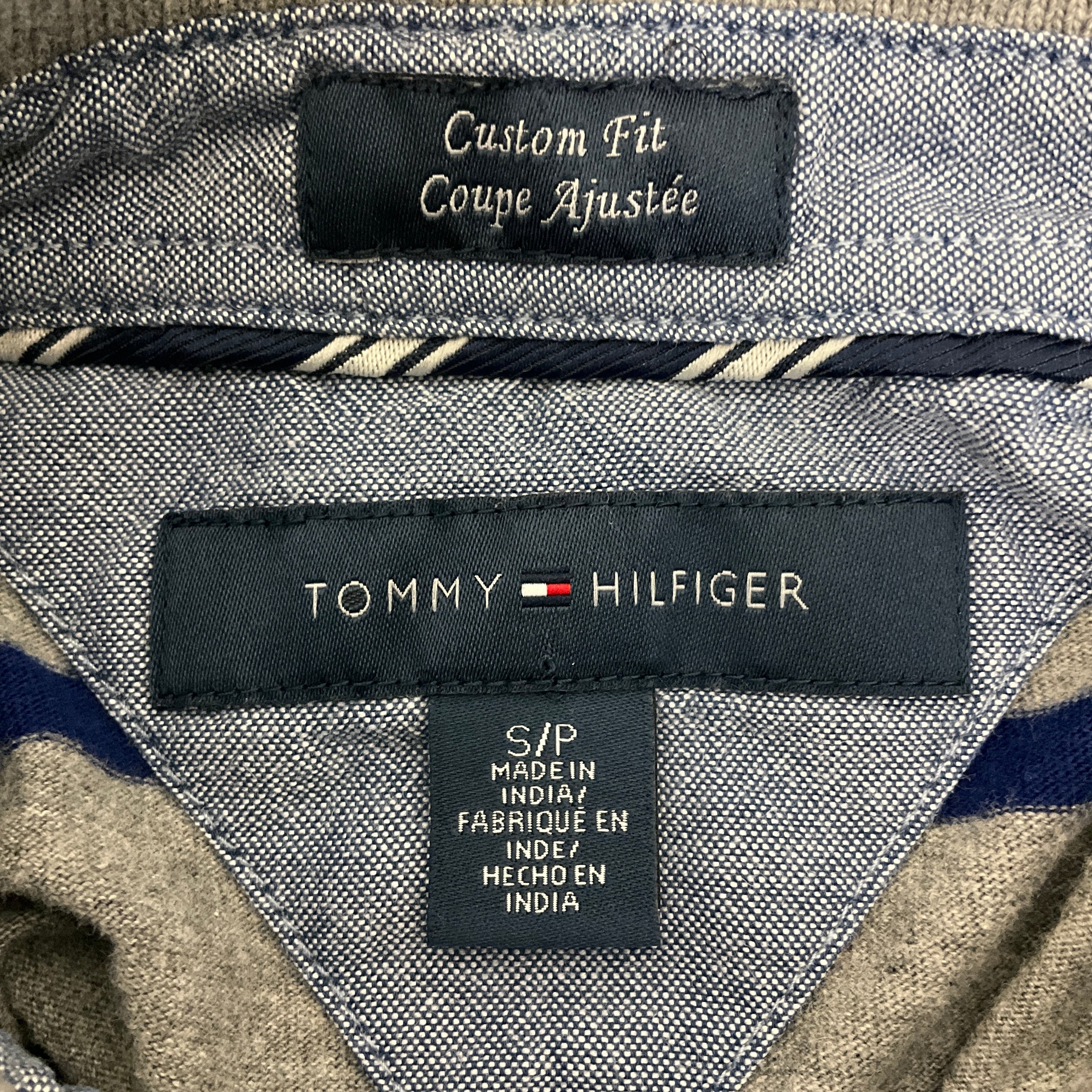 Tommy Hilfiger トミーヒルフィガー ボーダー Tシャツ地 ポロシャツ 古着 メンズS グレー【f240321001】