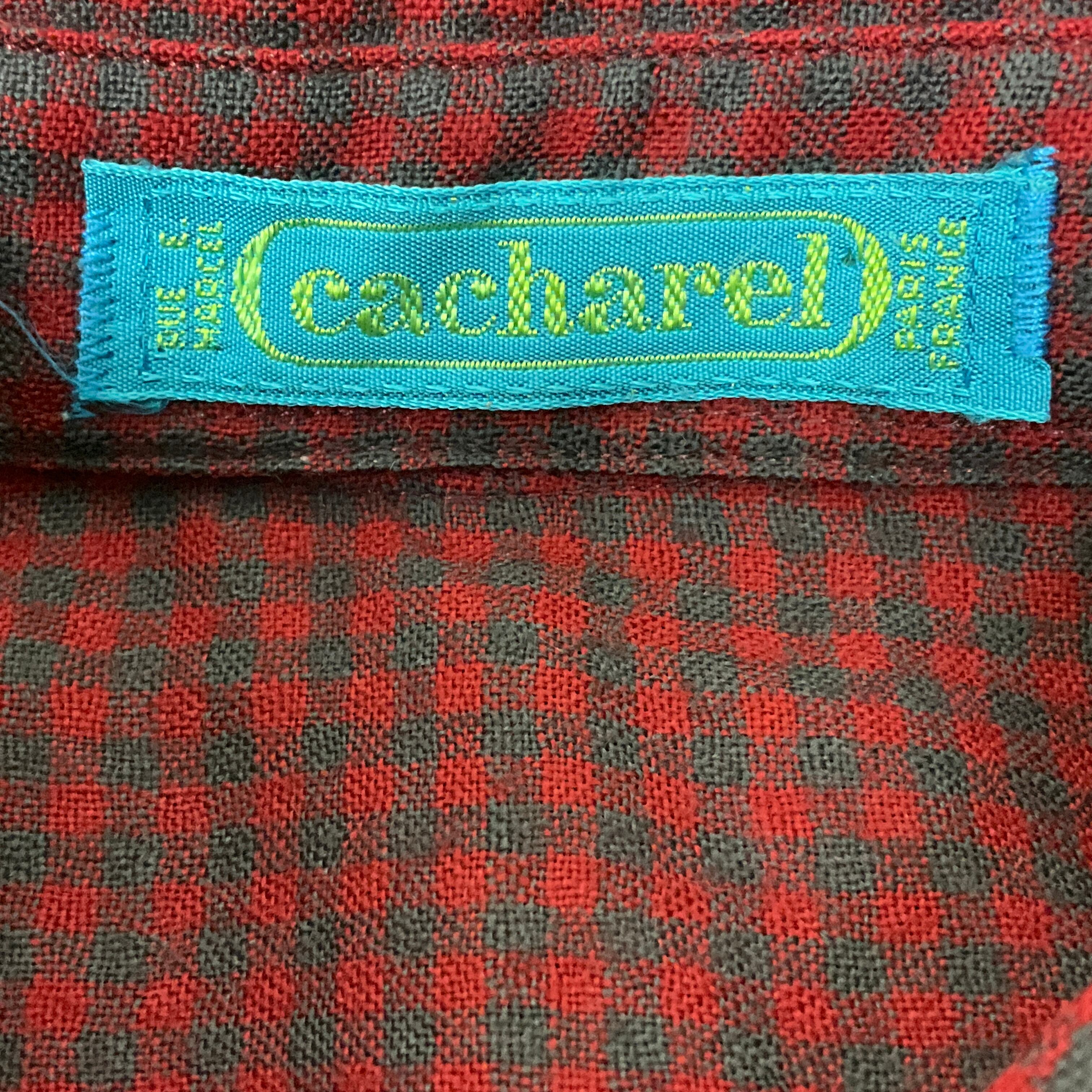 フランス製 cacharel キャシャレル チェック柄 丸襟 ウール 長袖シャツ 古着 レディースL相当 レッド 赤 ヴィンテージ ビンテージ【f240321021】