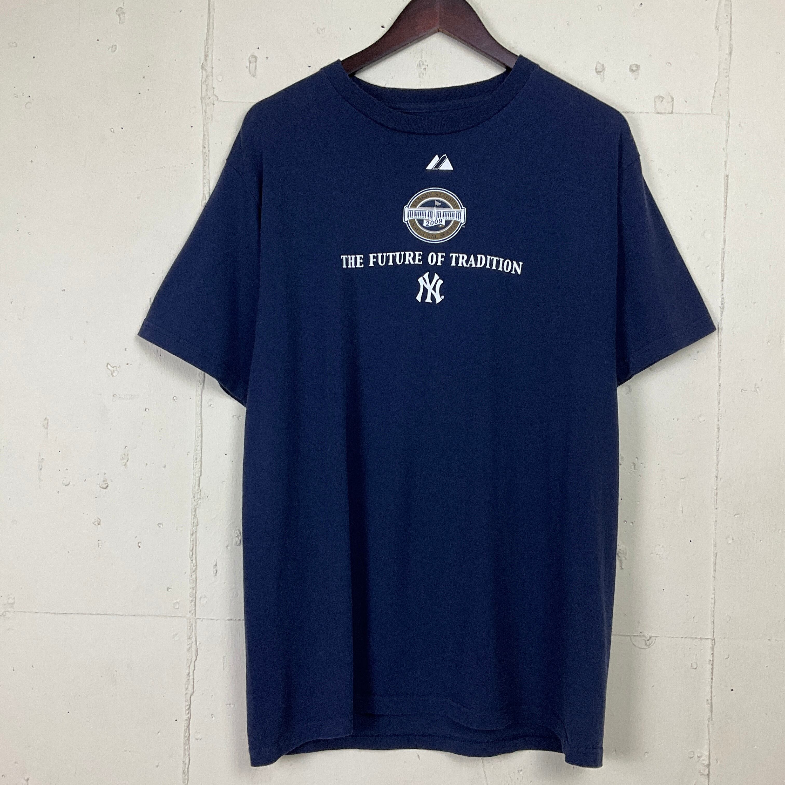 00年代 00s ニューヨークヤンキース YANKEE STADIUM 両面プリントTシャツ 古着 メンズM ネイビー 紺 スタジアム【f240325016】