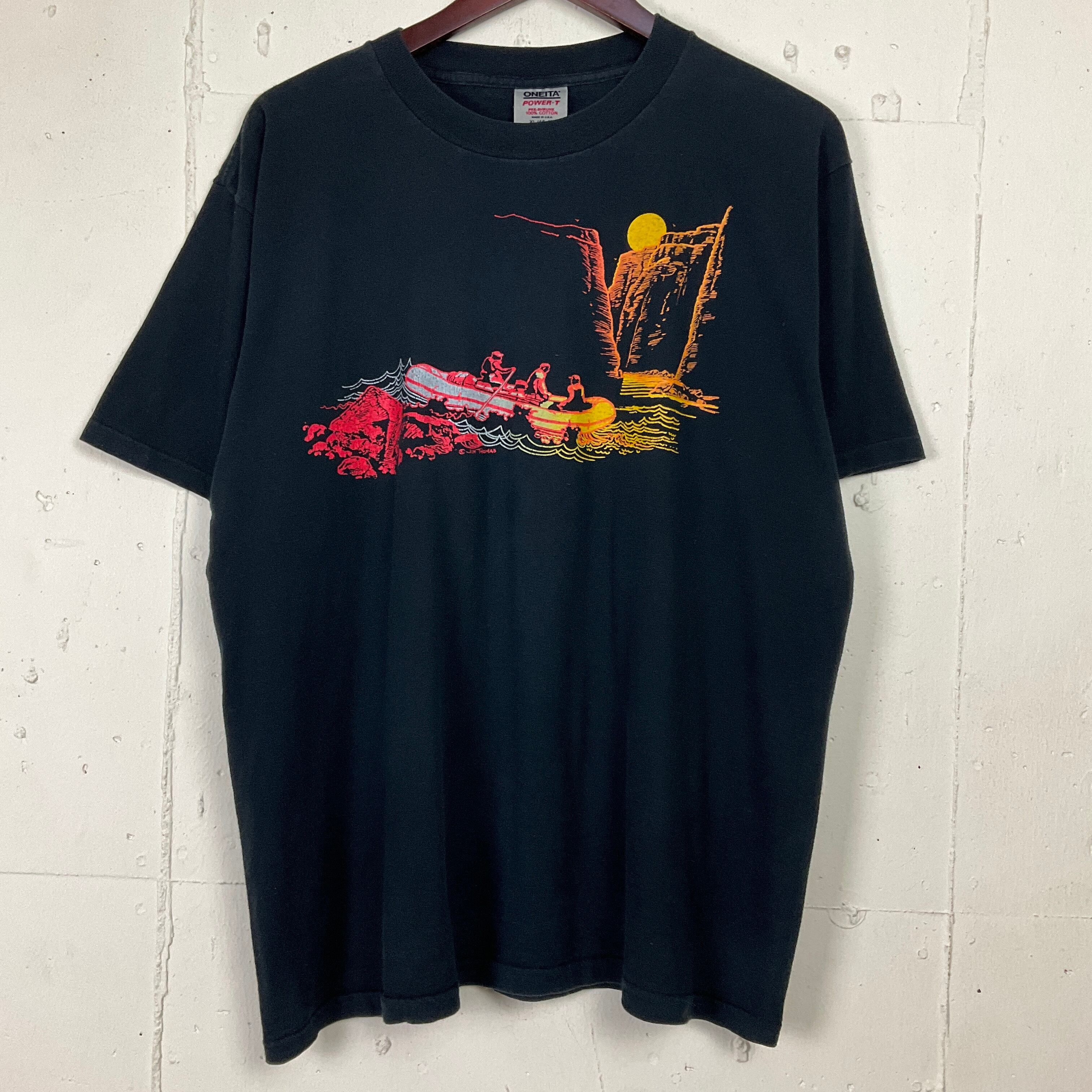 USA製 80年代 80s JIM THOMAS アート プリント Tシャツ 古着 メンズXL ブラック 黒 シングルステッチ ヴィンテージ ビンテージ【f240325018】