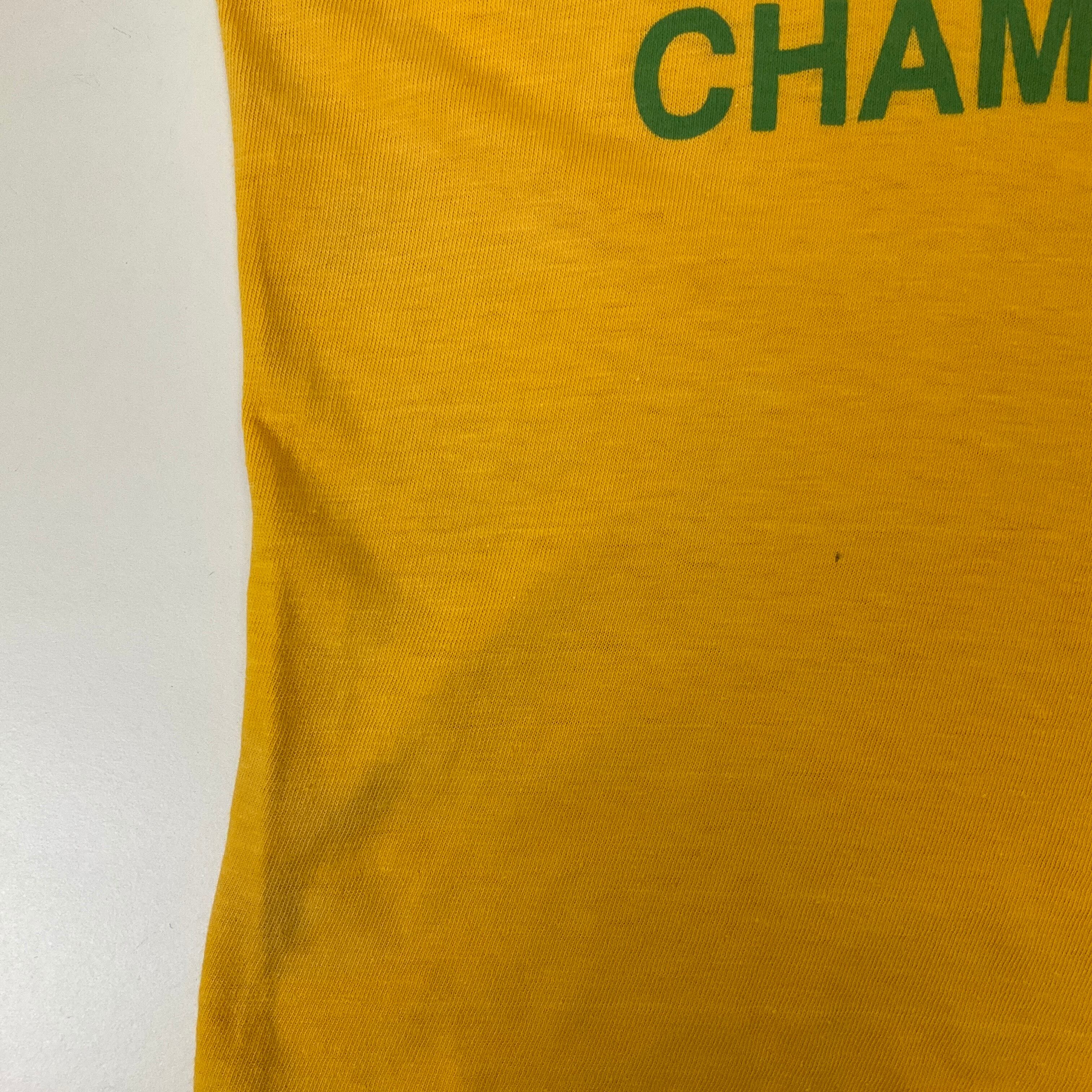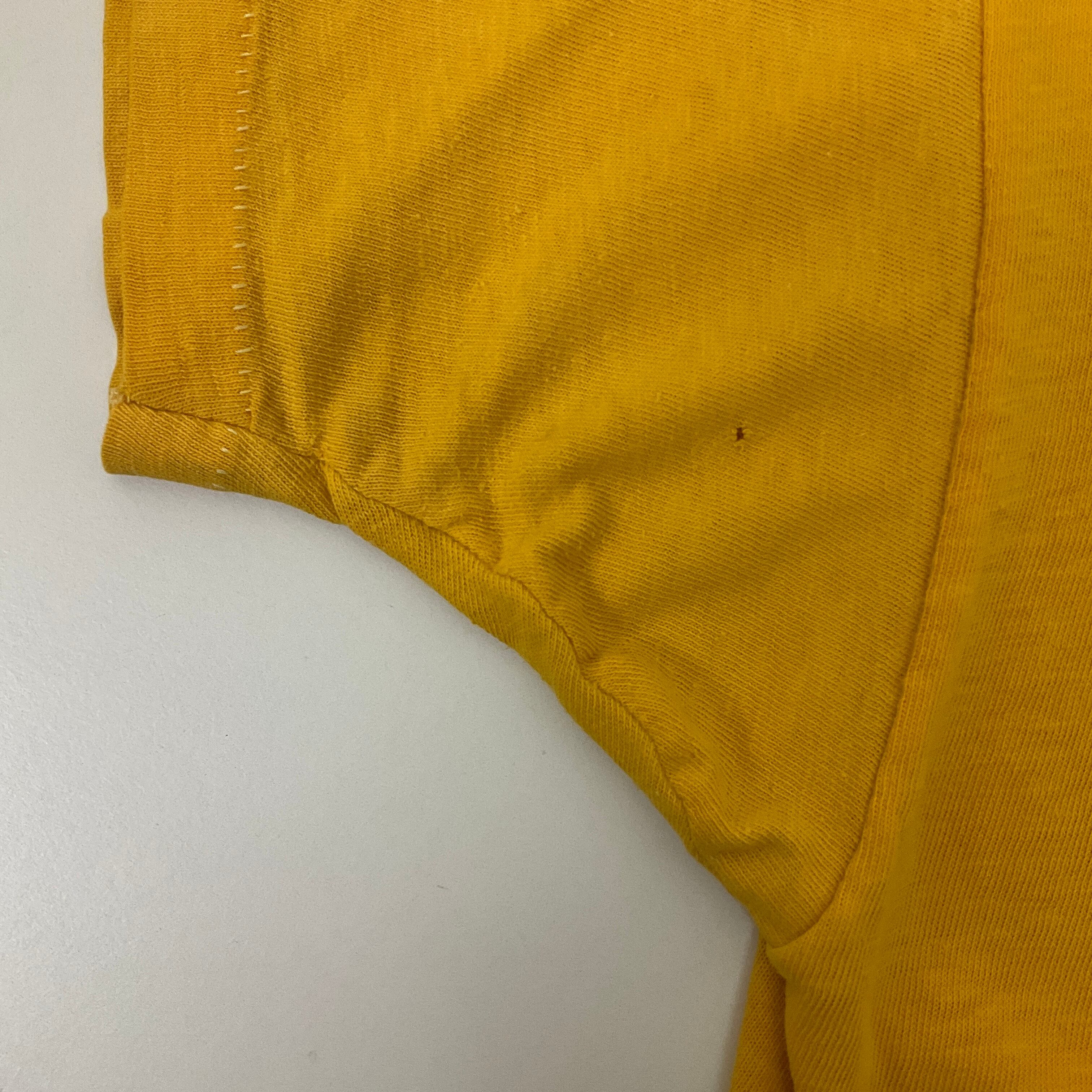 USA製 70年代 70s SPRUCE 両面プリントTシャツ 古着 メンズS シングルステッチ ヴィンテージ ビンテージ イエロー 黄色【f240325020】