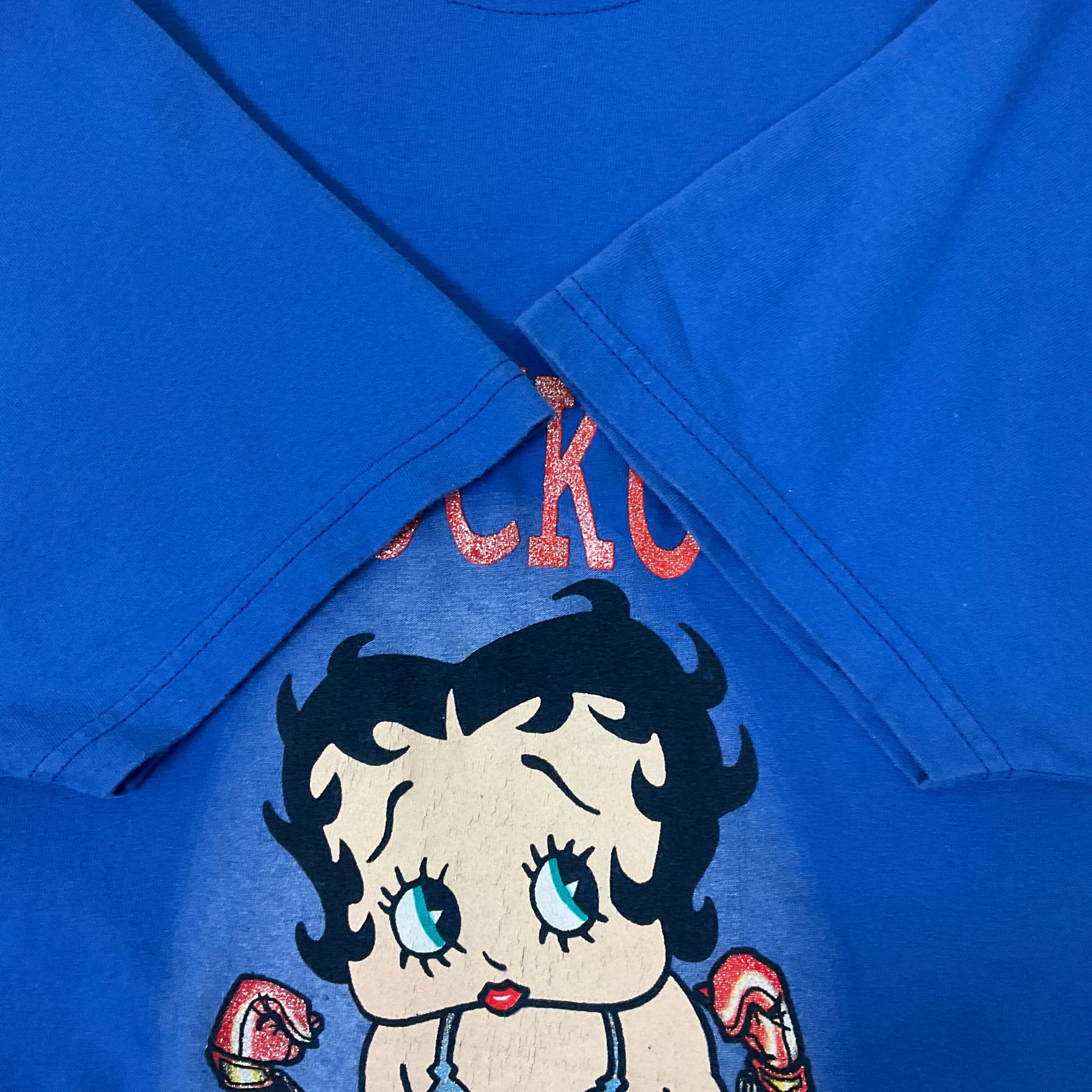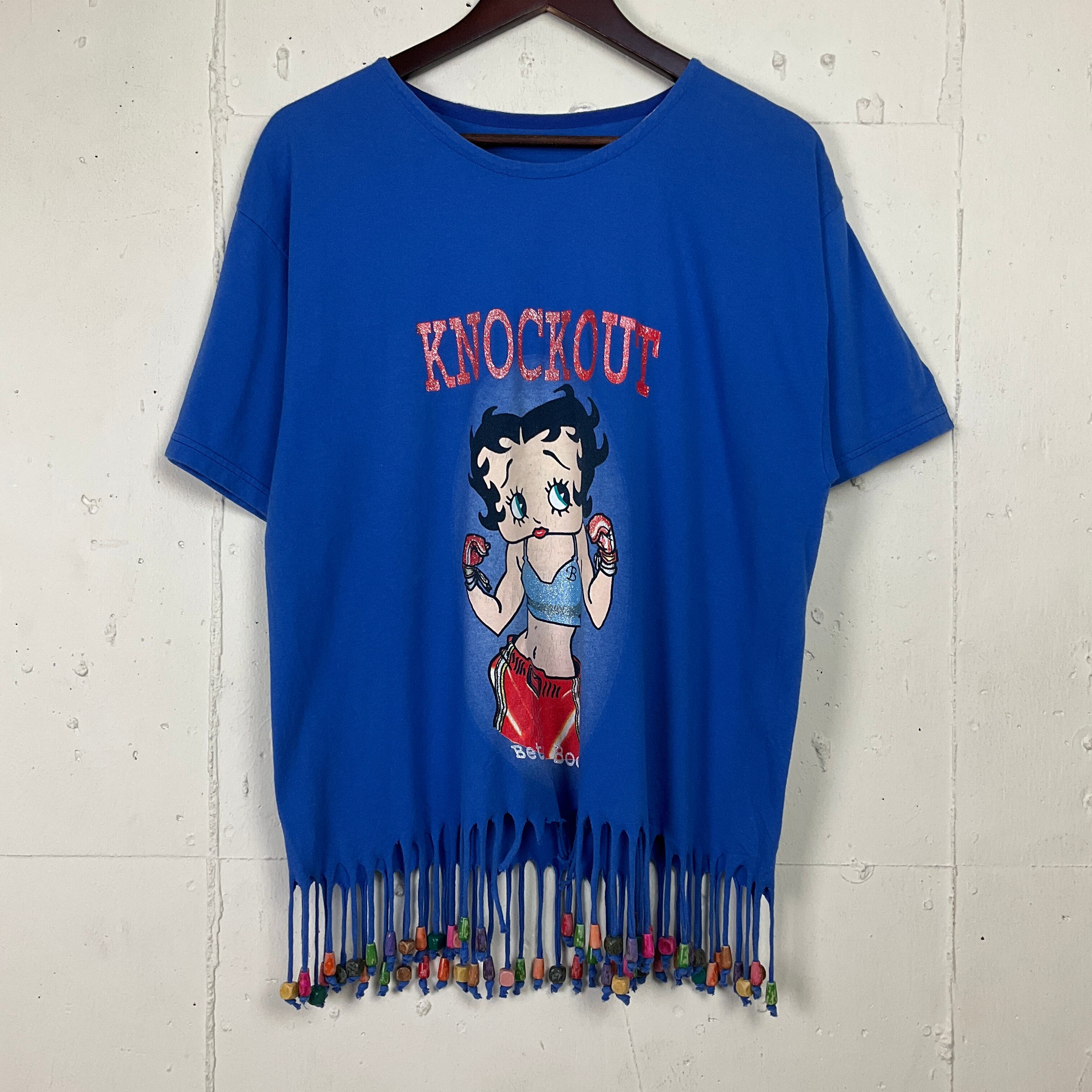 BETTY BOOP ベティ リメイク キャラクター Tシャツ 古着 レディース ブルー 青【f240325022】