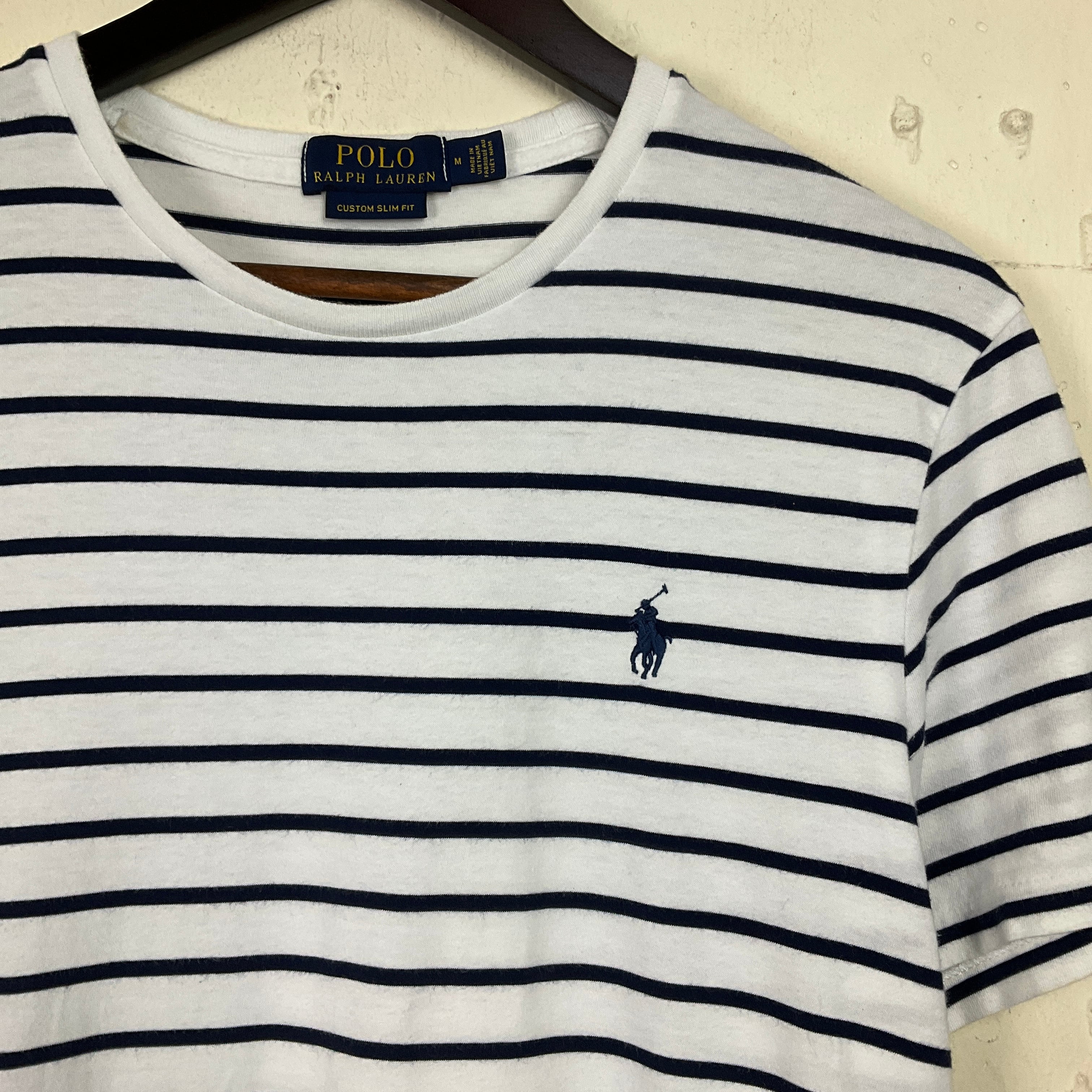 POLO Ralph Lauren ポロ ラルフローレン ボーダー Tシャツ 古着 ホワイト 白 メンズM シングルステッチ【f240325024】