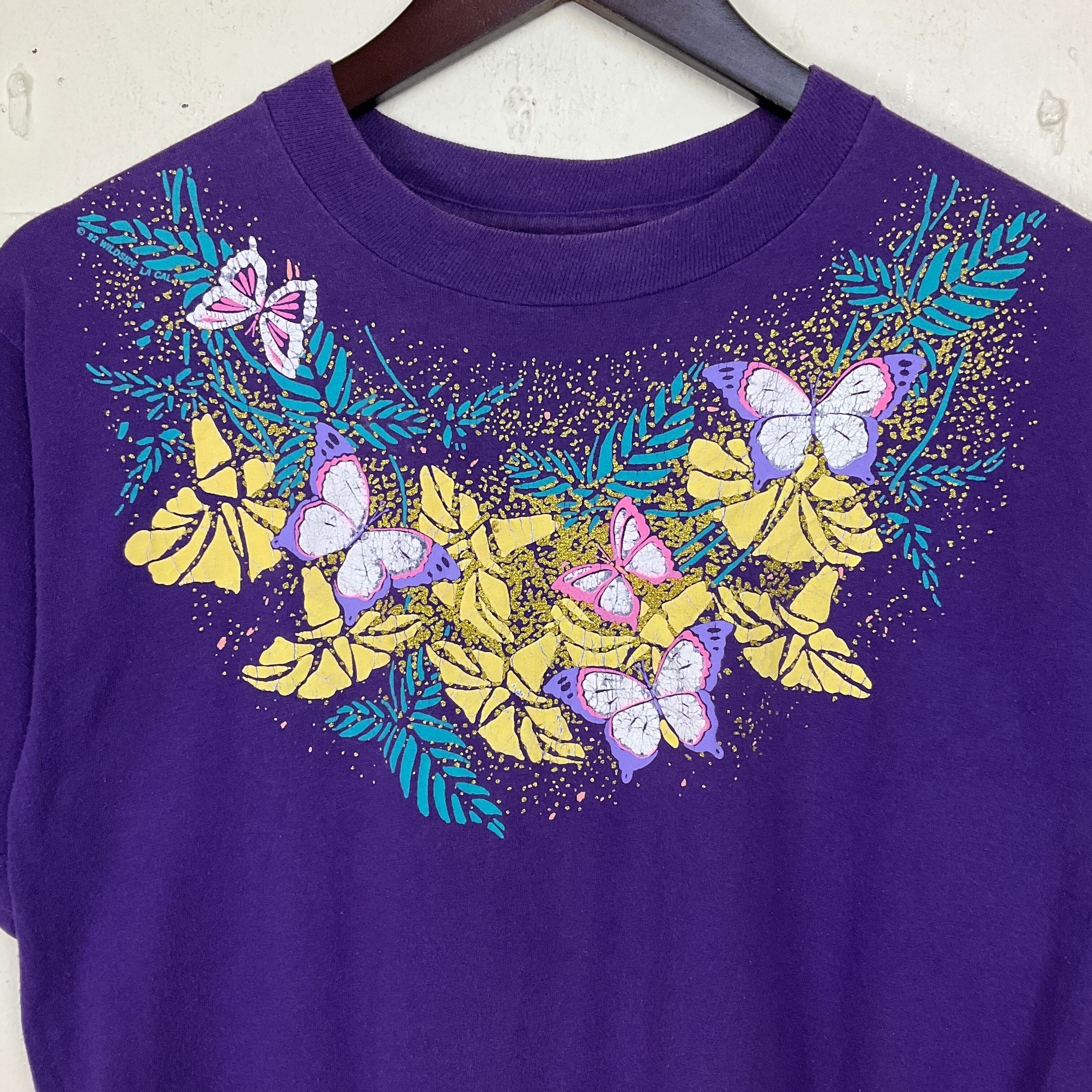 USA製 90年代 90s 蝶々 アニマル Tシャツ メンズM レディース 古着 パープル 紫 ヴィンテージ ビンテージ【f240328015】
