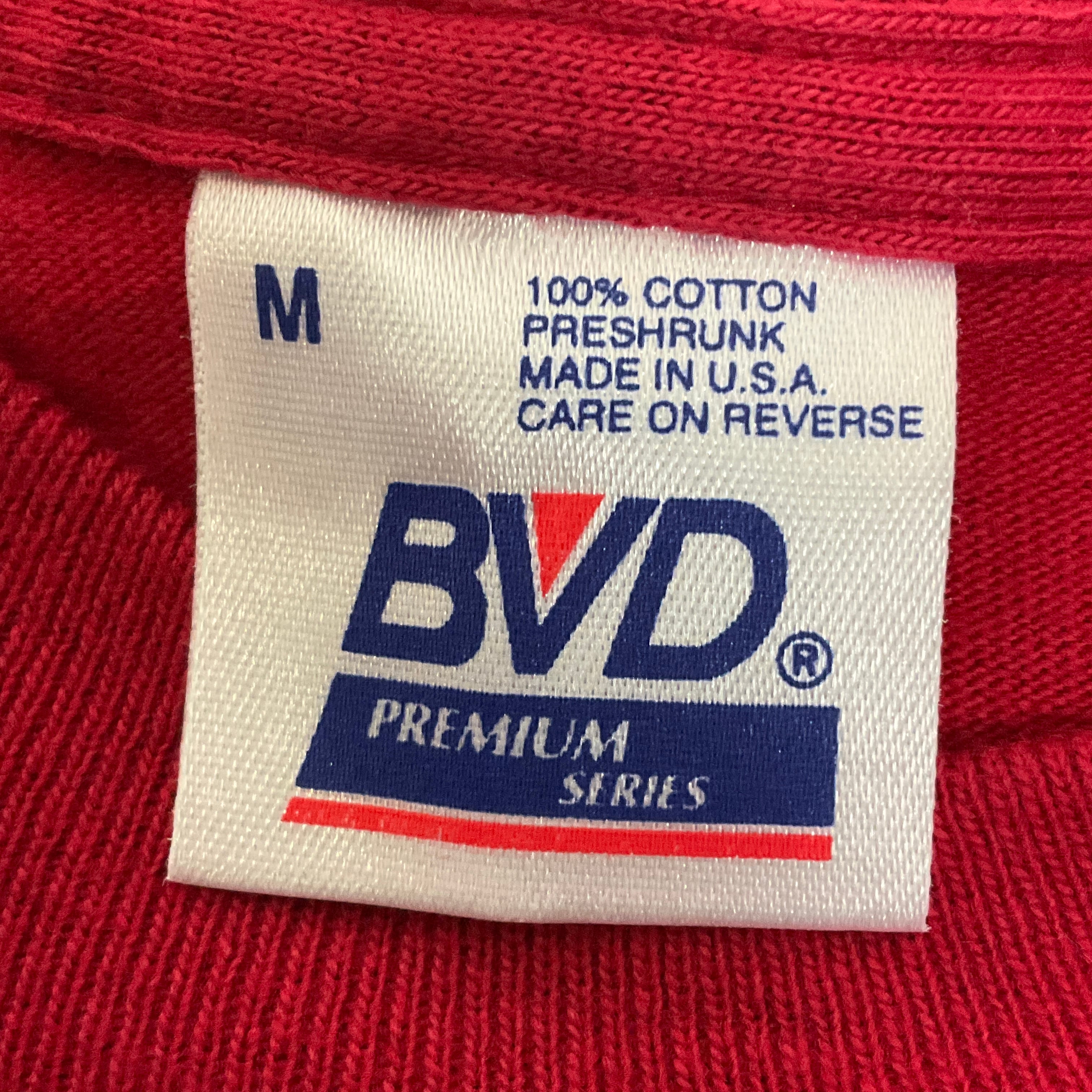 USA製 90年代 90s BVD ブランク 無地 ポケット Tシャツ 古着 赤色 レッド メンズM シングルステッチ 【f240328026】