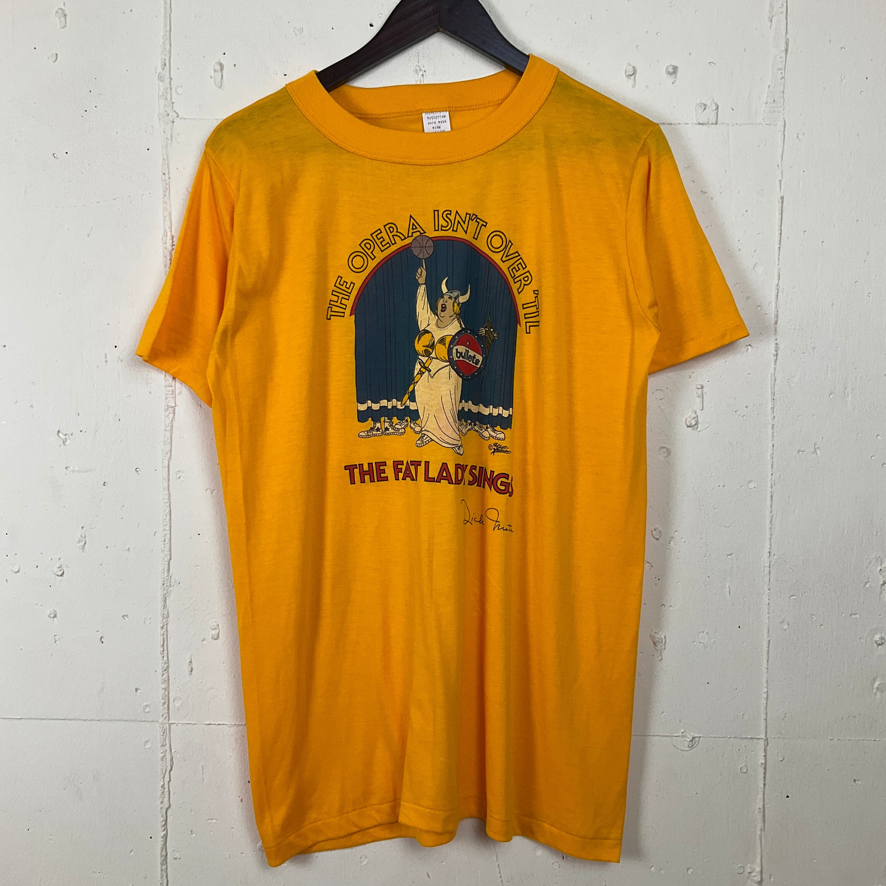 70年代 70s NBAコーチ 1978 Dick Matta bullets プリント Tシャツ 古着 メンズL ヴィンテージ ビンテージ シングルステッチ イエロー 黄色【f240403005】