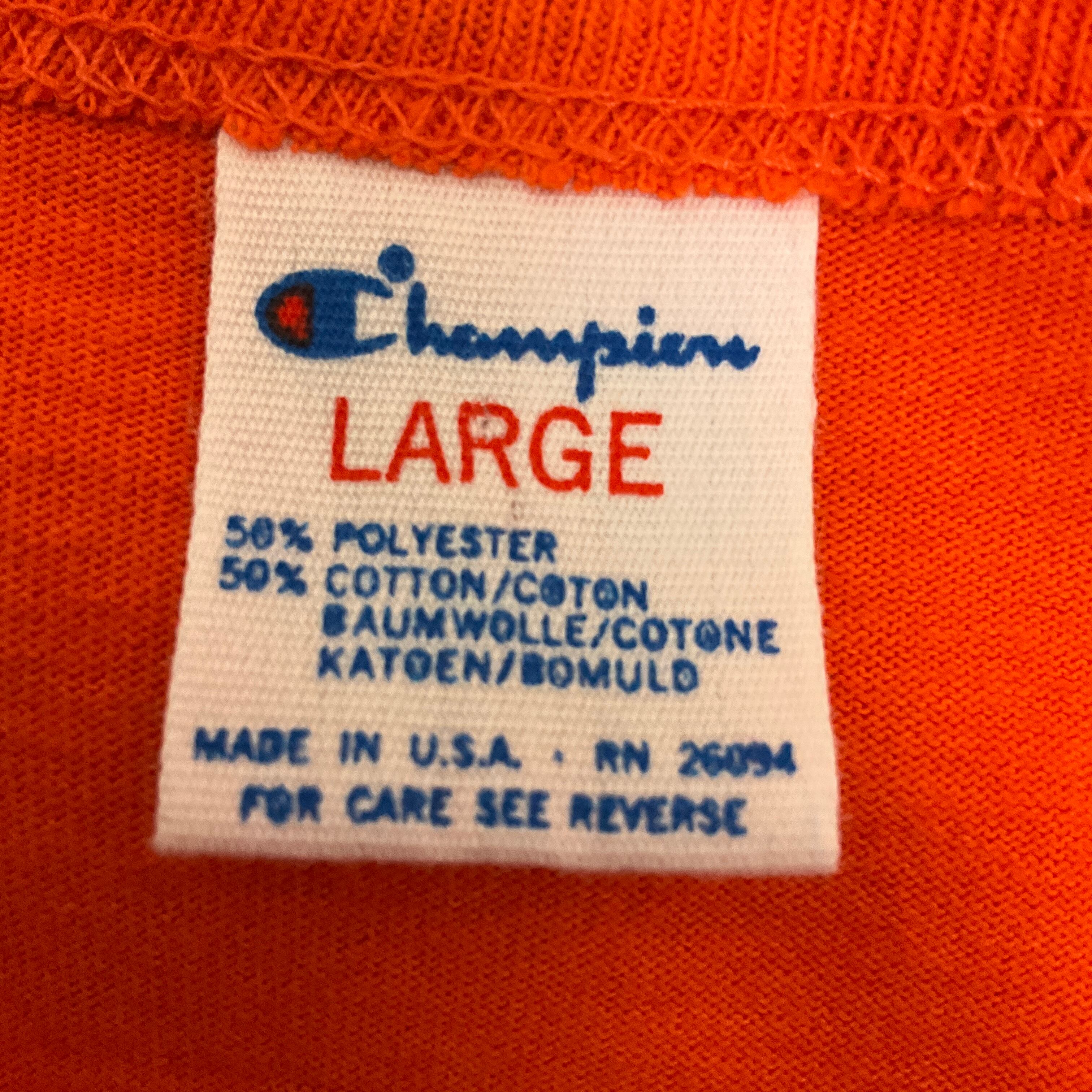 USA製 80年代 80s チャンピオン Champion フットボール Tシャツ 古着 メンズL ヴィンテージ ビンテージ オレンジ【f240403008】