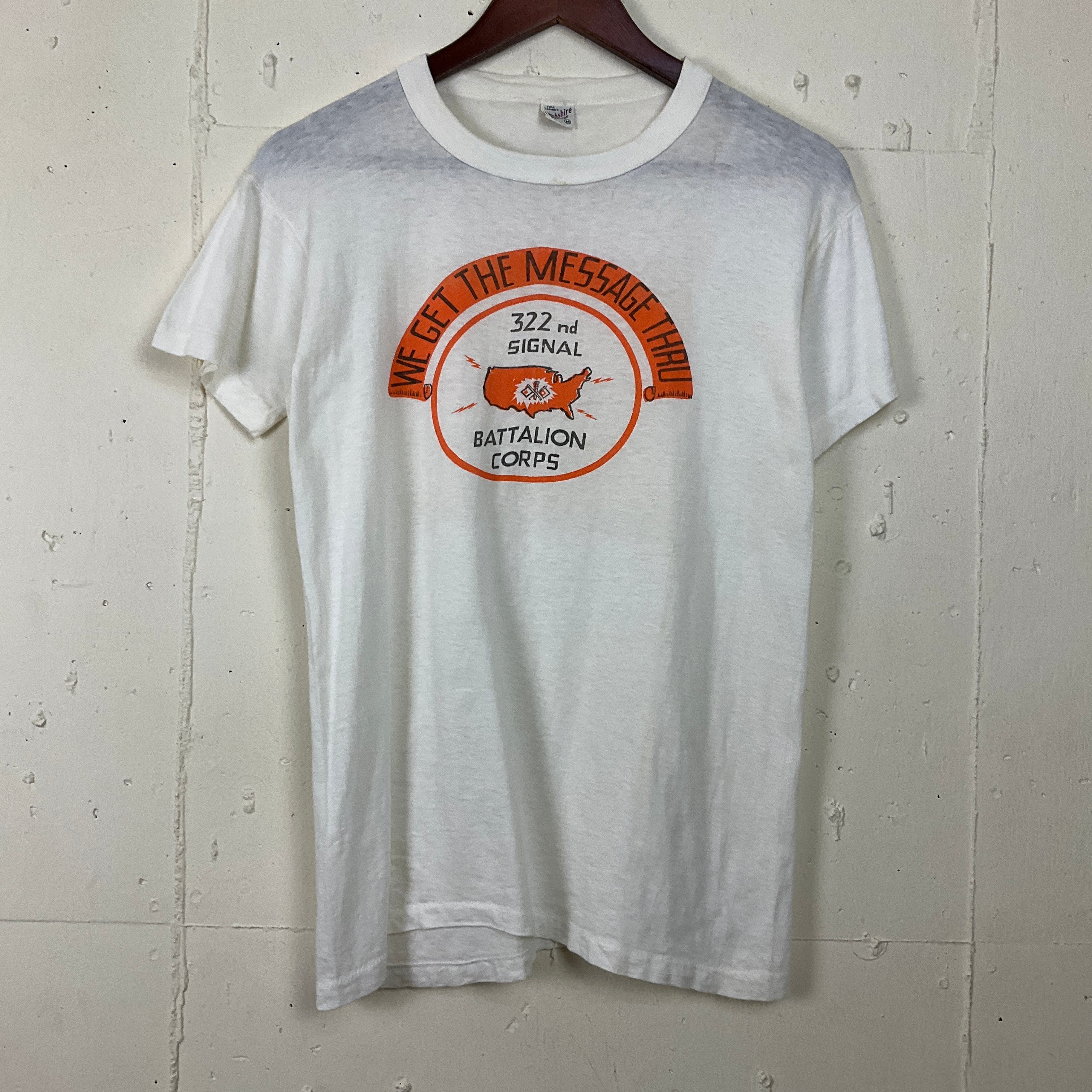 50年代〜 50s〜 Berkshire ミリタリー 染み込みプリント Tシャツ 古着 ヴィンテージ ビンテージ メンズM シングルステッチ ホワイト 白【f240403015】
