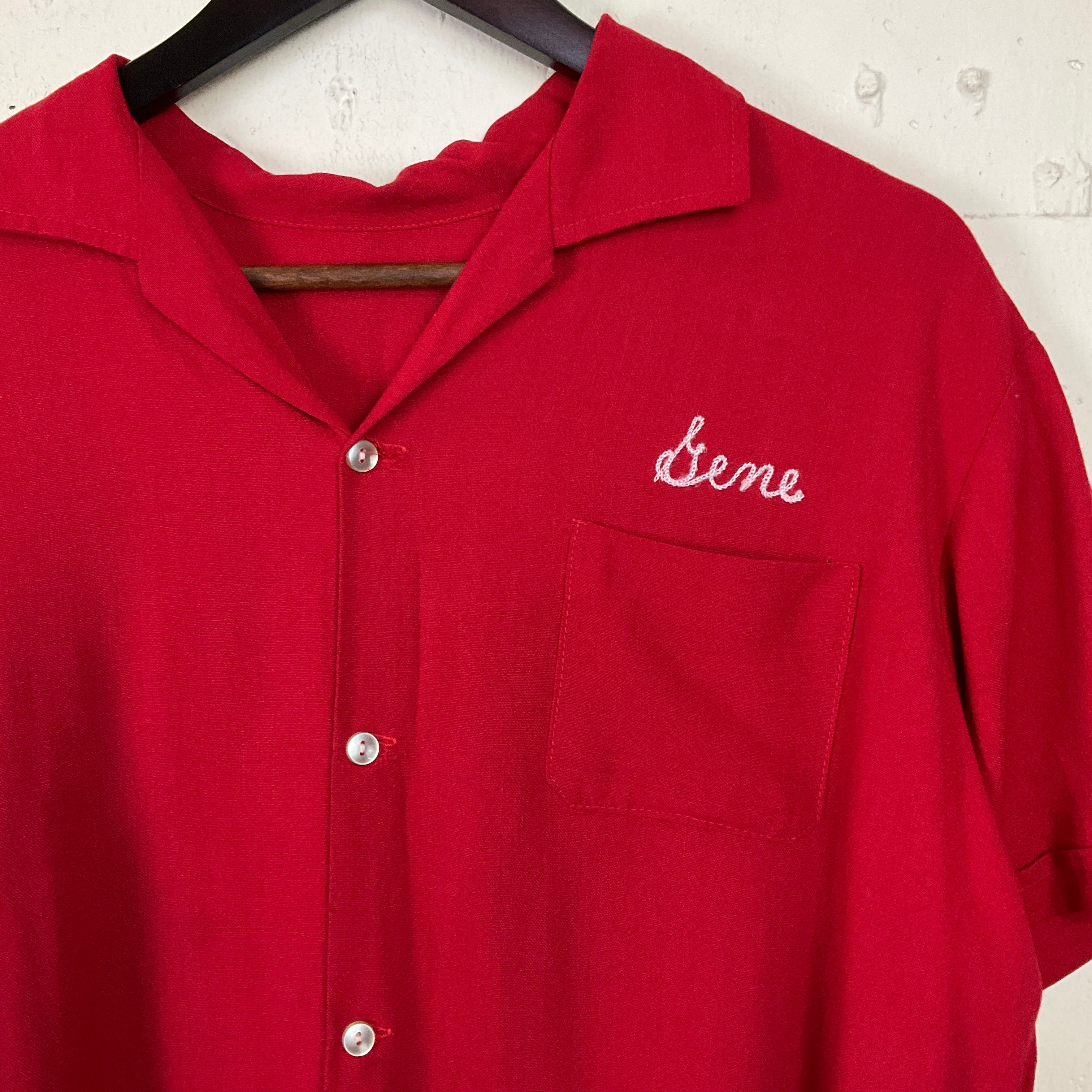 USA製 50年代〜 50s〜 PSA 刺繍 ボウリングシャツ 半袖シャツ 古着 ヴィンテージ ビンテージ メンズ レッド 赤 ボーリング【f240403026】