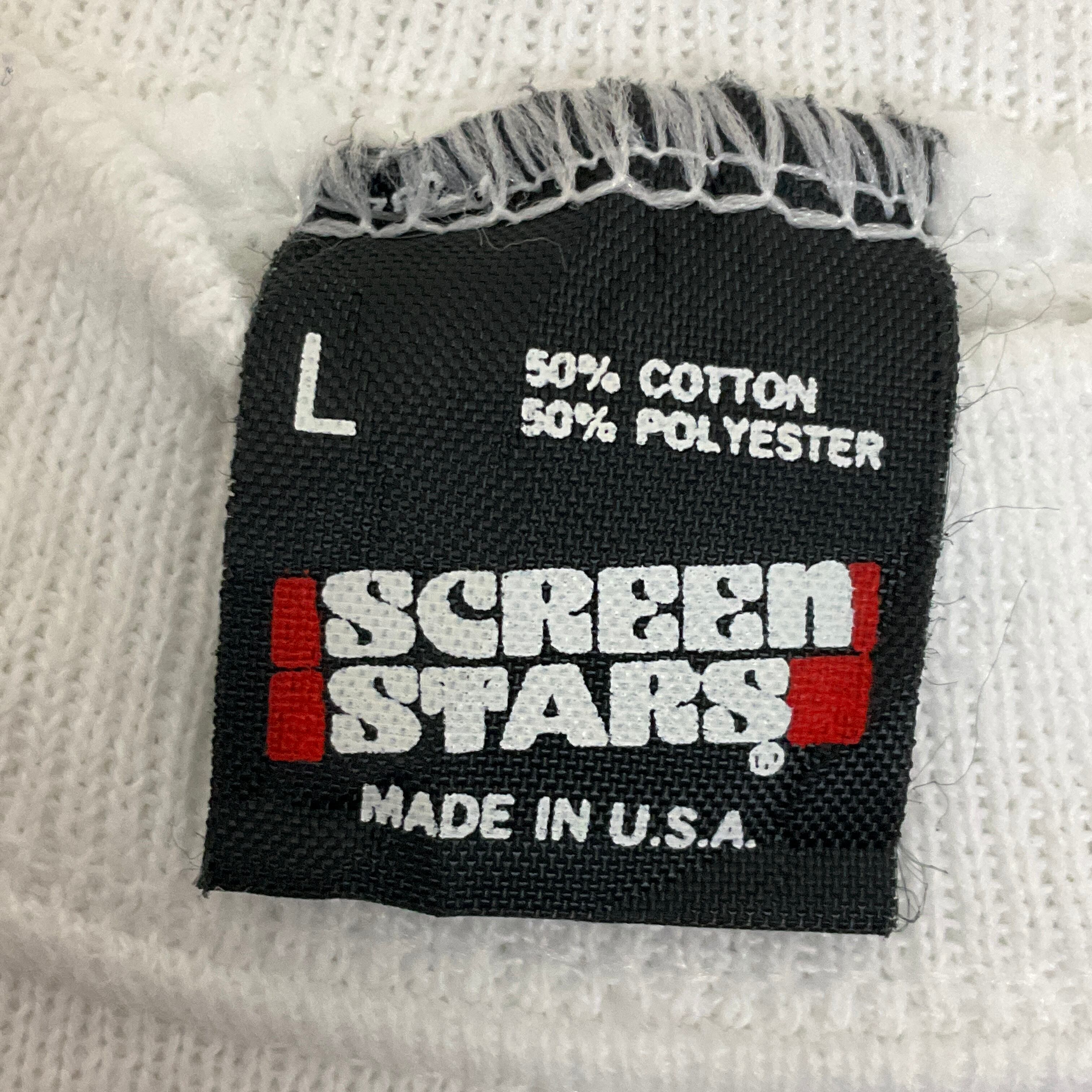 90s 90年代 USA製 PEACH BOWL ラグランスリーブ スウェット トレーナー メンズL 古着 ホワイト 白 ビンテージ ヴィンテージ ロゴ 両面プリント フットボール【f240405008】