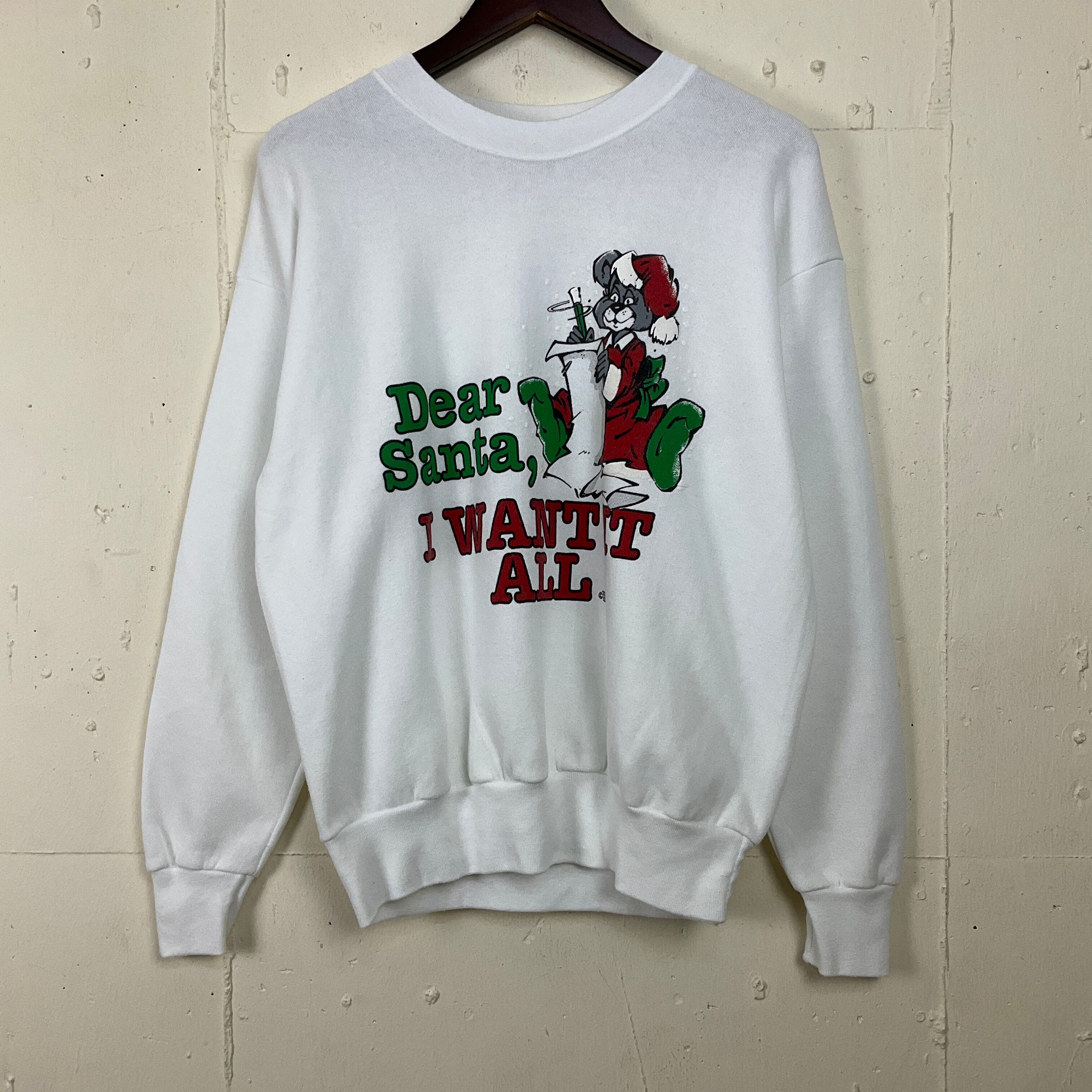 90s 90年代 USA製 Dear Santa キャラクター プリント スウェット トレーナー メンズL 古着 ホワイト 白 ビンテージ ヴィンテージ【f240405009】