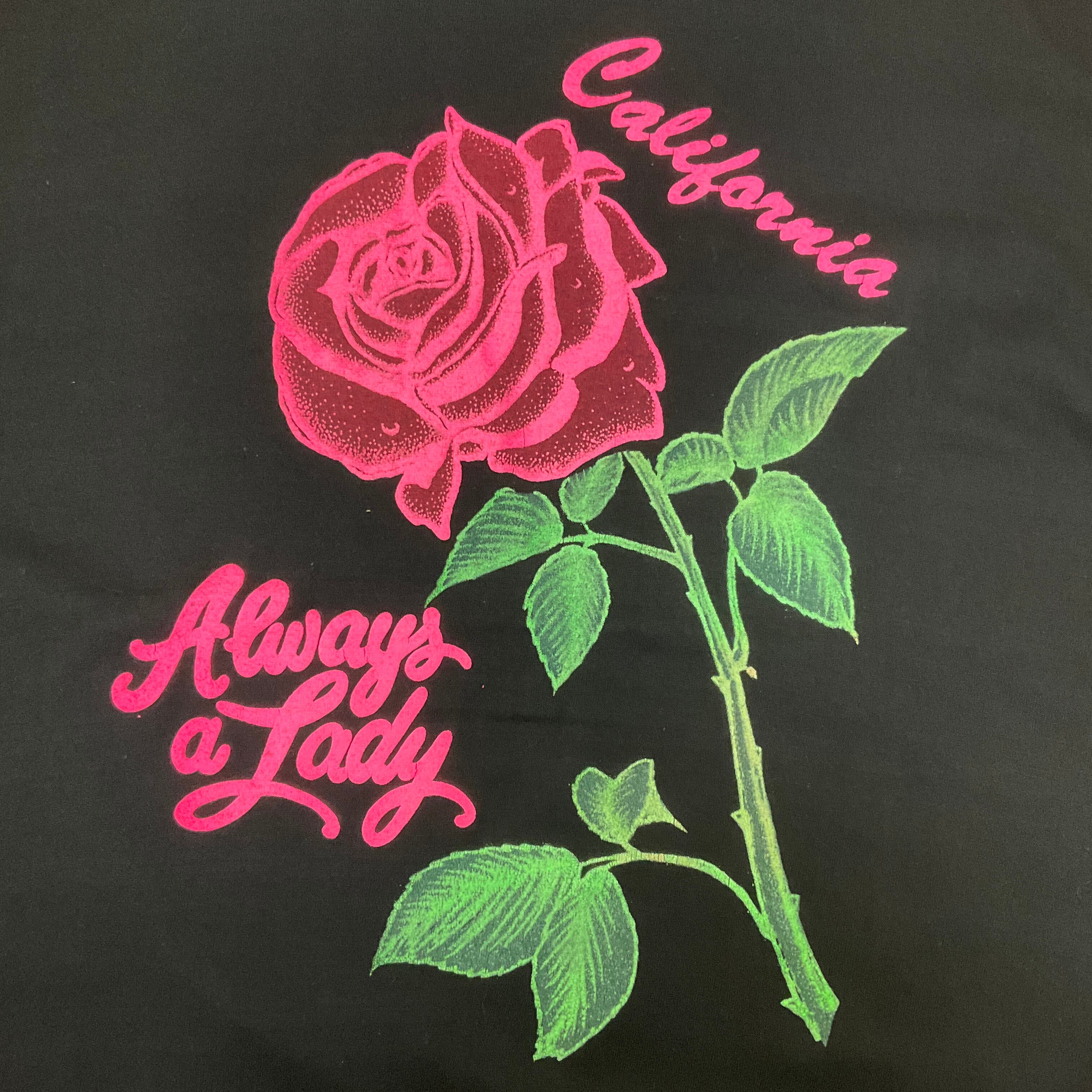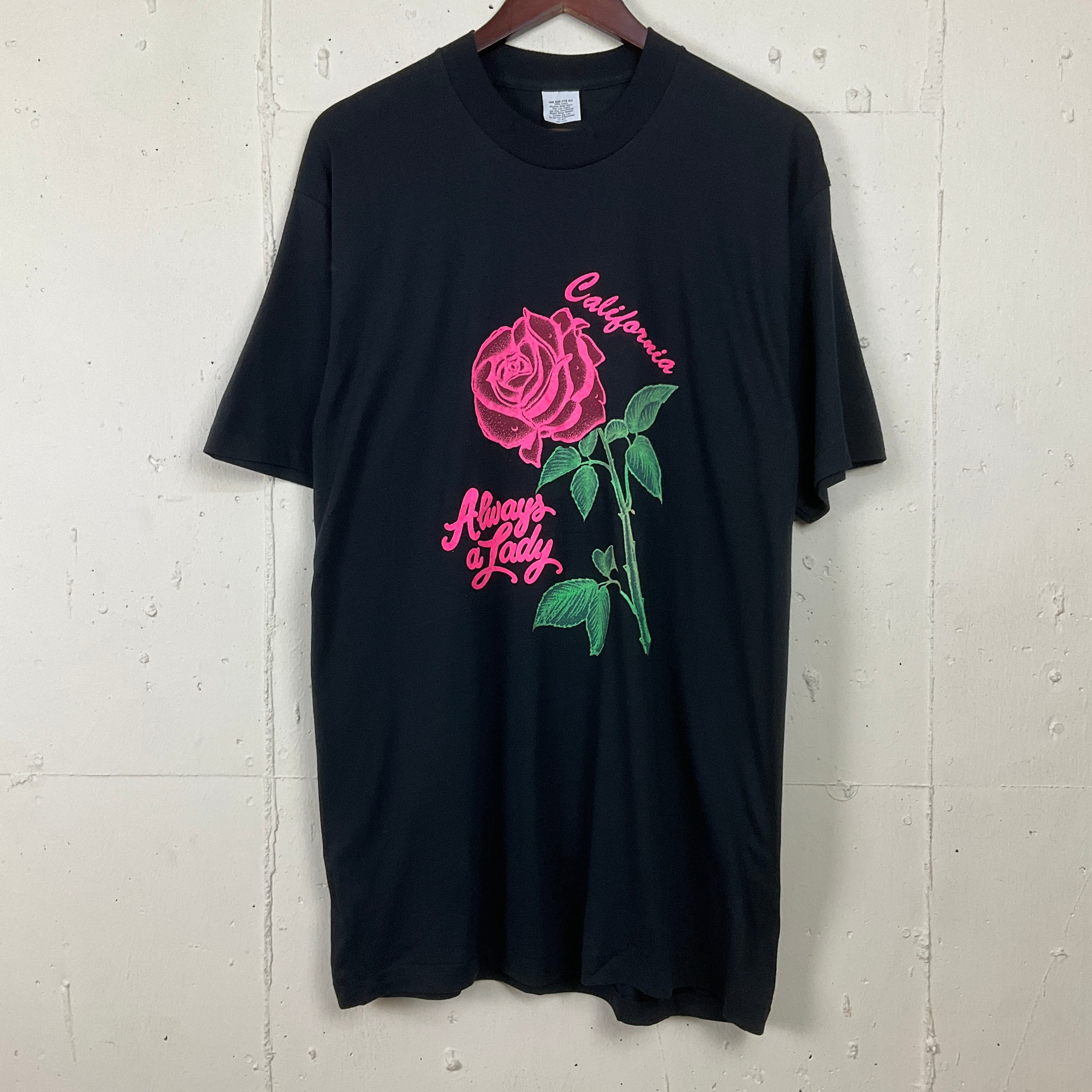 USA製 80年代 80s 薔薇 花 バラ フラワー プリント Tシャツ 古着 ヴィンテージ ビンテージ ONE SIZE メンズ レディース ブラック 黒色 シングルステッチ ロング丈【f240408021】