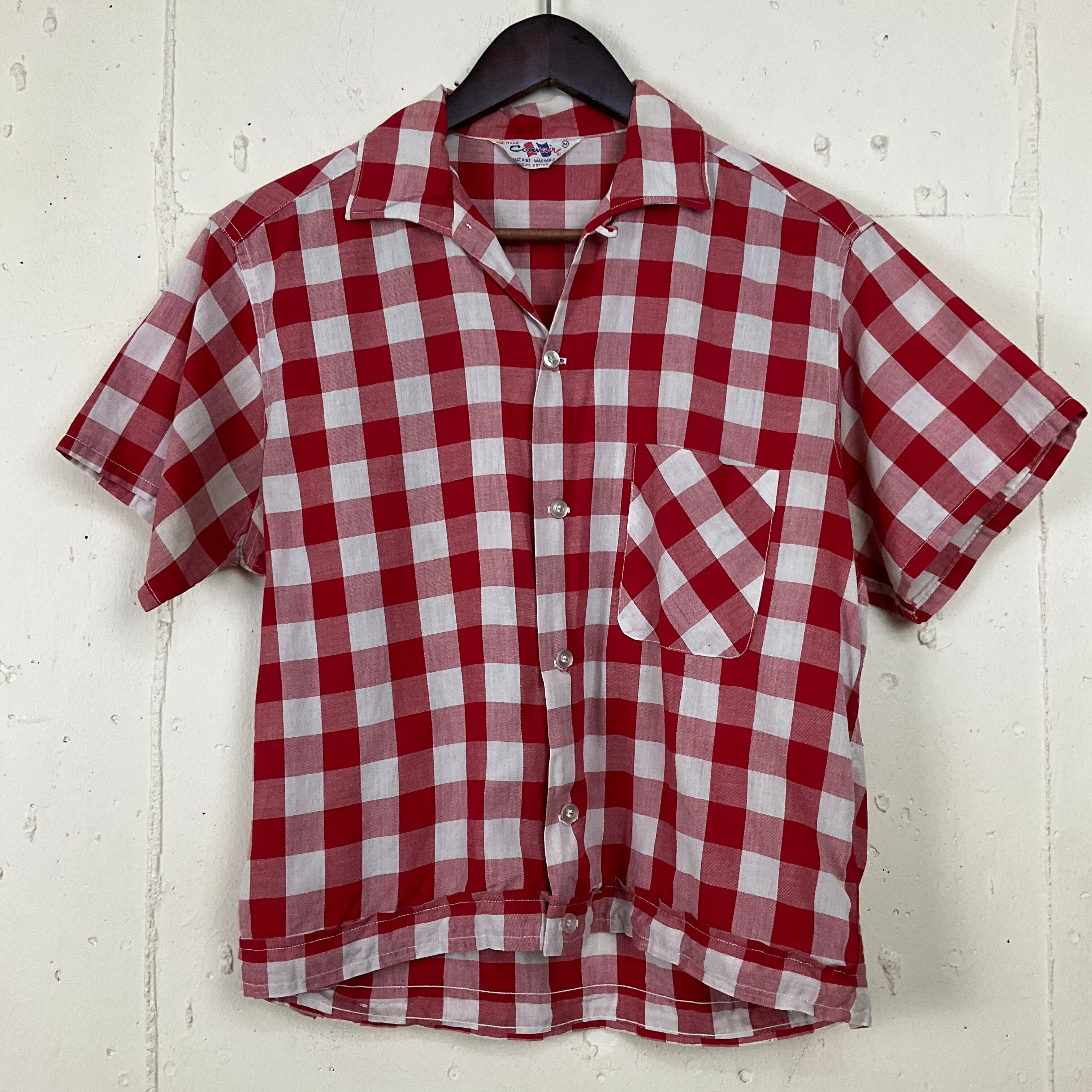 USA製 60年代 60s チェック柄 開襟 ボックス 半袖シャツ 古着 ヴィンテージ ビンテージ メンズM レッド 赤 オープンカラー【f240416036】