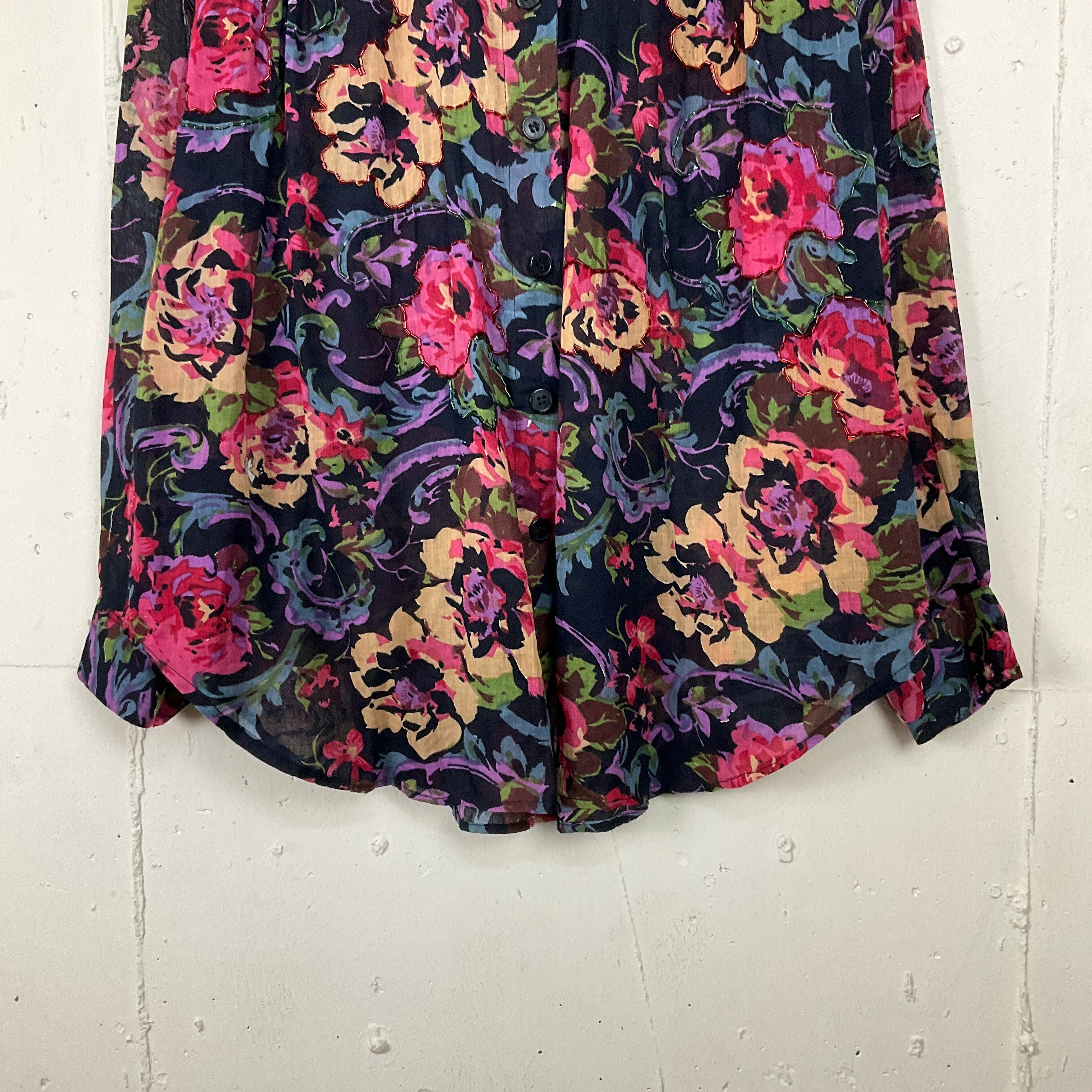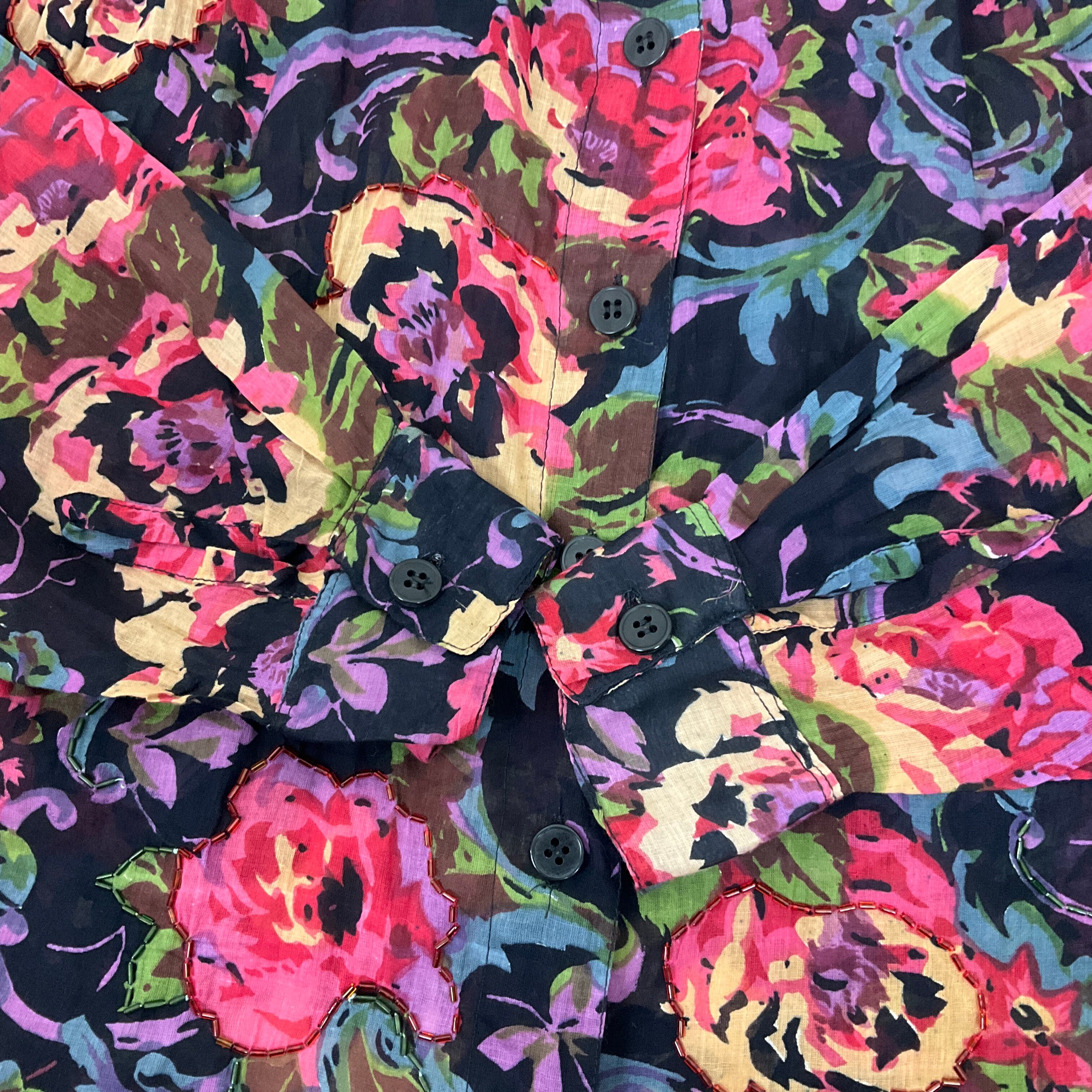 インド綿 花柄 総柄 ビーズ 長袖シャツ 古着 レディースL【f240422006】