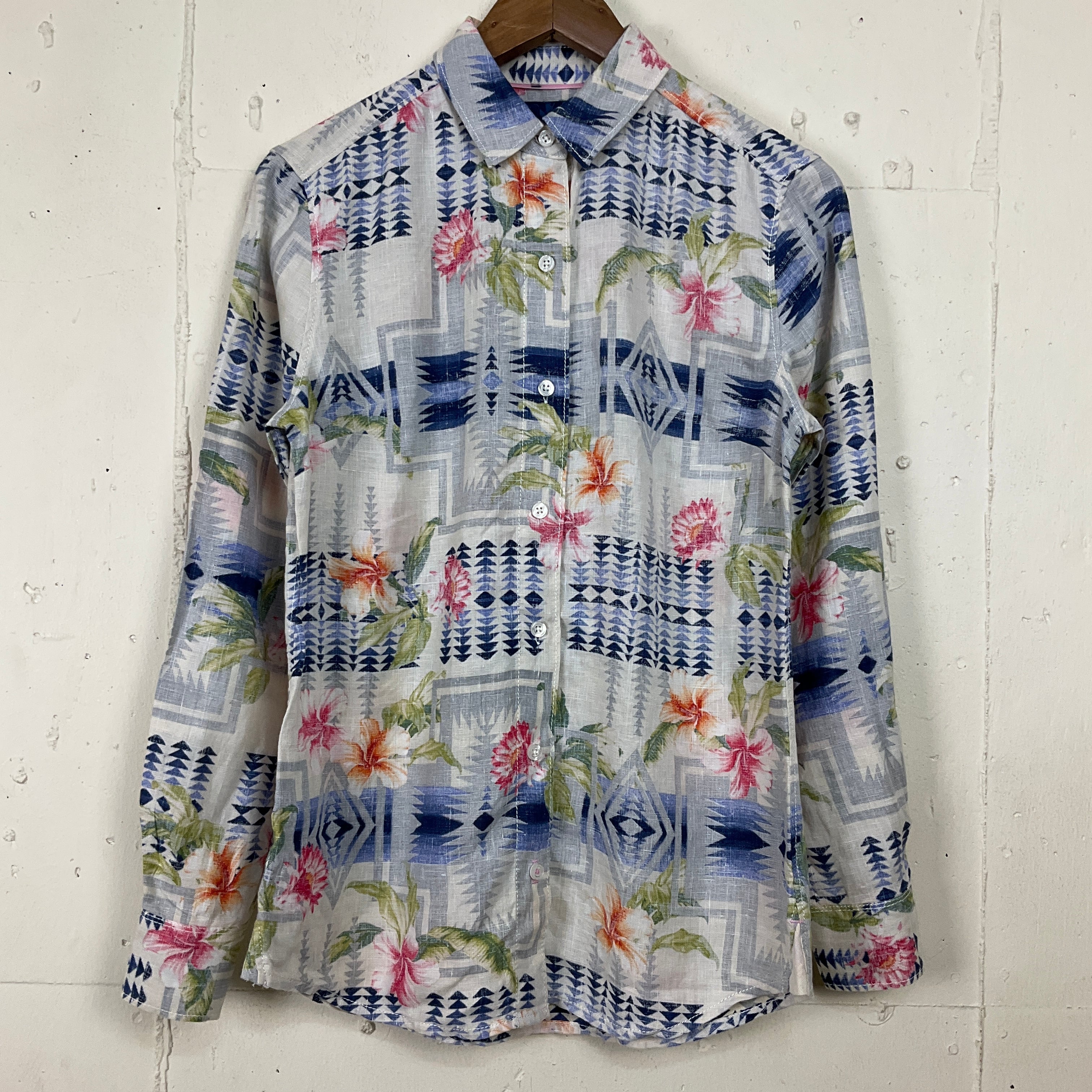PENDLETON×Tommy Bahama ペンドルトン アロハシャツ リネン 長袖シャツ 古着 総柄 XXS レディース【f240422013】