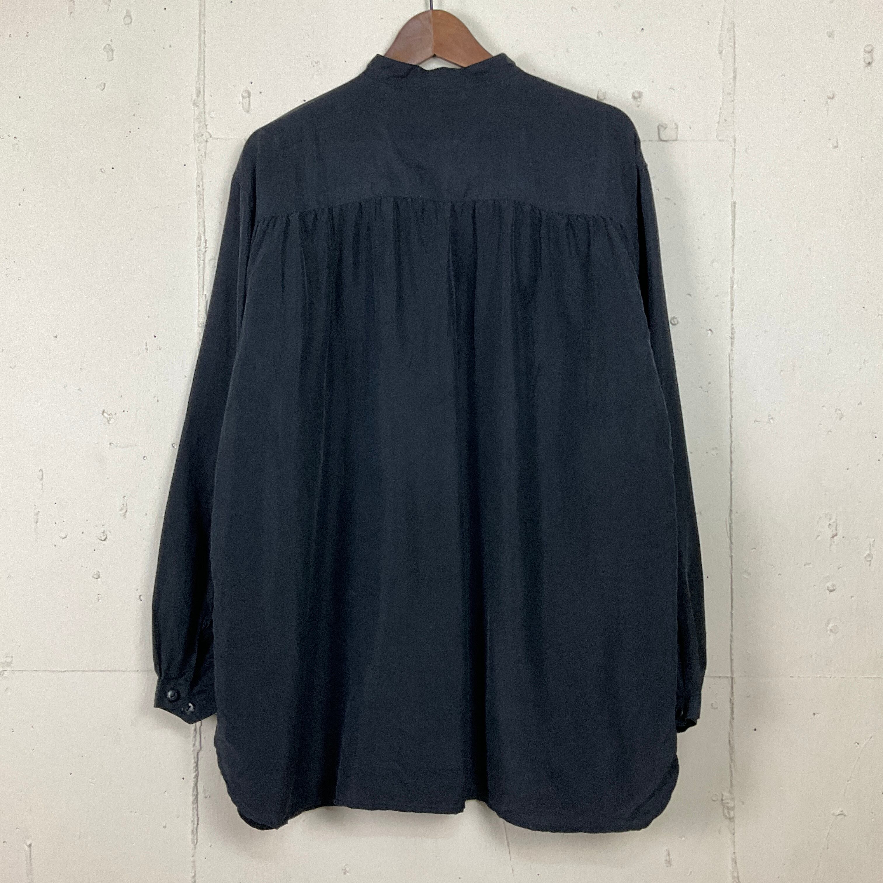 90年代 90s Christie&Jill ノーカラー シルク 長袖シャツ 古着 メンズL ヴィンテージ ビンテージ ブラック 黒【f240422016】