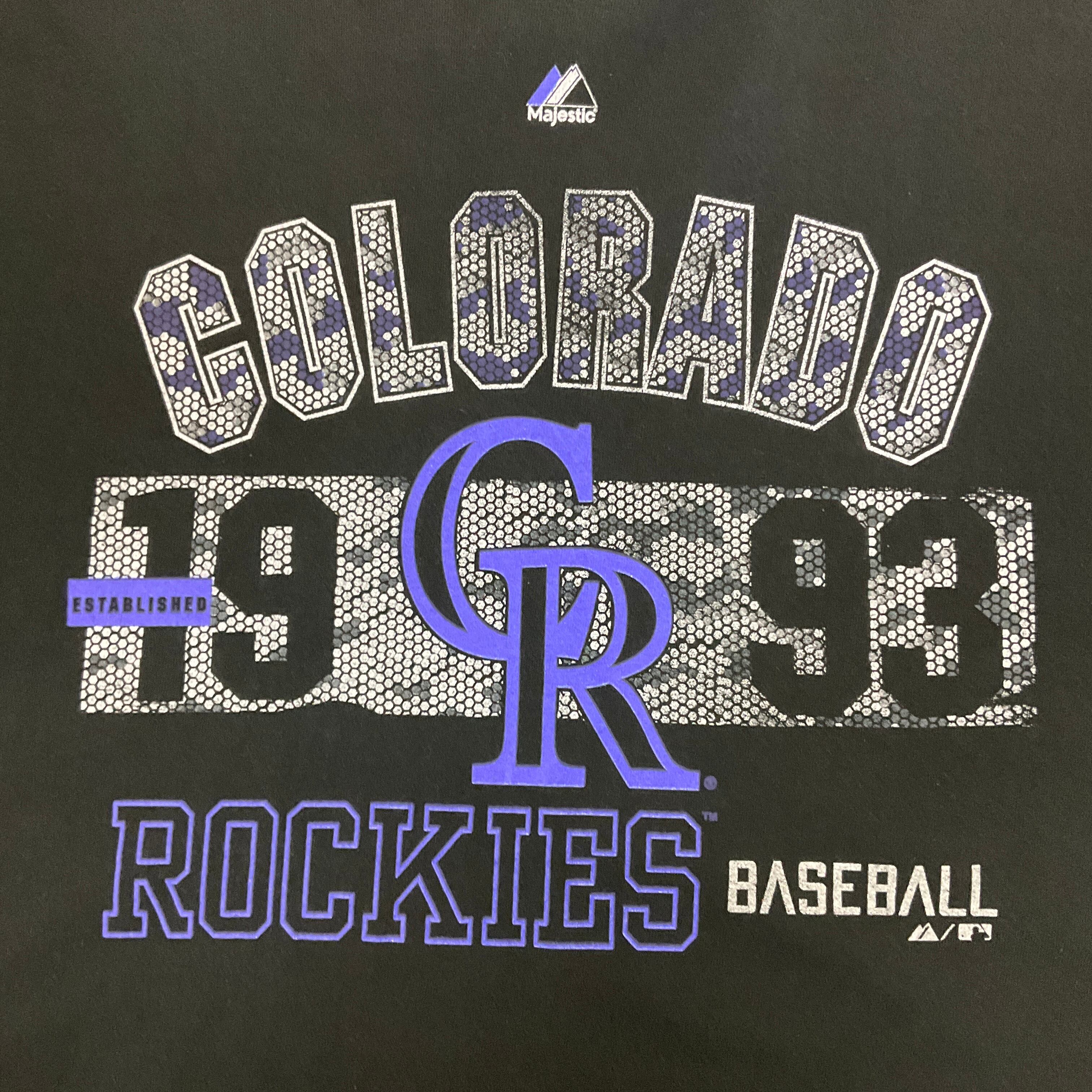 MLB コロラド ロッキーズ Rockies チーム ロゴ プリント Tシャツ メンズXL 古着 ブラック 黒【f240429011】