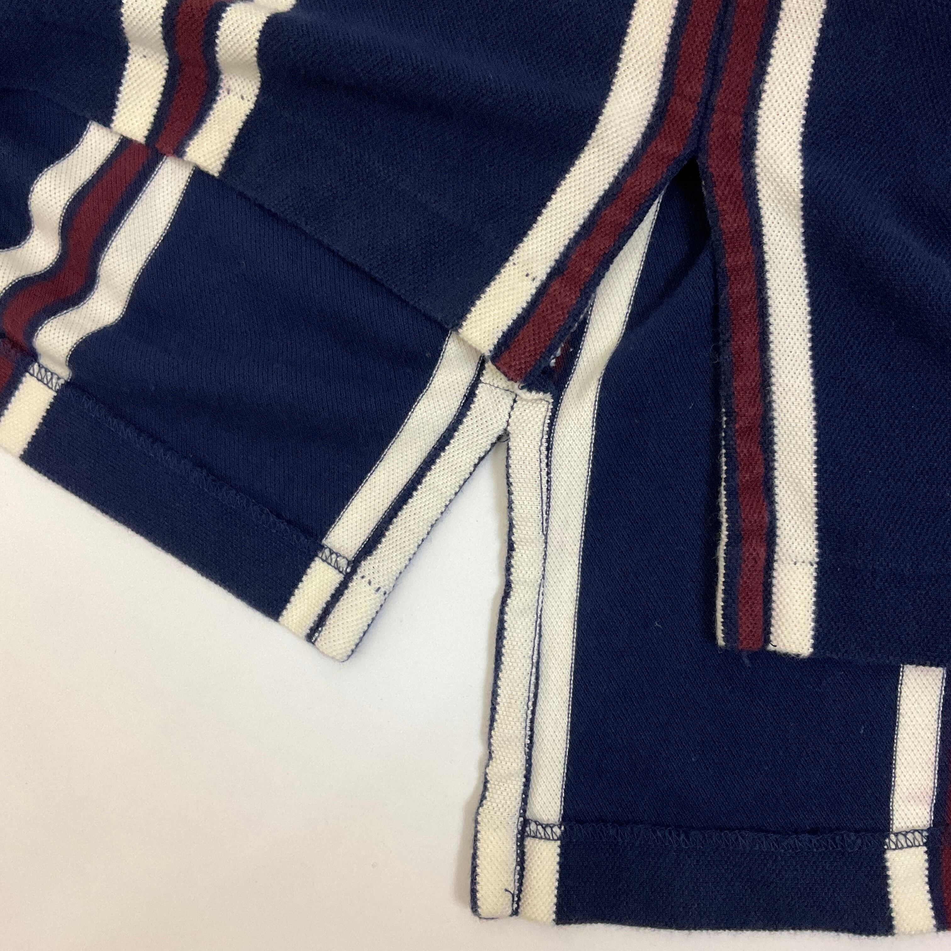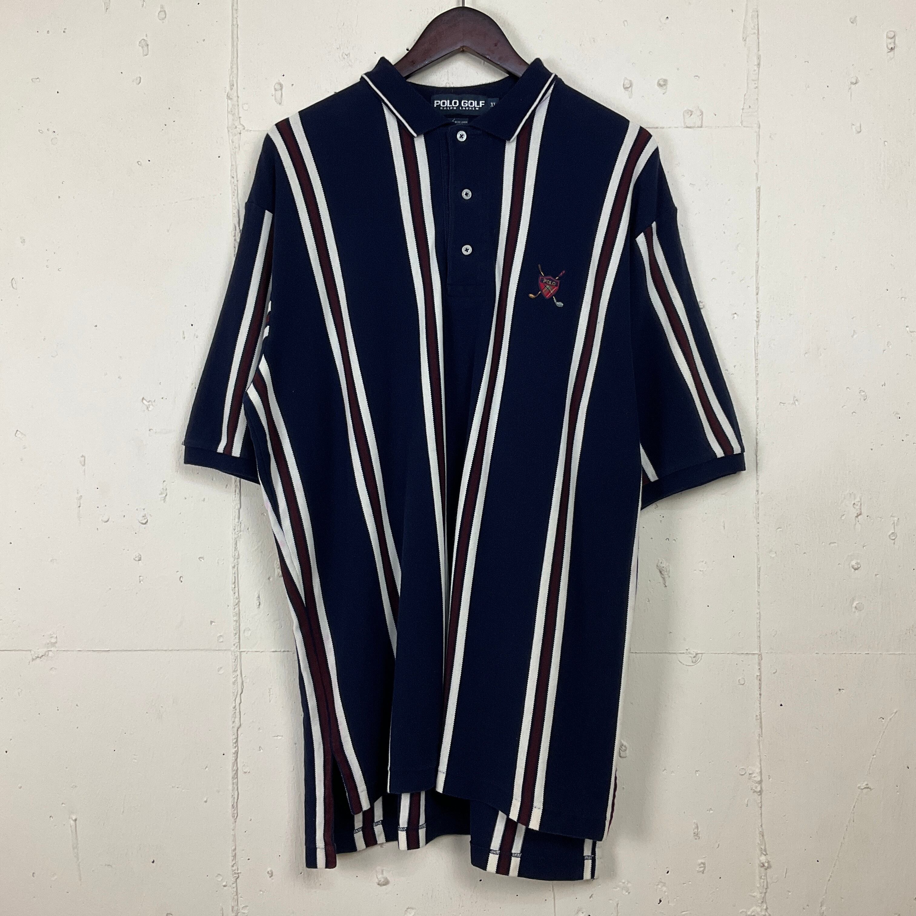 90年代 90s POLO GOLF ポロゴルフ ラルフローレン ワンポイントロゴ刺繍 ストライプ 鹿子 ポロシャツ 古着 ネイビー 紺 メンズXL Ralph Lauren ヴィンテージ ビンテージ【f240503003】
