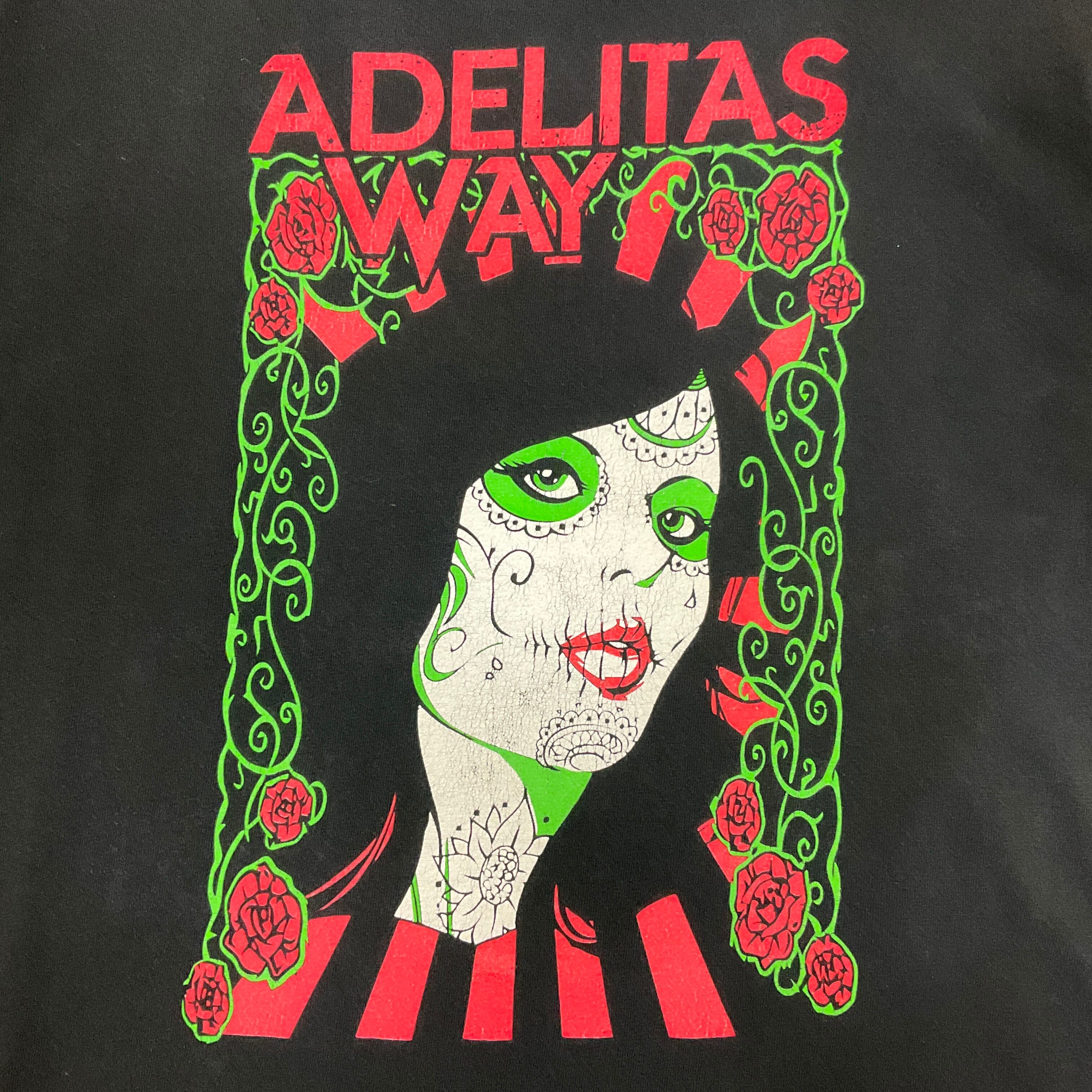 ADELITAS WAY アデリタスウェイ ロック 女性 バンド Tシャツ 古着 メンズL相当 フェードブラック 黒【f240503009】