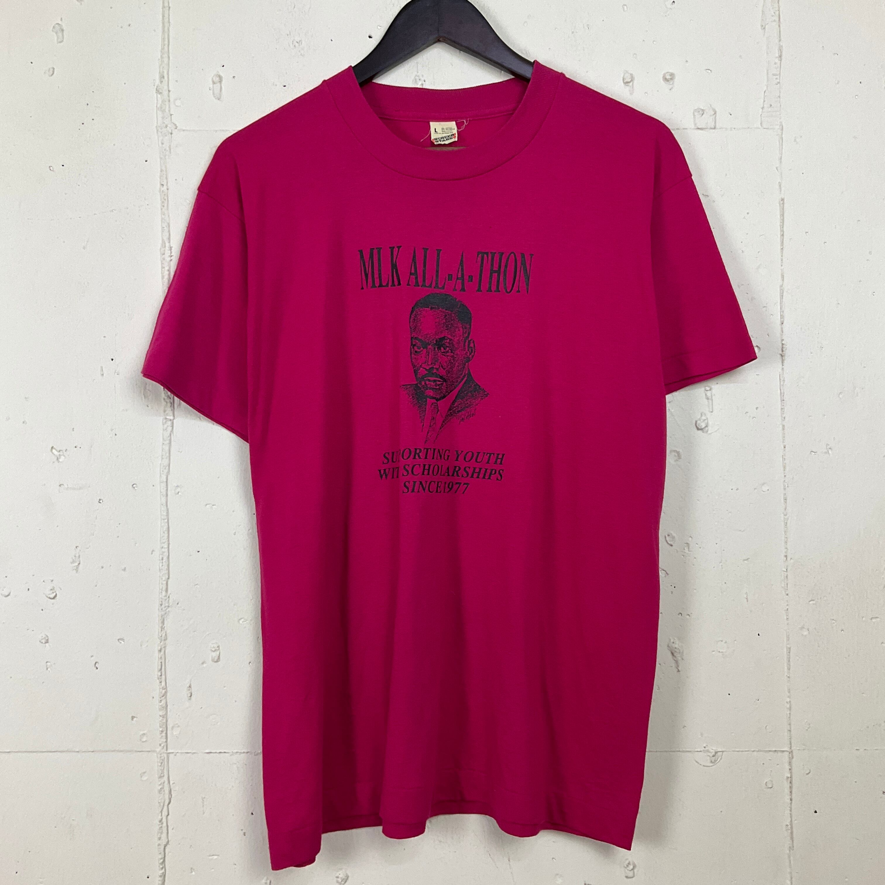 80年代 80's Martin Luther King Jr キング牧師 偉人 Tシャツ 古着 メンズL シングルステッチ ヴィンテージ ビンテージ ピンク MLK ALL A THON 【f240503015】
