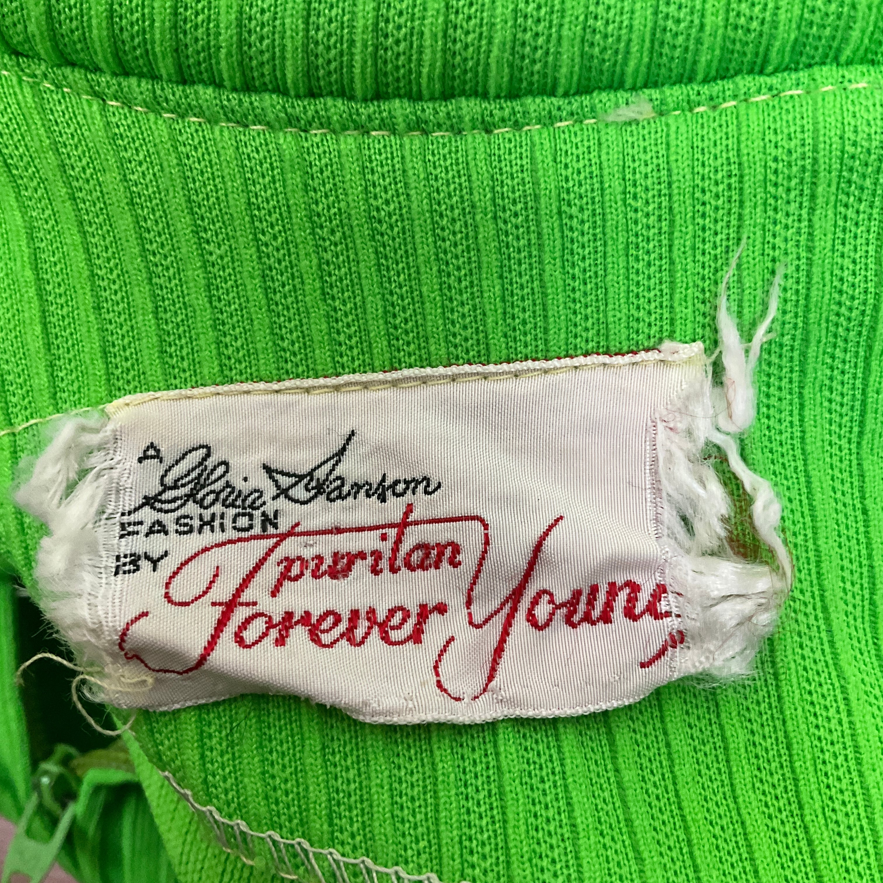 USA製 70年代 70s Aライン 半袖 ワンピース レディースM相当 古着 ヴィンテージ ビンテージ ライトグリーン 黄緑 TALON【f240515001】