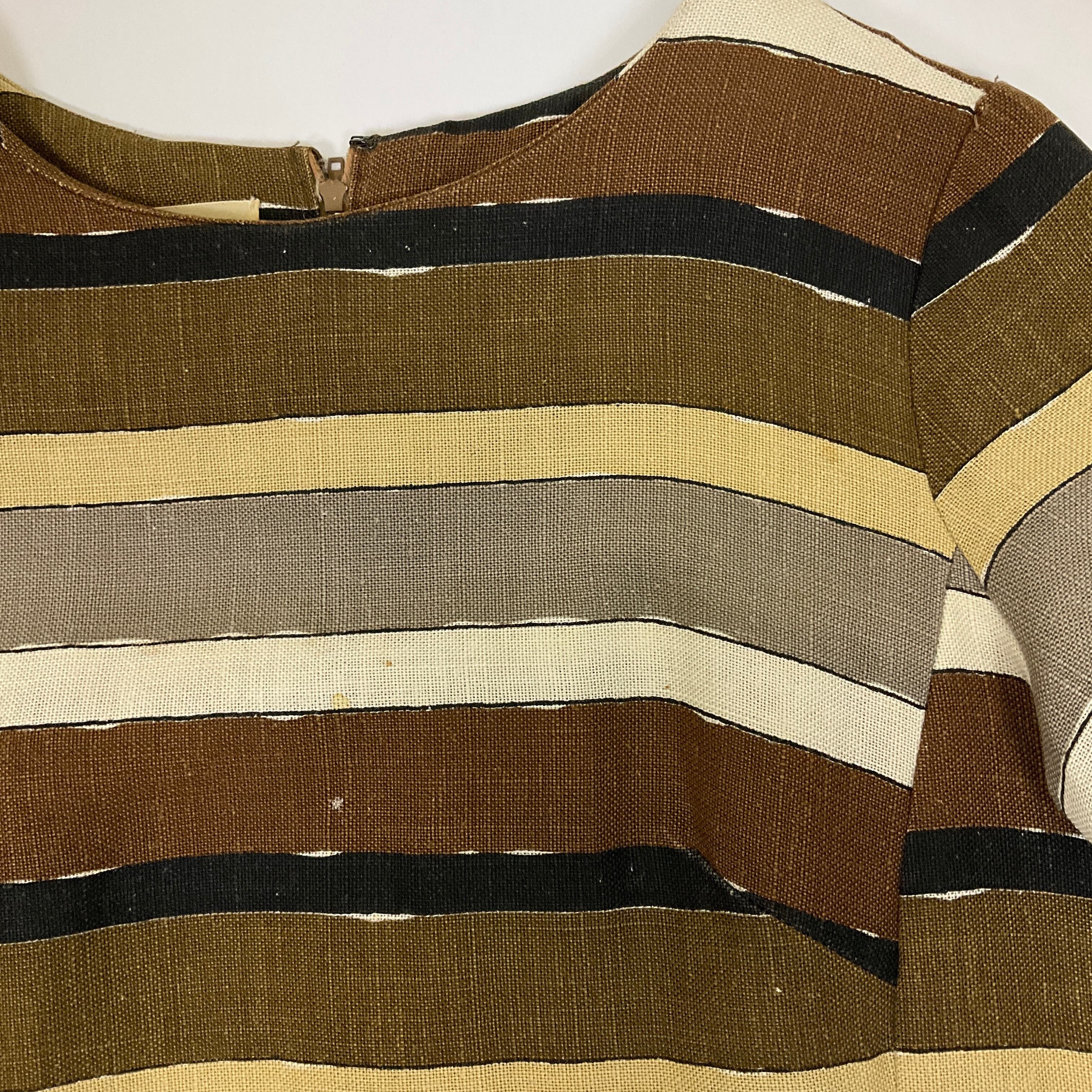 70年代 70s Aライン ボーダー 半袖 ワンピース レディースL相当 古着 ヴィンテージ ビンテージ ブラウン 茶色【f240515006】