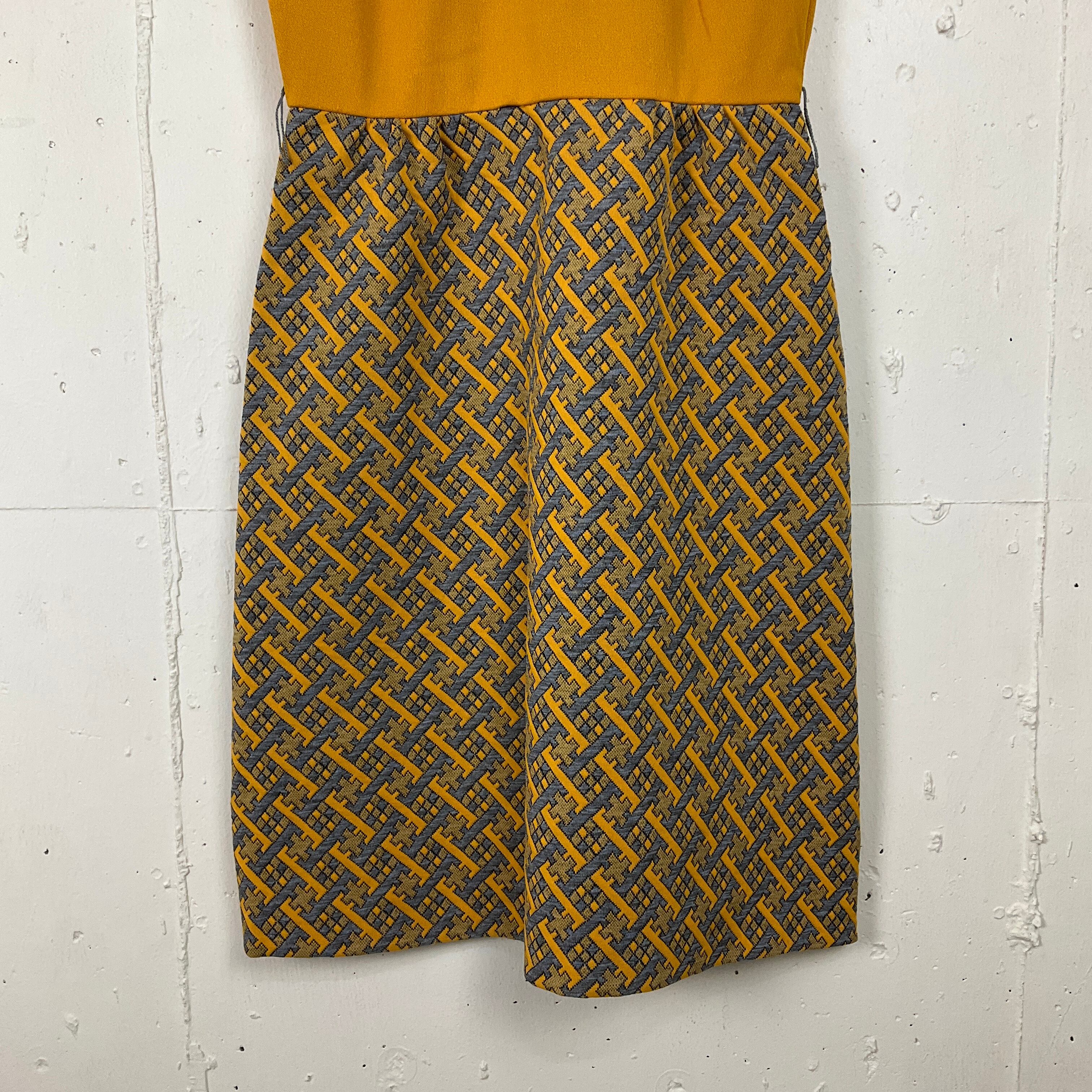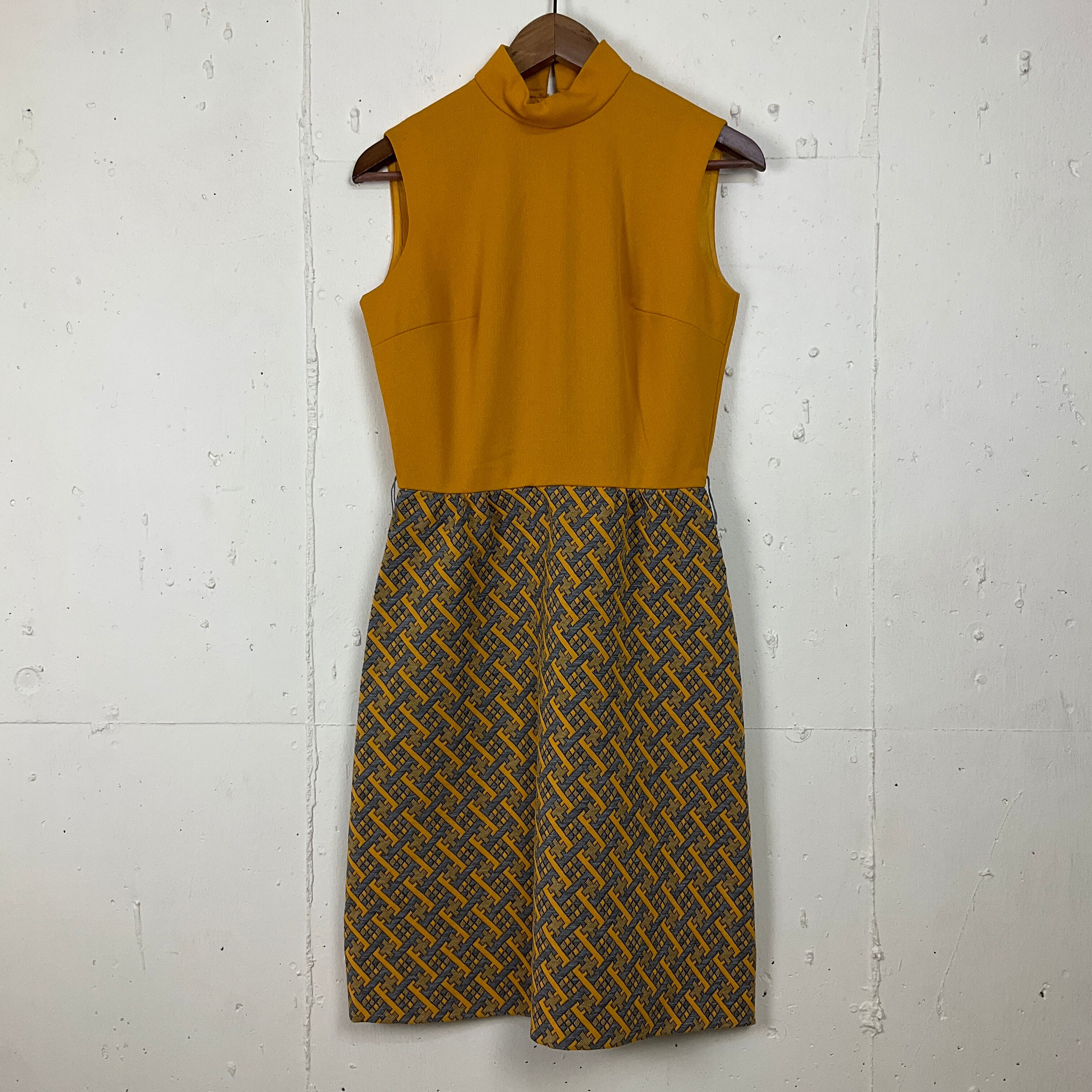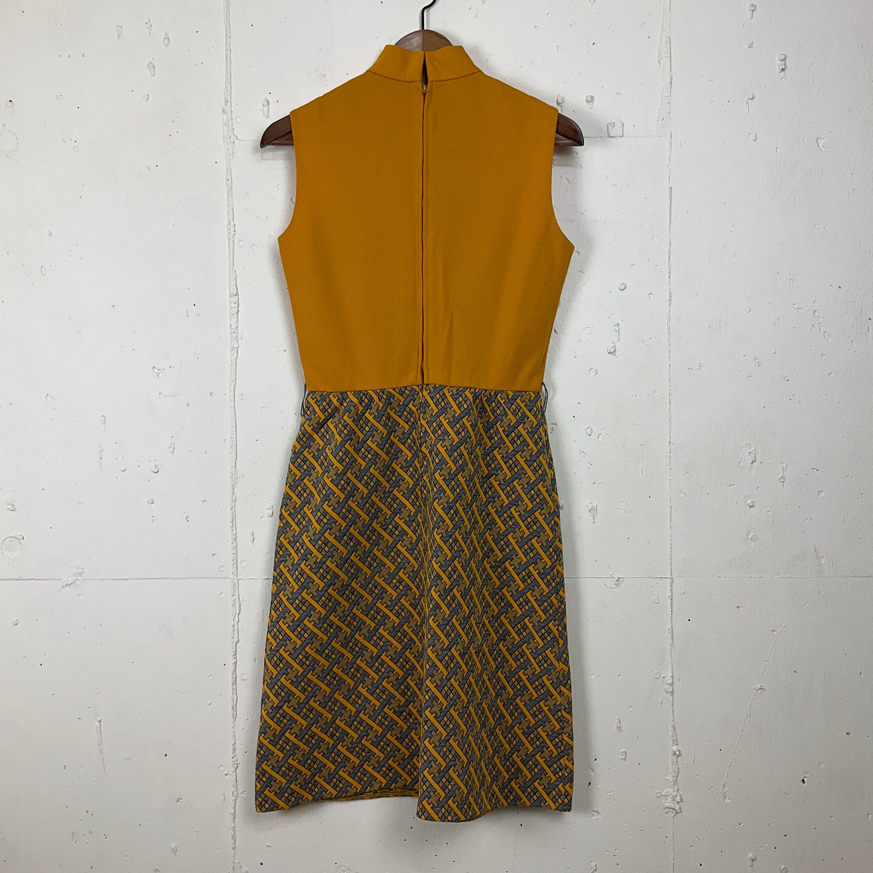USA製 70年代 70s ノースリーブ 切り替え ワンピース レディースS相当 古着 ヴィンテージ ビンテージ イエロー×グレー 黄色 TALON【f240515008】