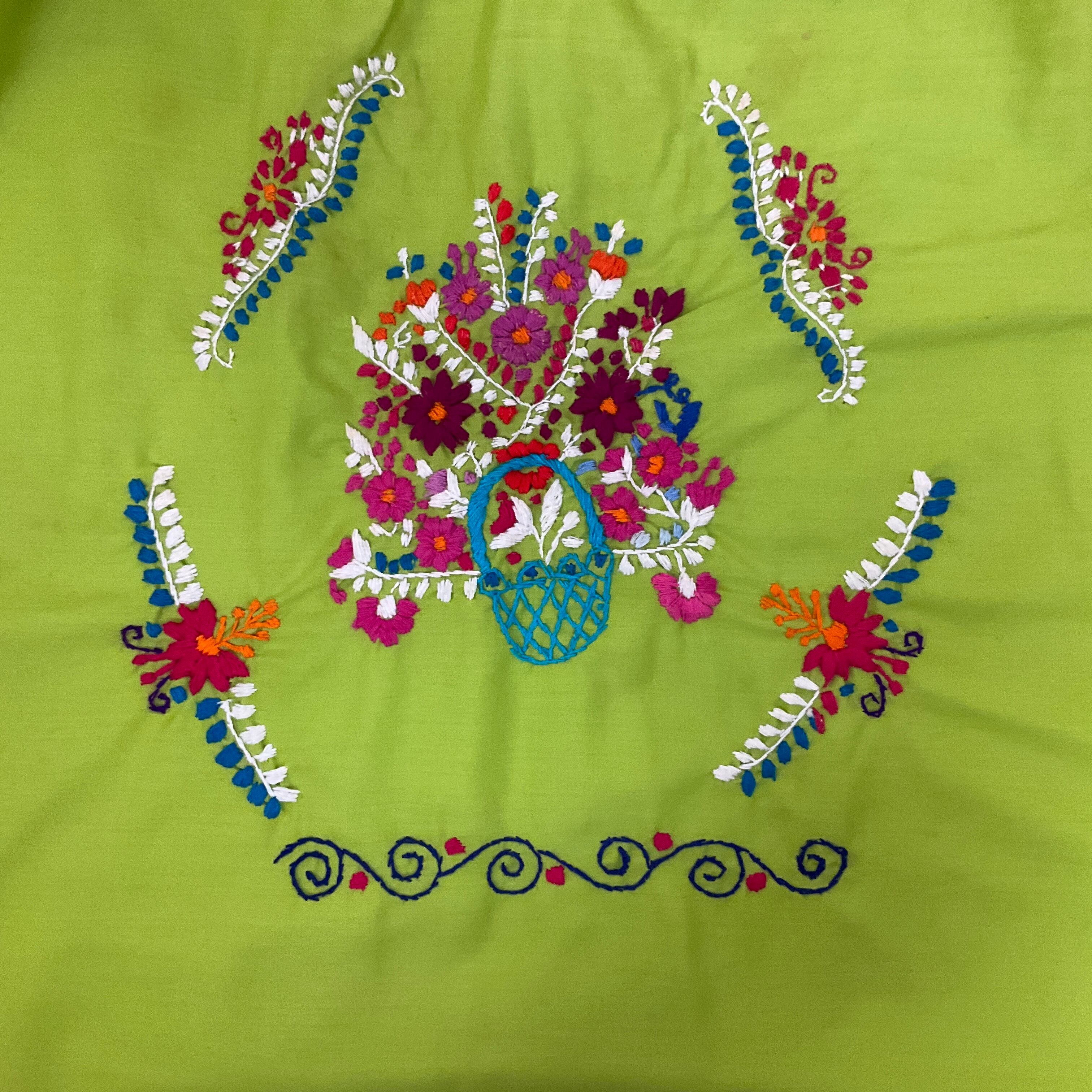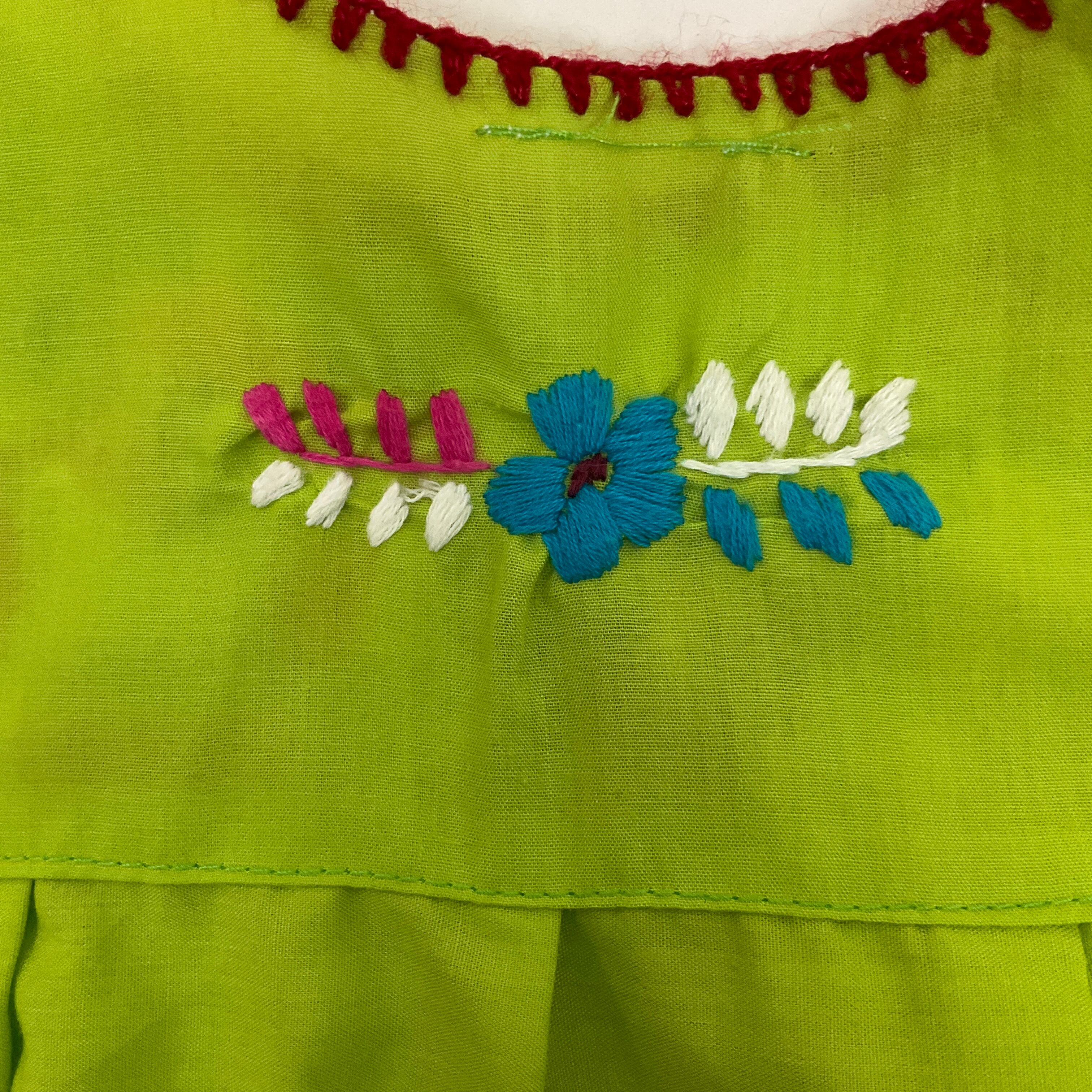 半袖 花刺繍 メキシカン ワンピース レディースS相当 古着 黄緑 ライトグリーン【f240515011】