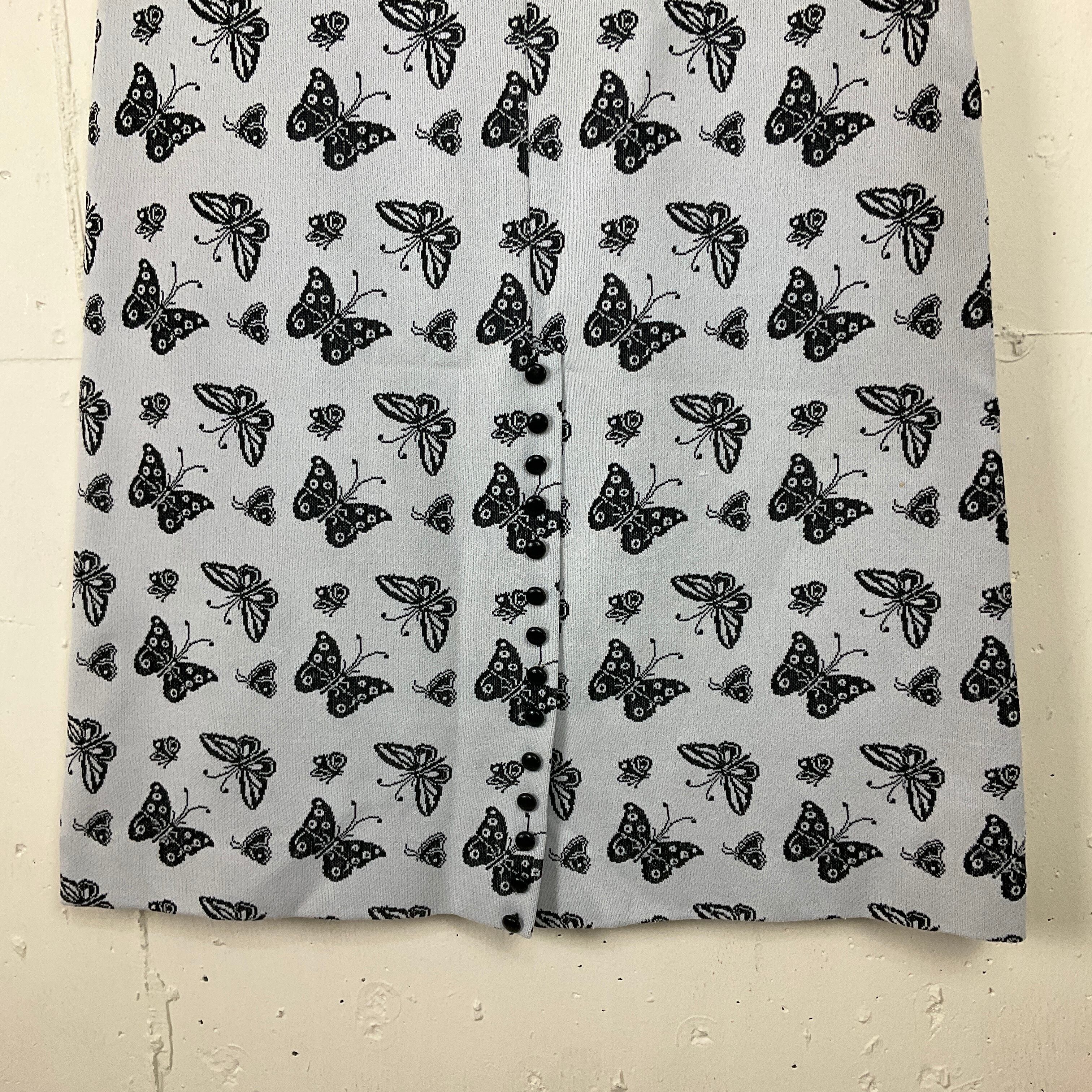 70年代 70s 蝶々 総柄 ノースリーブ Aライン ワンピース レディースL相当 古着 ヴィンテージ ビンテージ グレー【f240515024】