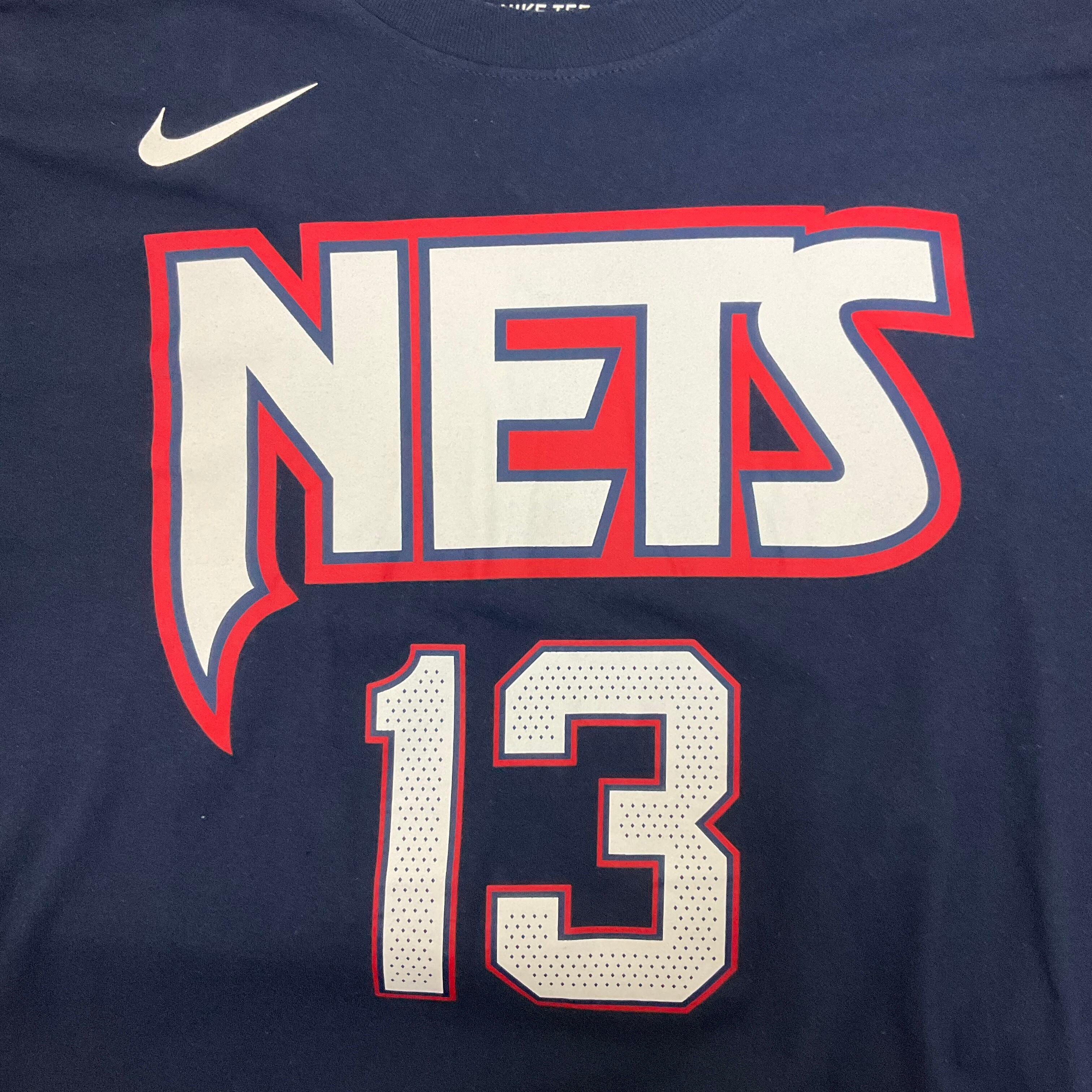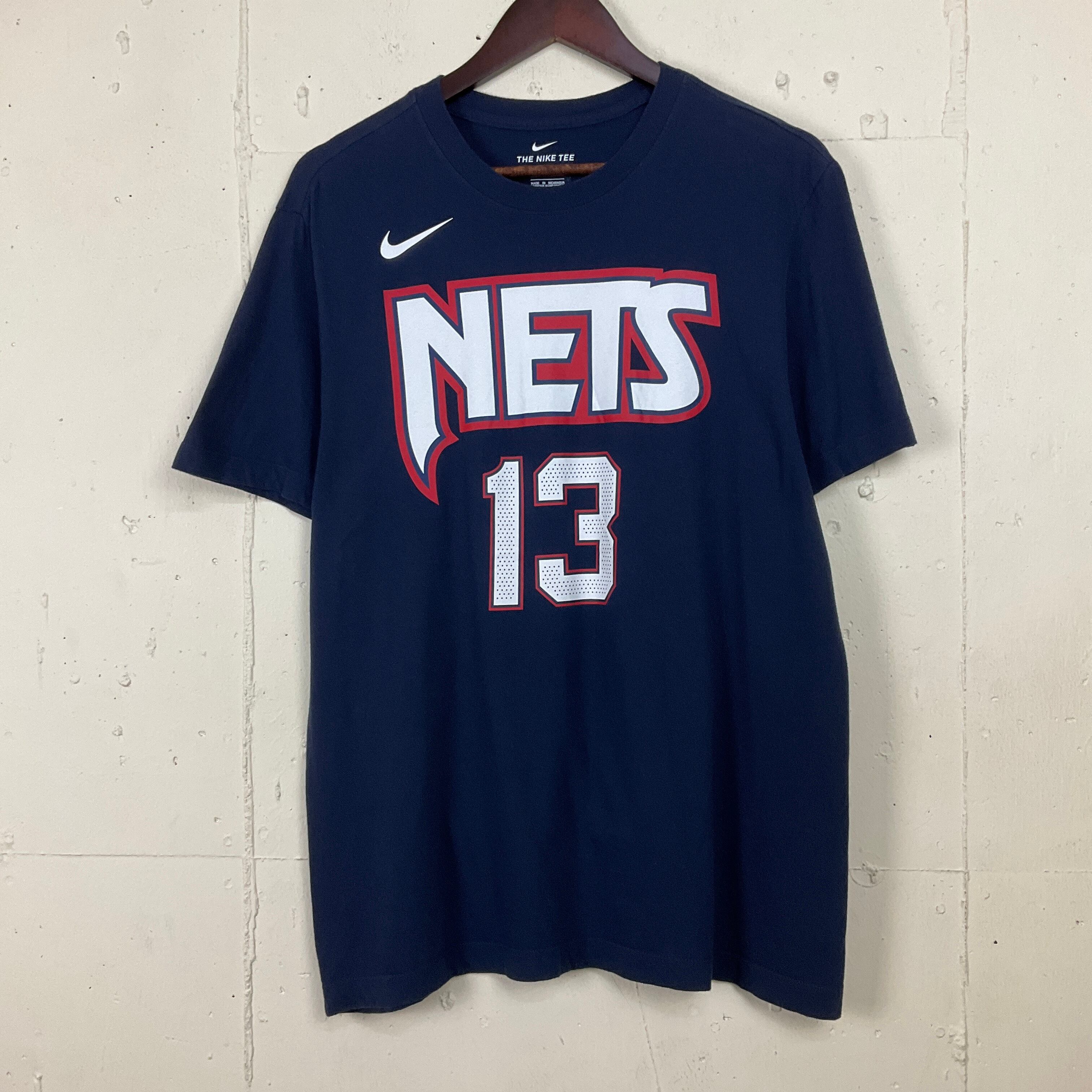 NIKE ナイキ NBA NETS ネッツ HARDEN 13 両面プリント Tシャツ 古着 メンズM ナンバリング ネイビー 紺【f240516001】