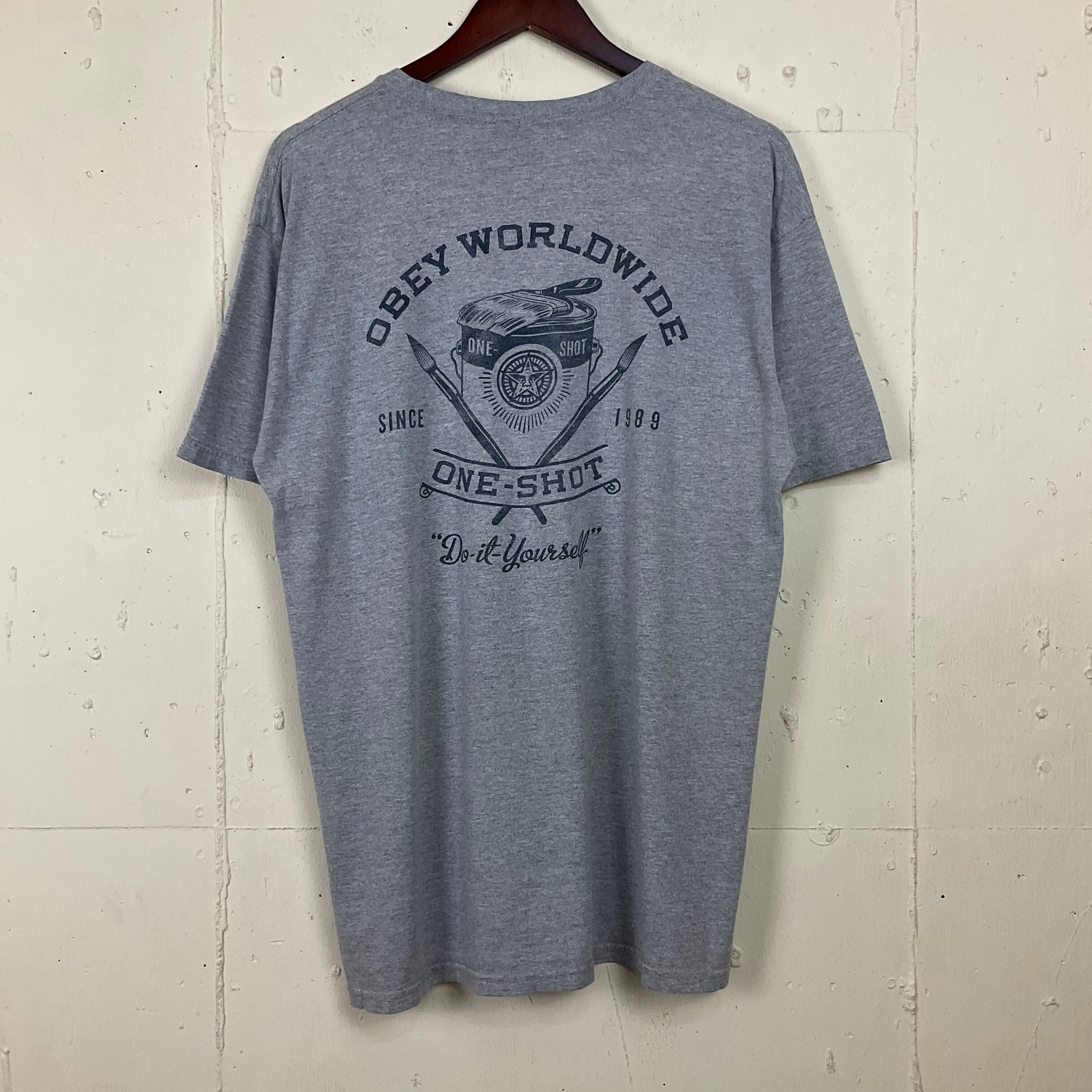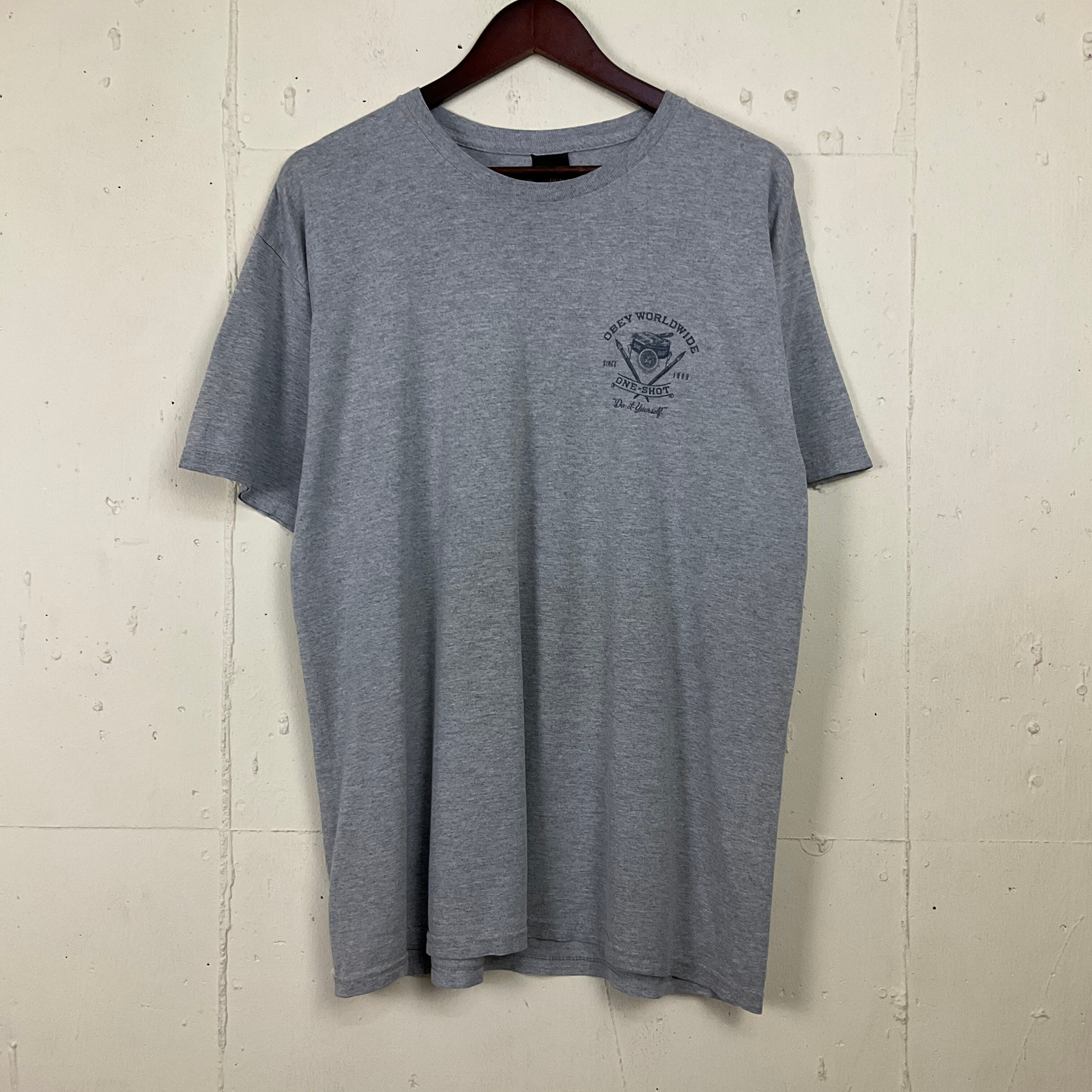 Obay オベイ 胸ロゴ バックプリント Tシャツ 古着 メンズL グレー【f240516015】