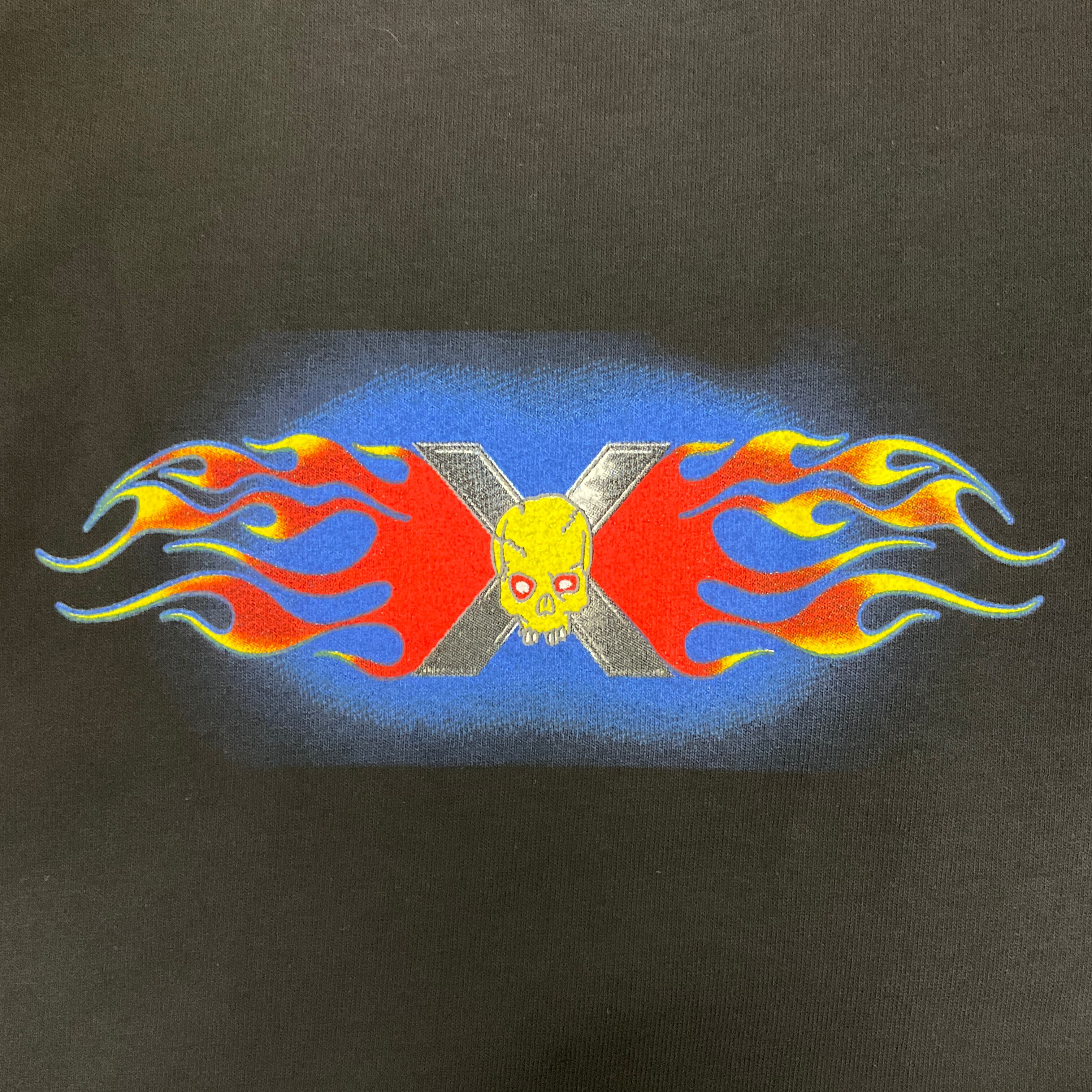 X-Press スカル 企業 アドバタイジング バックプリント Tシャツ 古着 メンズM ブラック 黒【f240516018】