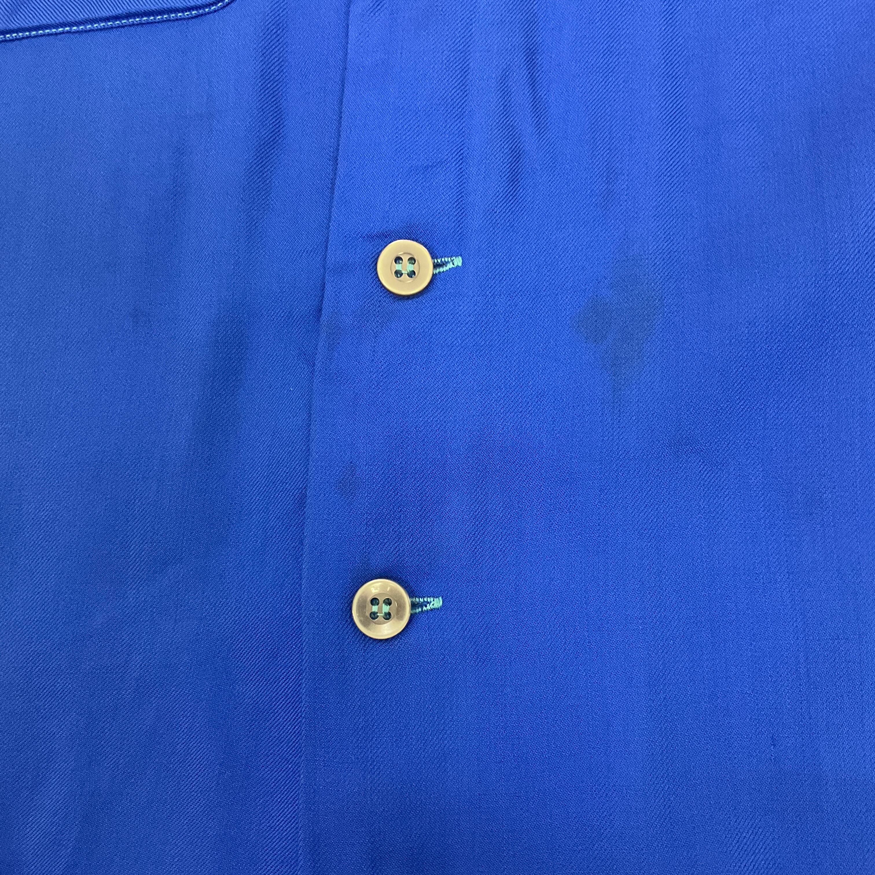 60年代 60s バックプリント レーヨン ボウリングシャツ 半袖シャツ 古着 ヴィンテージ ビンテージ メンズM L相当 ブルー 青【f240517003】