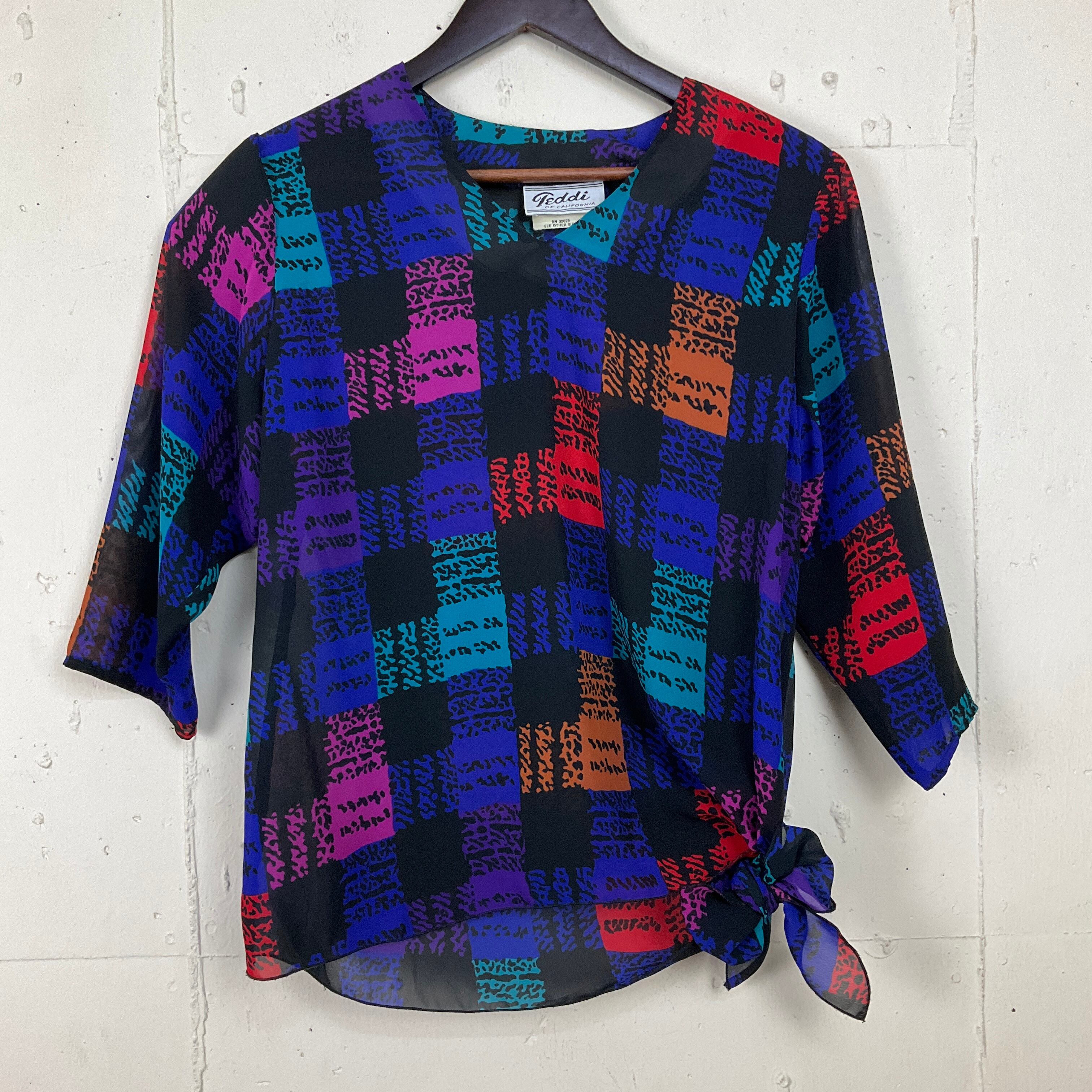 USA製 80年代 80s Teddi 総柄 シースルー 5部袖 デザイン カットソー シャツ レディース 12 古着 ヴィンテージ ビンテージ リボン デザイン【f240524002】