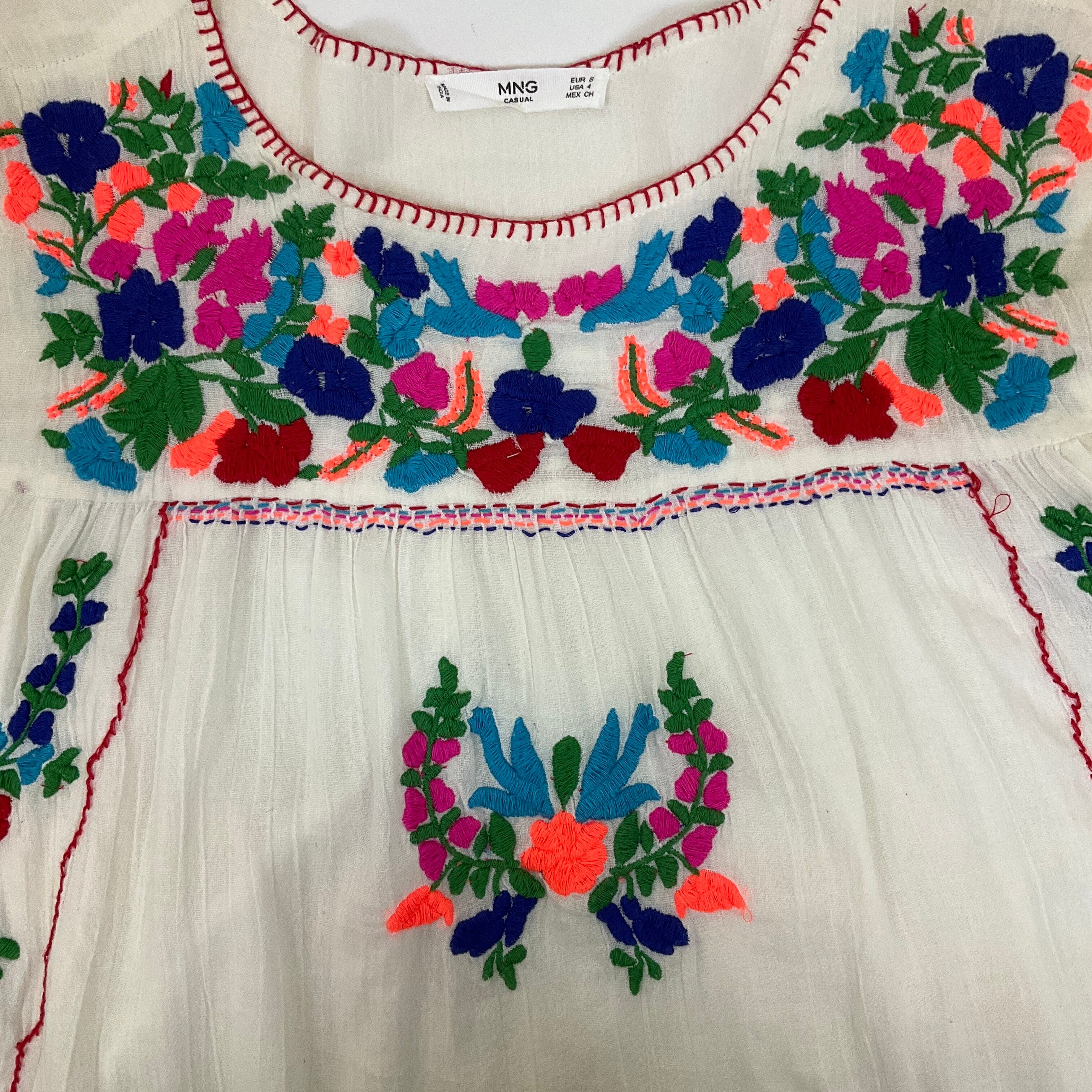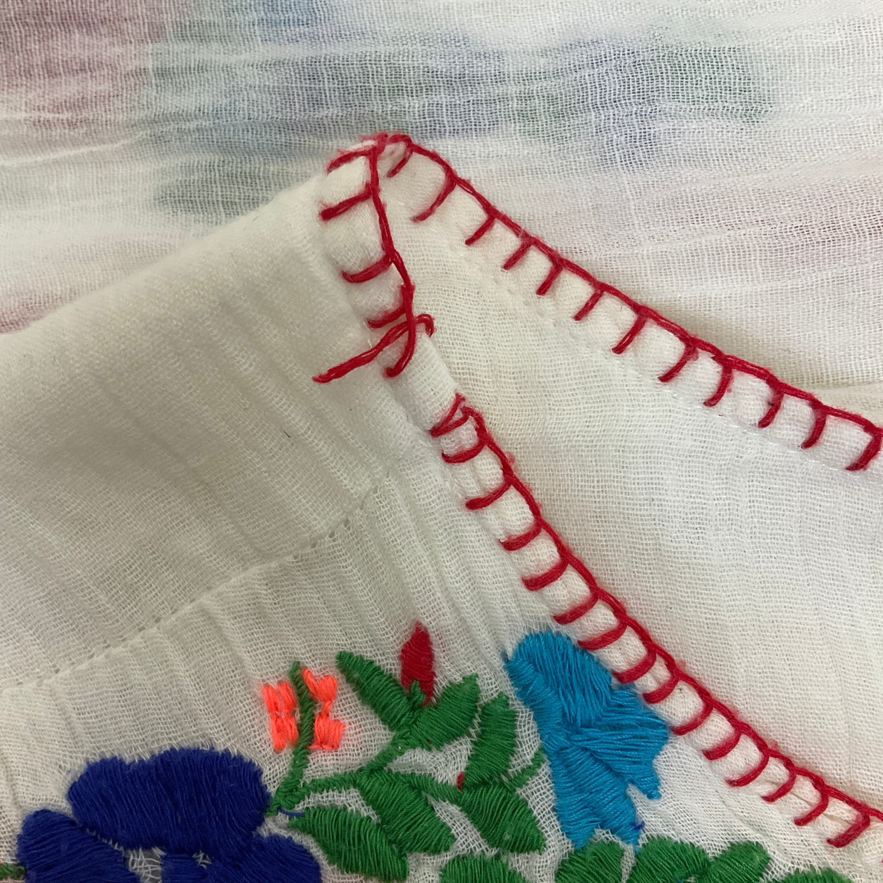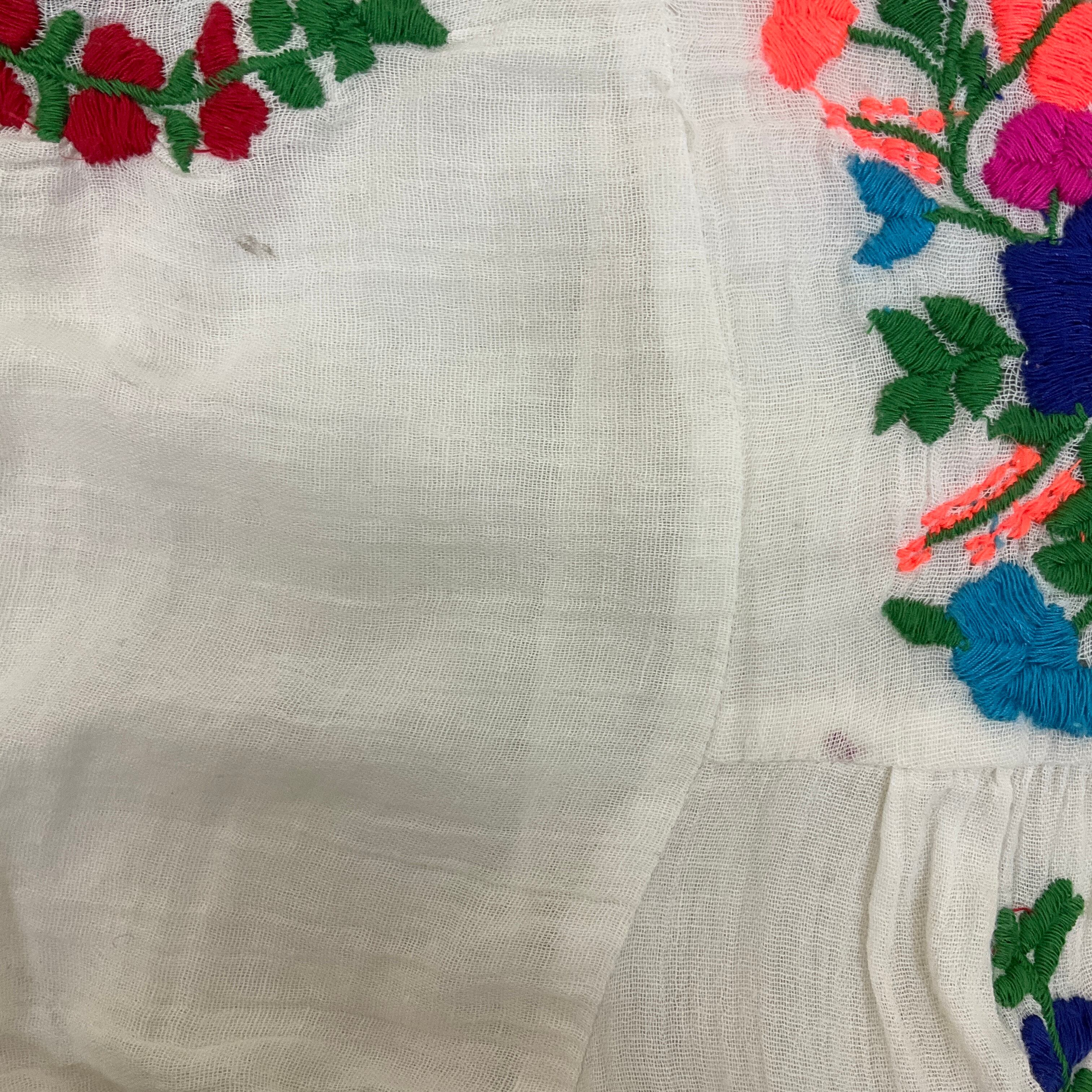 インド製 ガーゼコットン 花刺繍 半袖シャツ チュニック レディースM相当 古着 ホワイト 白【f240524010】
