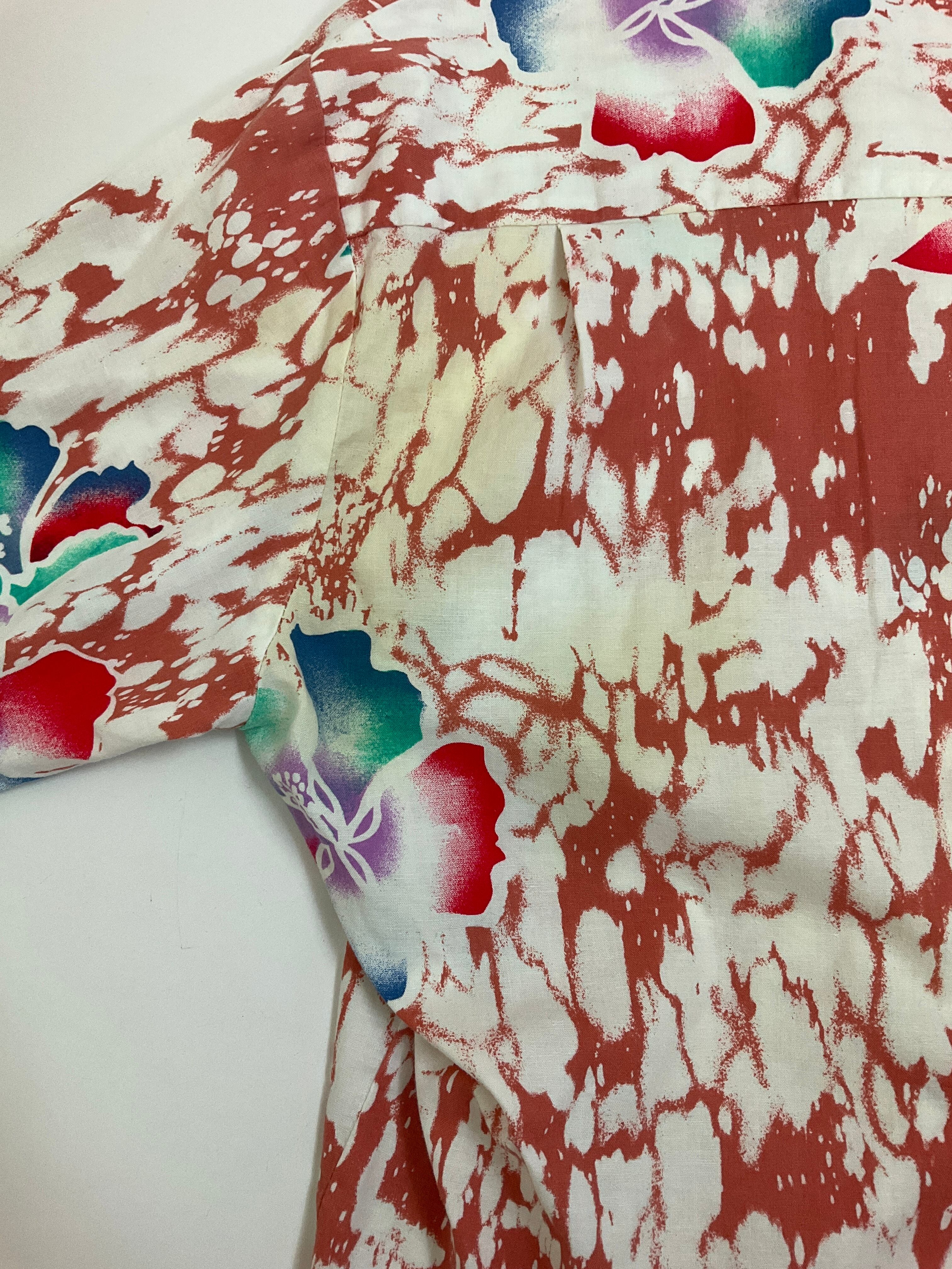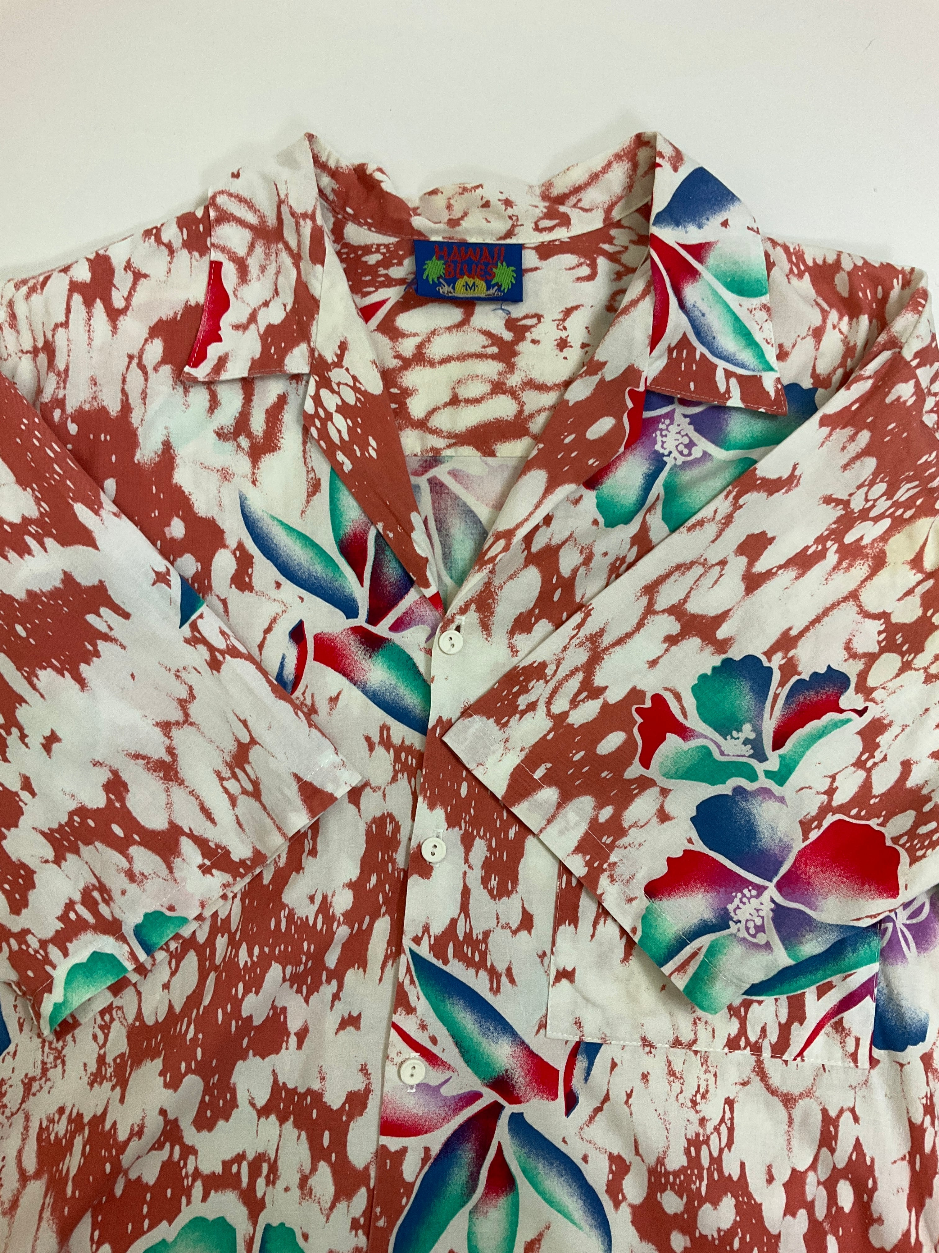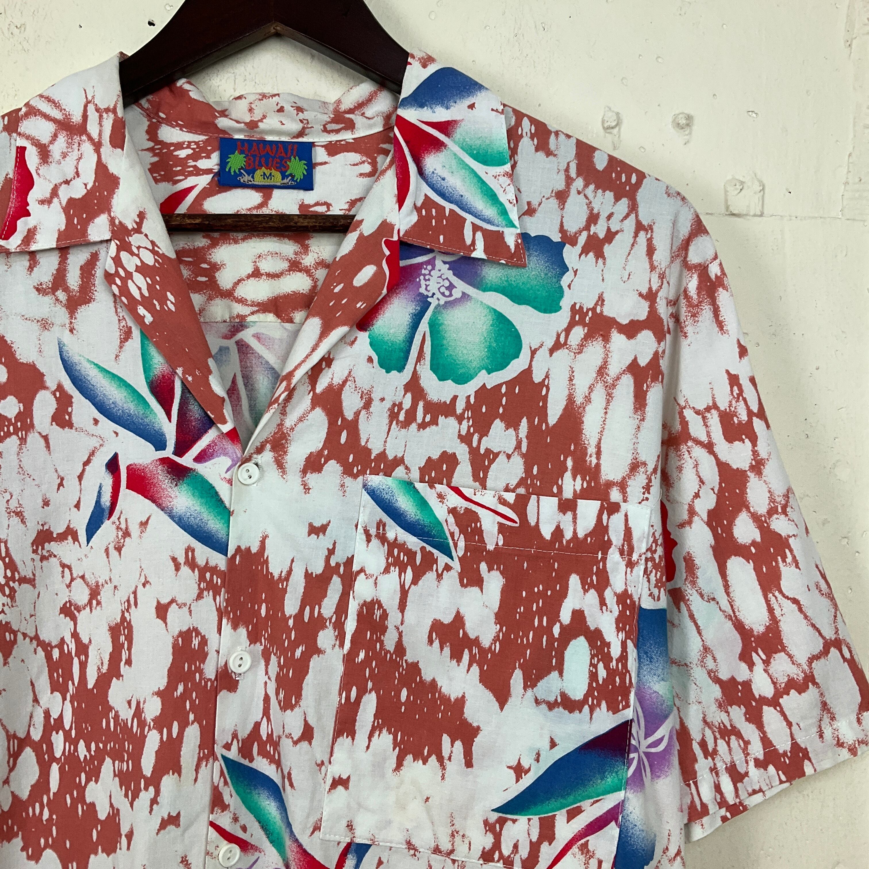 80年代 80s HAWAII BLUES ハイビス 花 開襟 オープンカラー アロハシャツ 半袖シャツ 古着 ヴィンテージ ビンテージ メンズM 【f240527003】