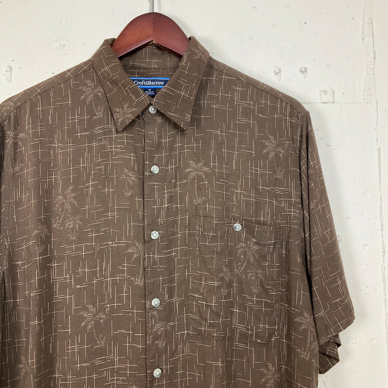 croft&barrow 総柄 アロハ ヤシの木 レーヨン 半袖シャツ 古着 メンズM【f240527007】