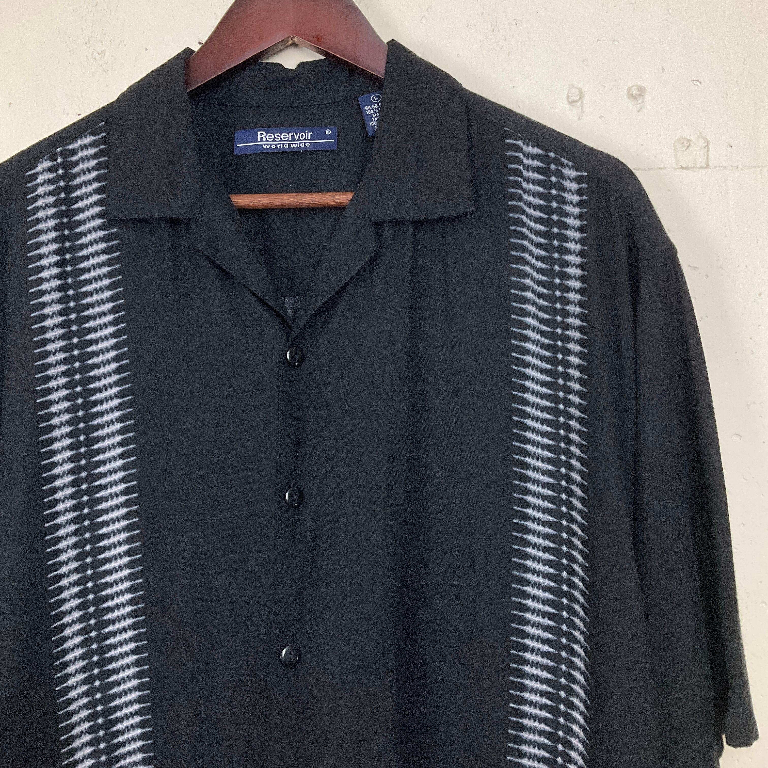Reservoir 開襟 オープンカラー レーヨン 半袖シャツ 古着 メンズL ブラック 黒【f240527009】