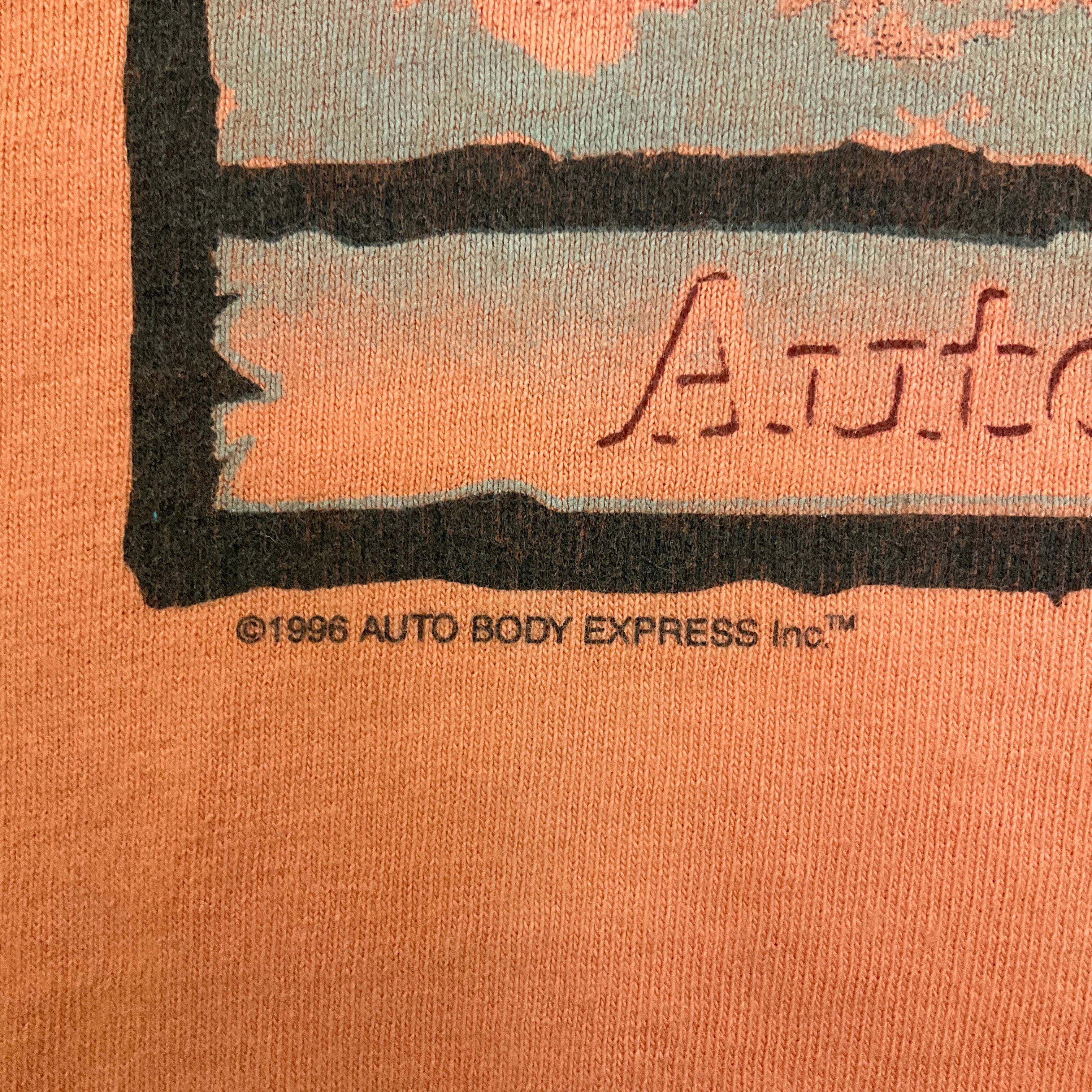 カナダ製 90年代 90s IMUS バッスァロー ネイティブ アート プリント Tシャツ 古着 メンズM 計測値メンズL相当 サーモンピンク 【f240528014】