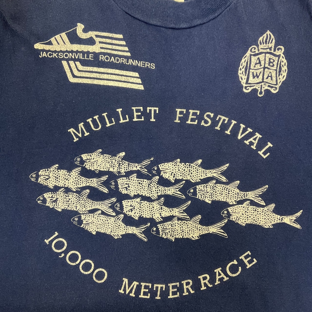 80年代 80s ボラ 魚 アニマル 両面プリント Tシャツ メンズL 古着 ネイビー 紺 シングルステッチ【f240528019】