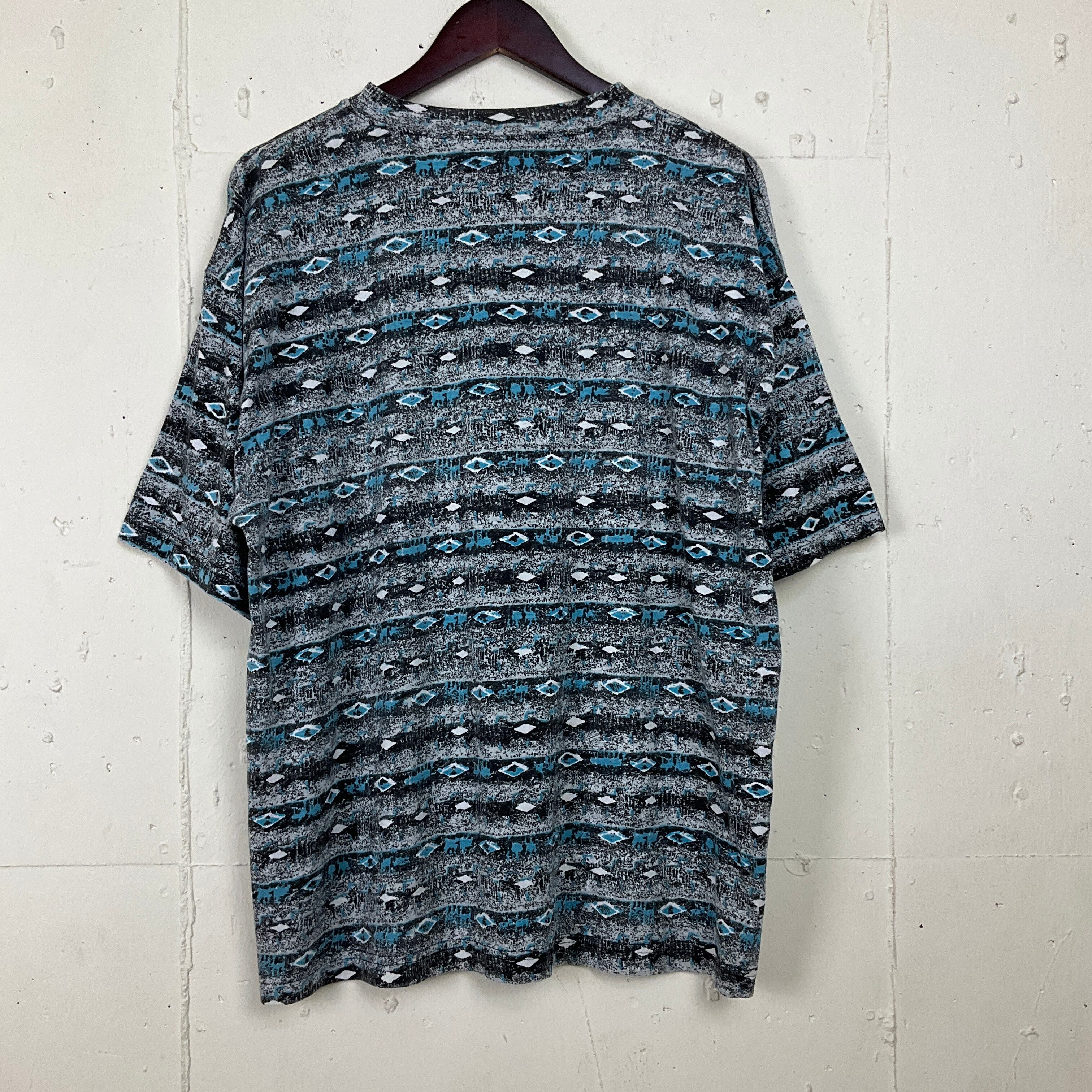 90年代 90s WEEDS ネイティブ柄 総柄 ボーダー Tシャツ 古着 メンズXL ヴィンテージ ビンテージ【f240528023】