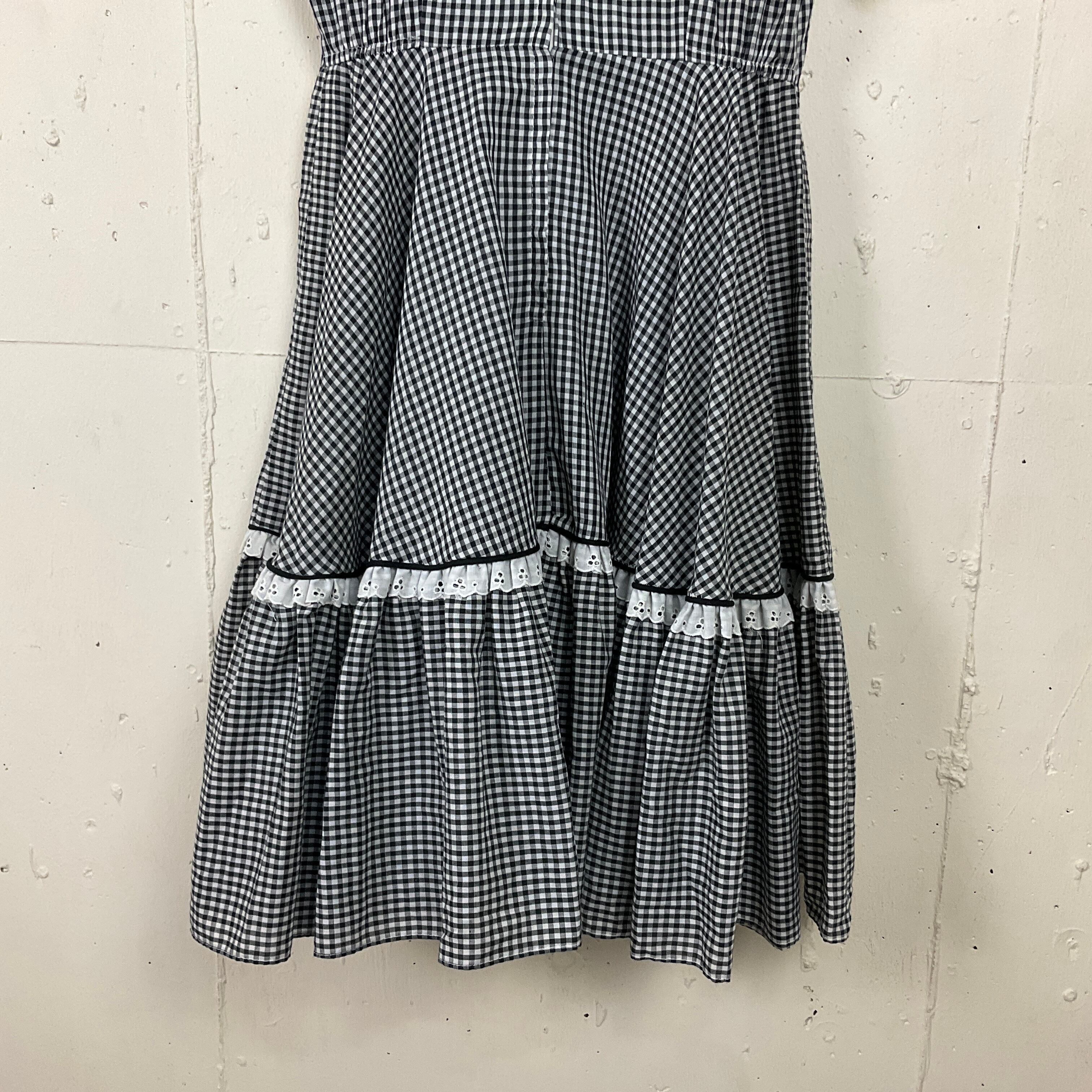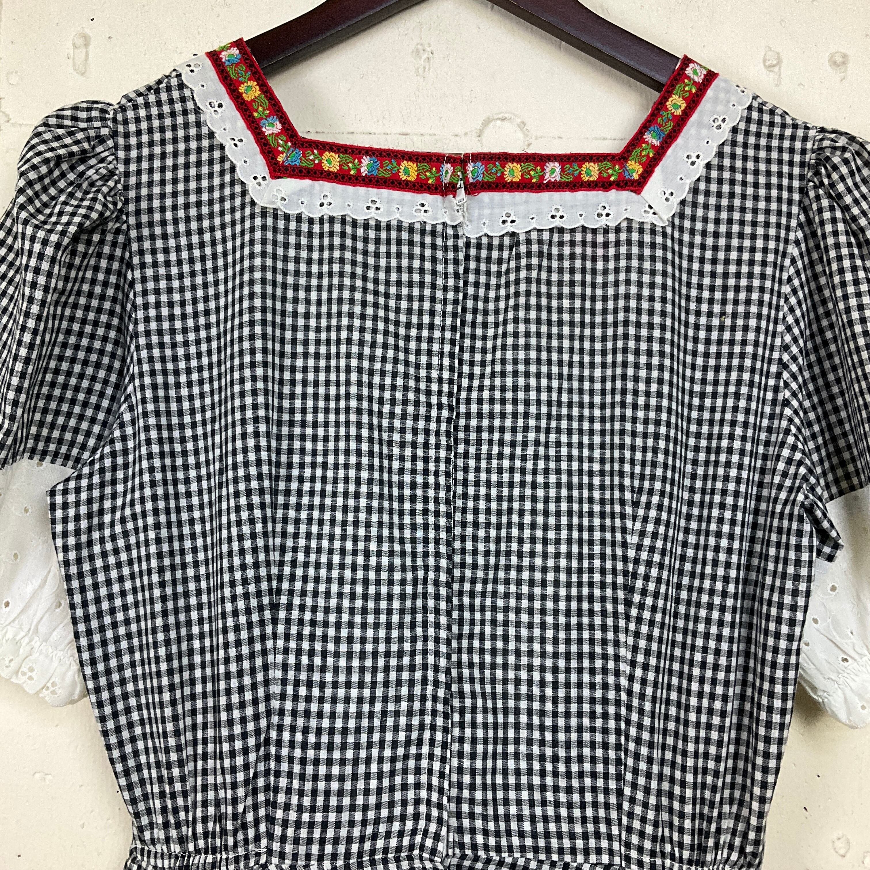 USA製 70年代 70s Malco Modes 花 刺繍 レース 半袖 チロル ワンピース レディースM相当 古着 ヴィンテージ ビンテージ ブラック×ホワイト 白黒【f240528030】