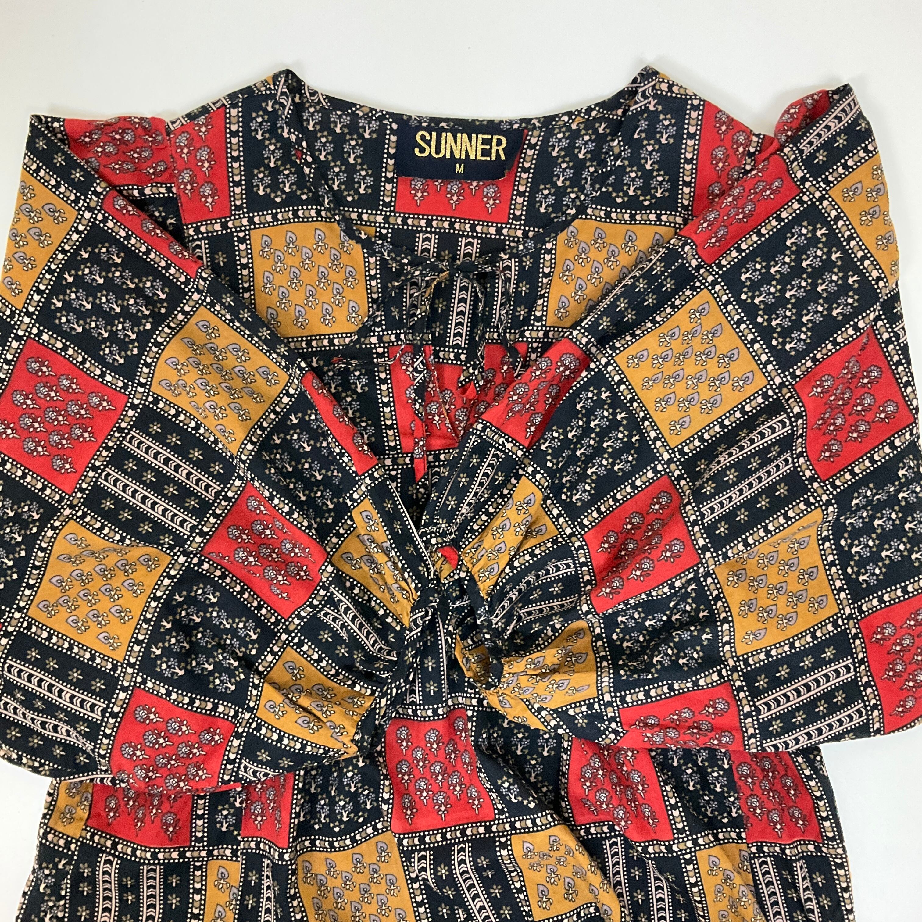 SUNNER 花柄 エスニック バルーン袖 チュニック トップス シャツ ブラウス レディースM 古着【f240528031】