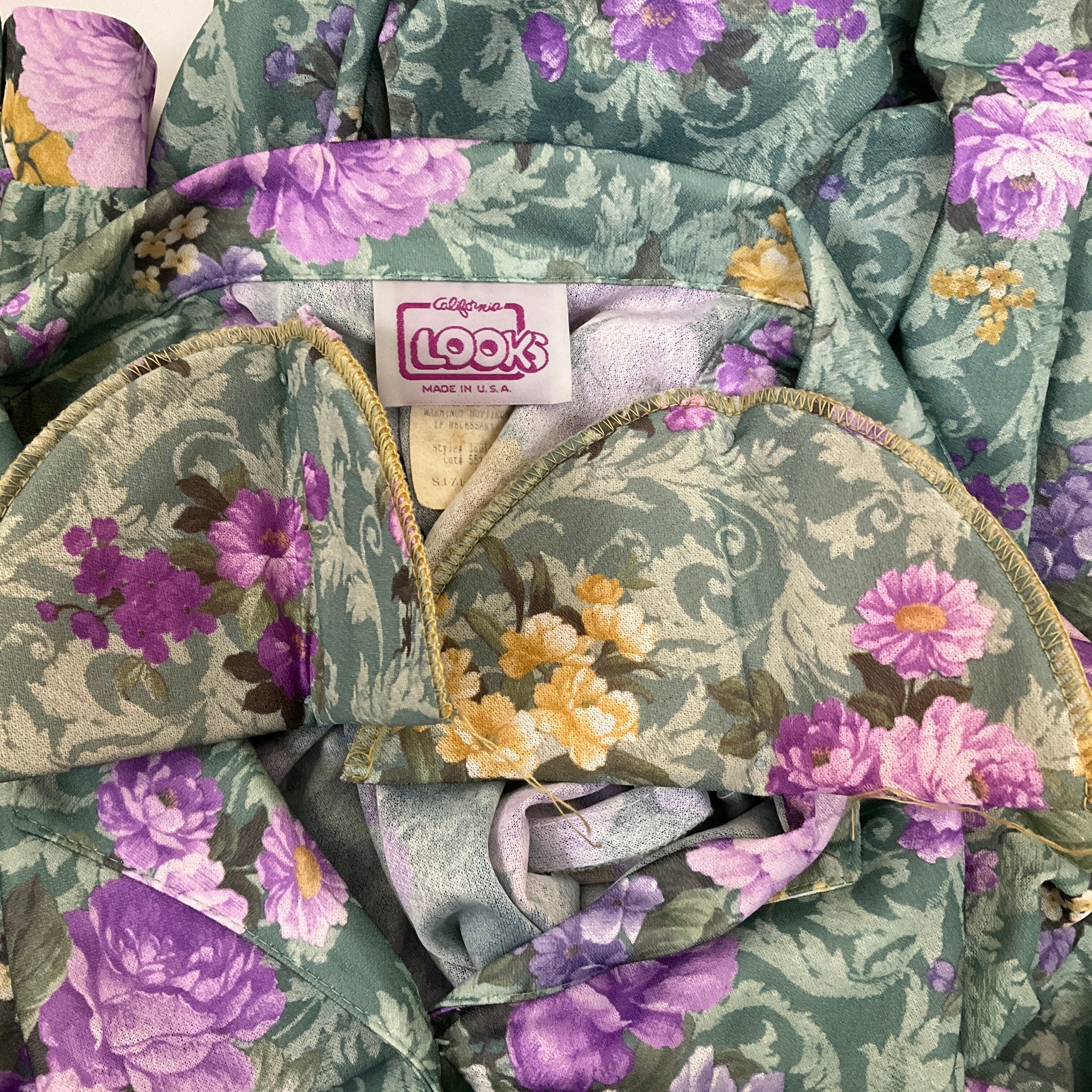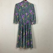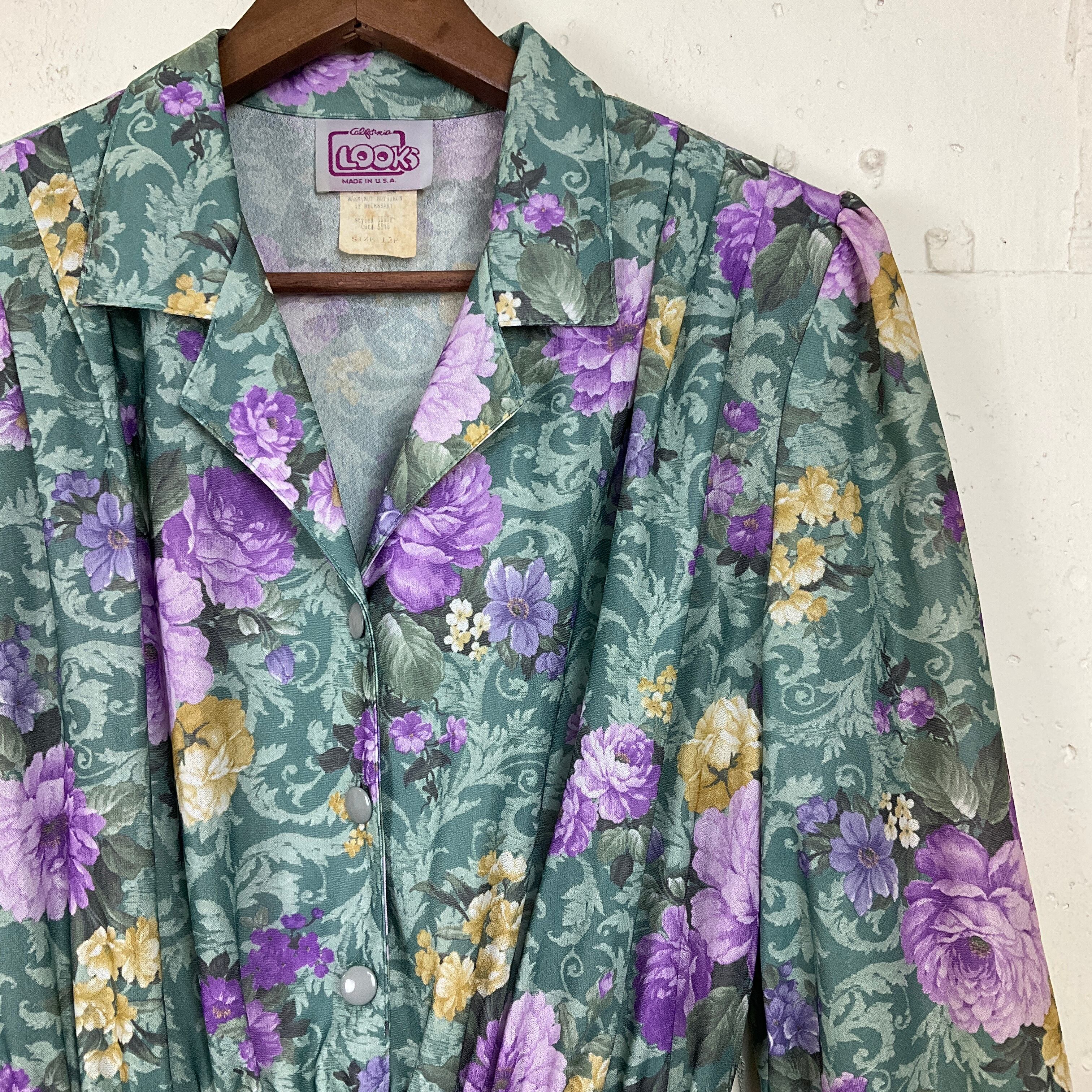 USA製 〜80年代 〜80s LOOKS 花柄 シャツ ワンピース レディースM相当 古着 ヴィンテージ ビンテージ 7部袖 グリーン 緑【f240528032】