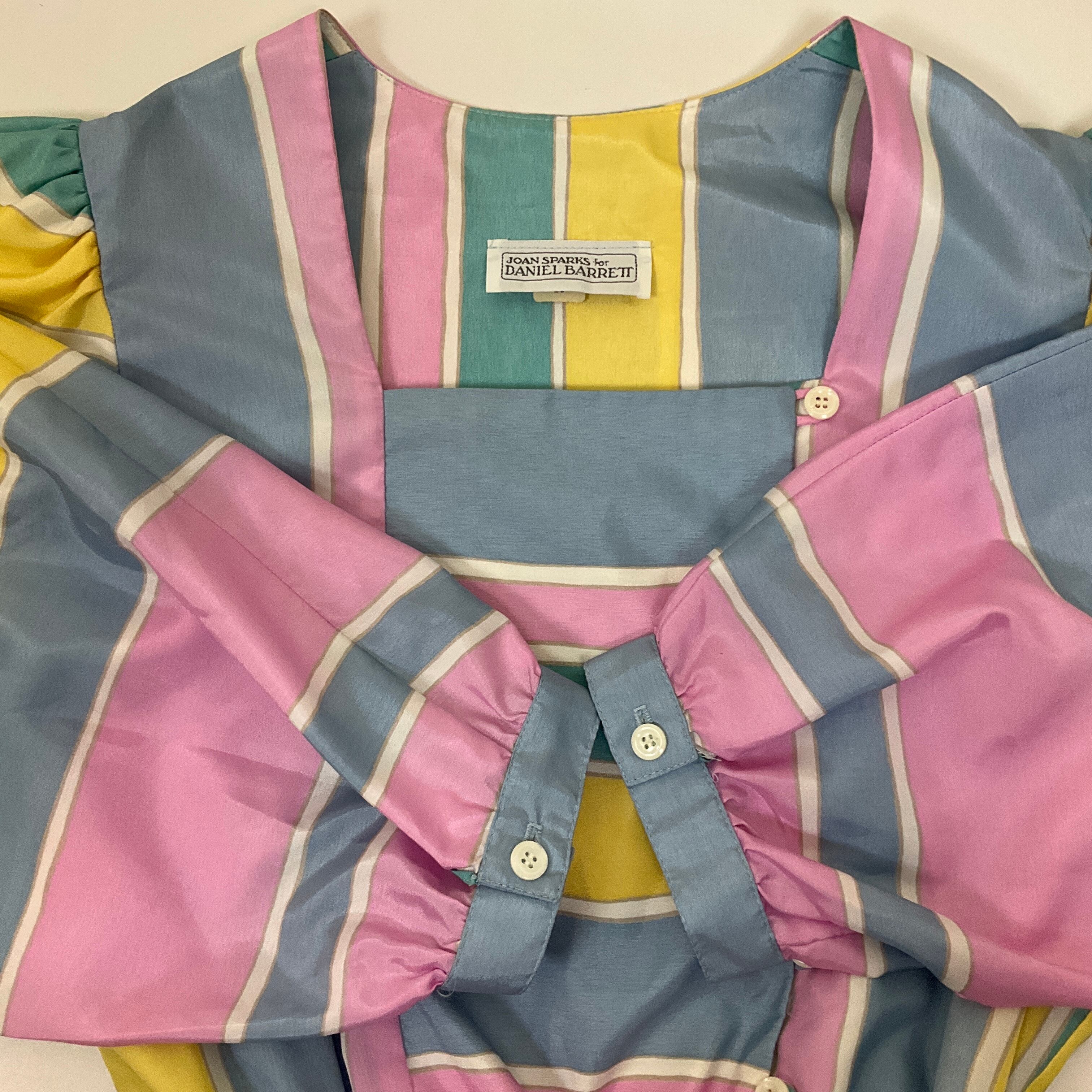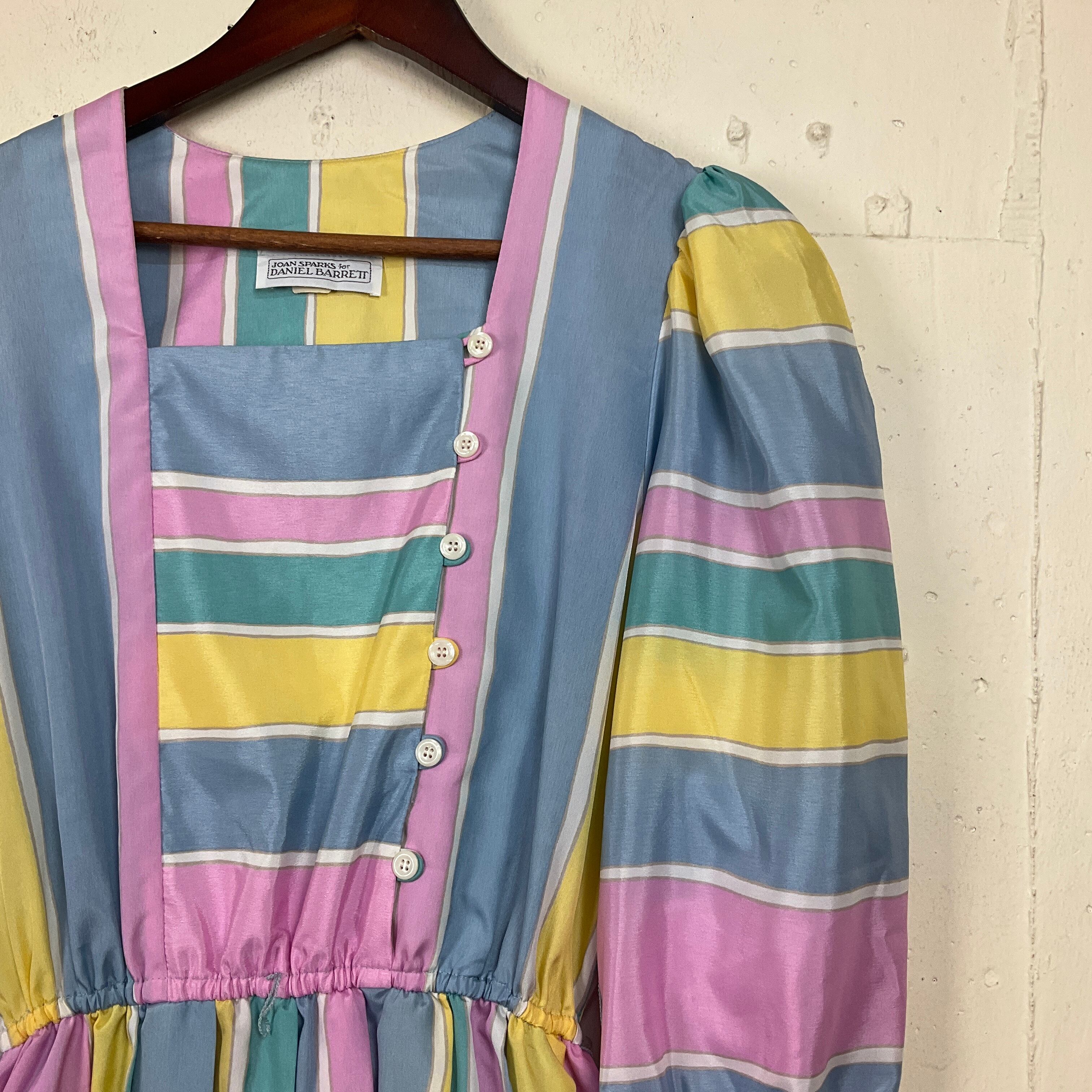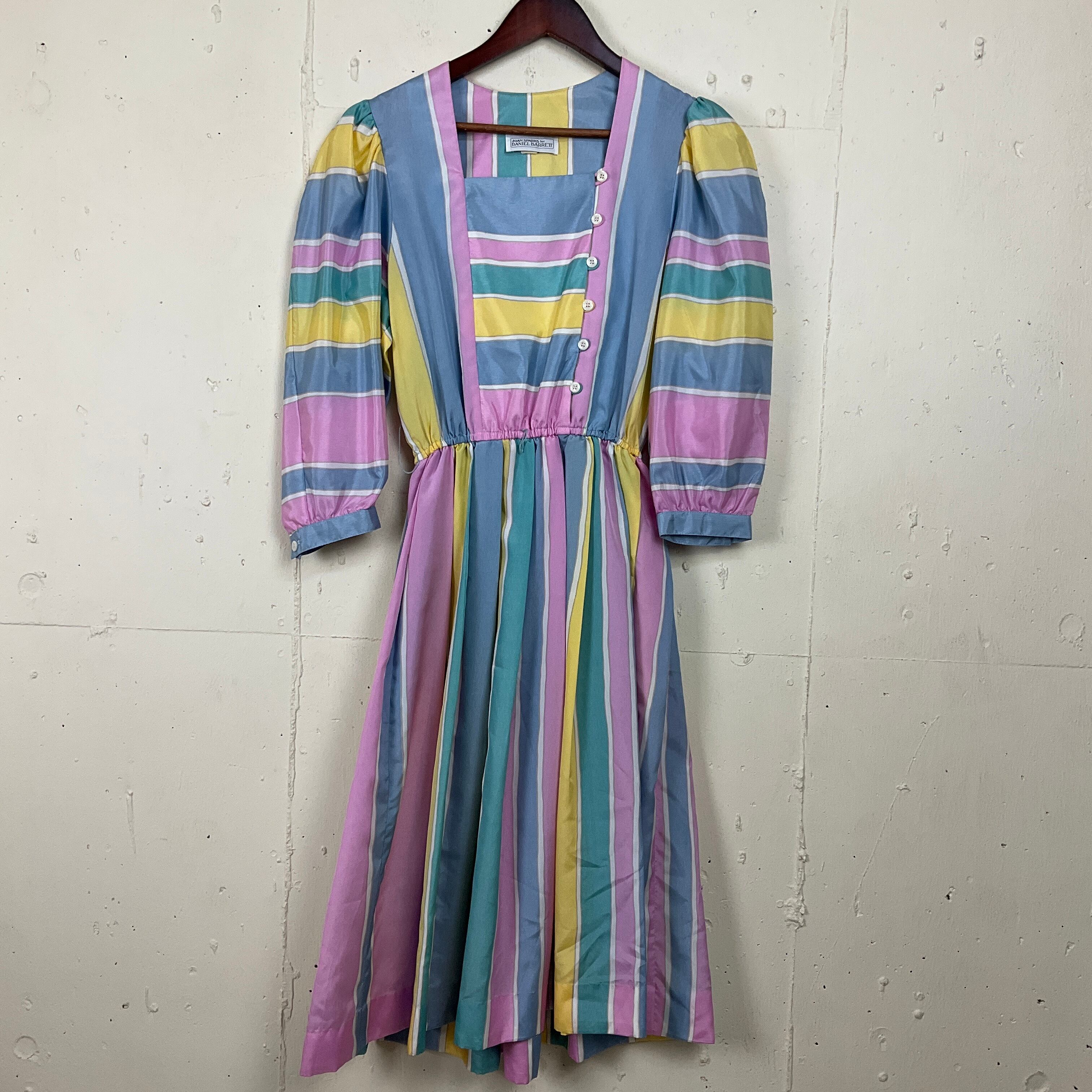 USA製 80年代 80s DANIEL BARRETT マルチカラー ストライプ ワンピース レディースM相当 古着 ヴィンテージ ビンテージ バルーン袖【f240528033】