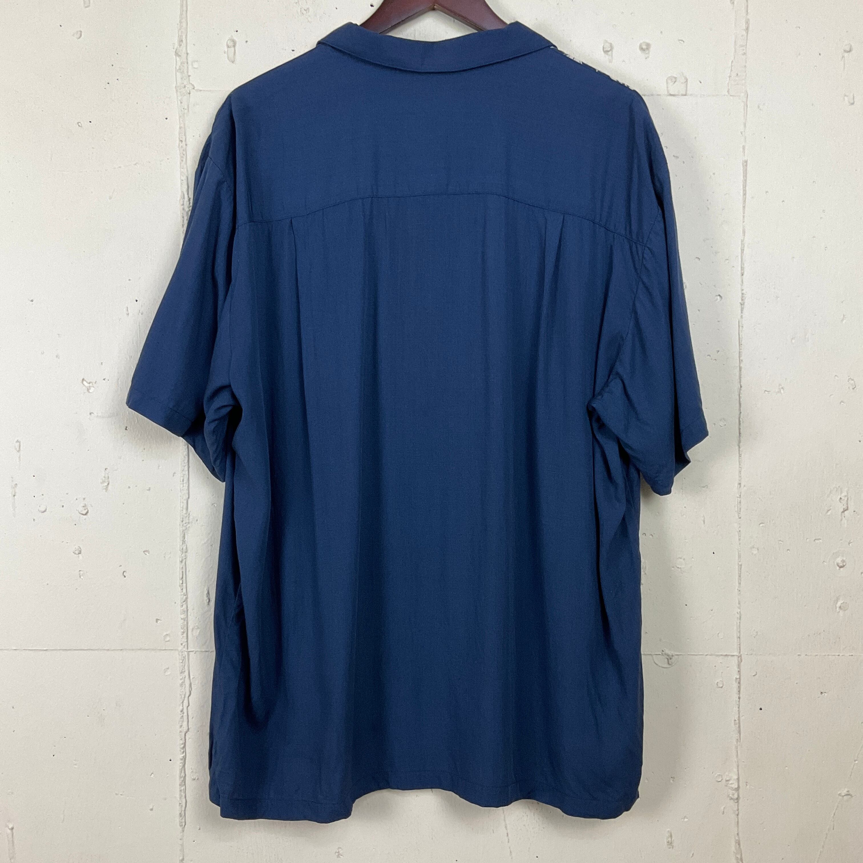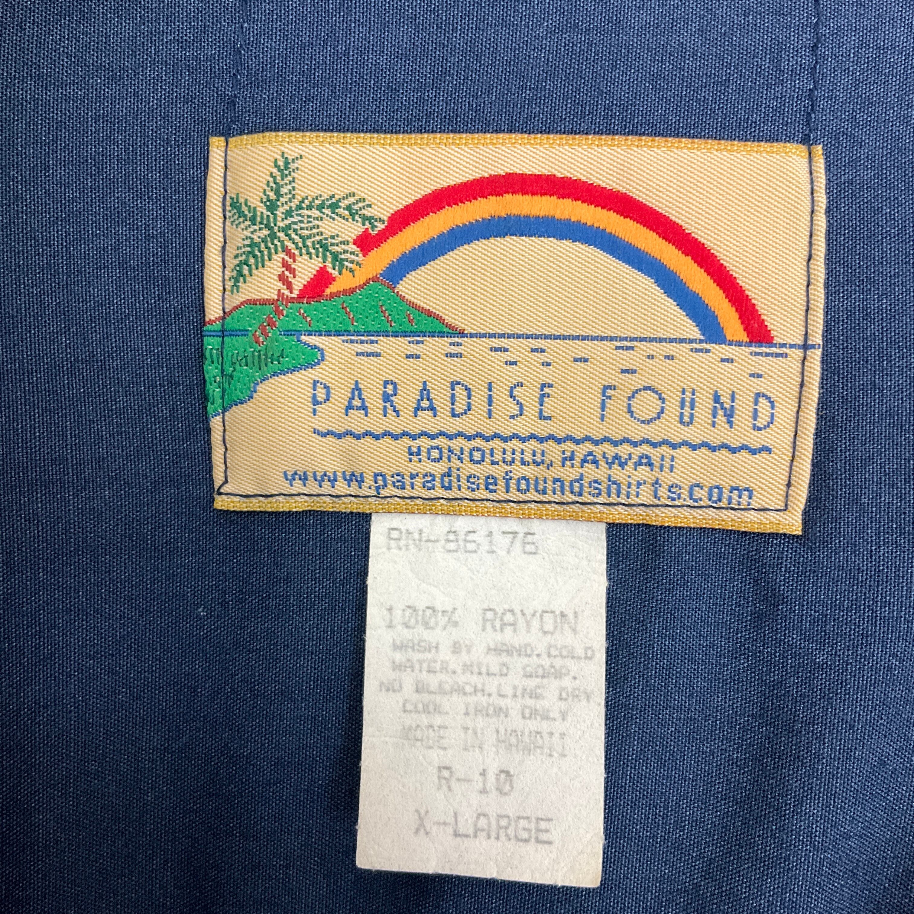 PARADISE FOUND パラダイスファウンド リーフ アロハシャツ レーヨン 半袖シャツ 古着 メンズXL ネイビー 紺【f240617007】