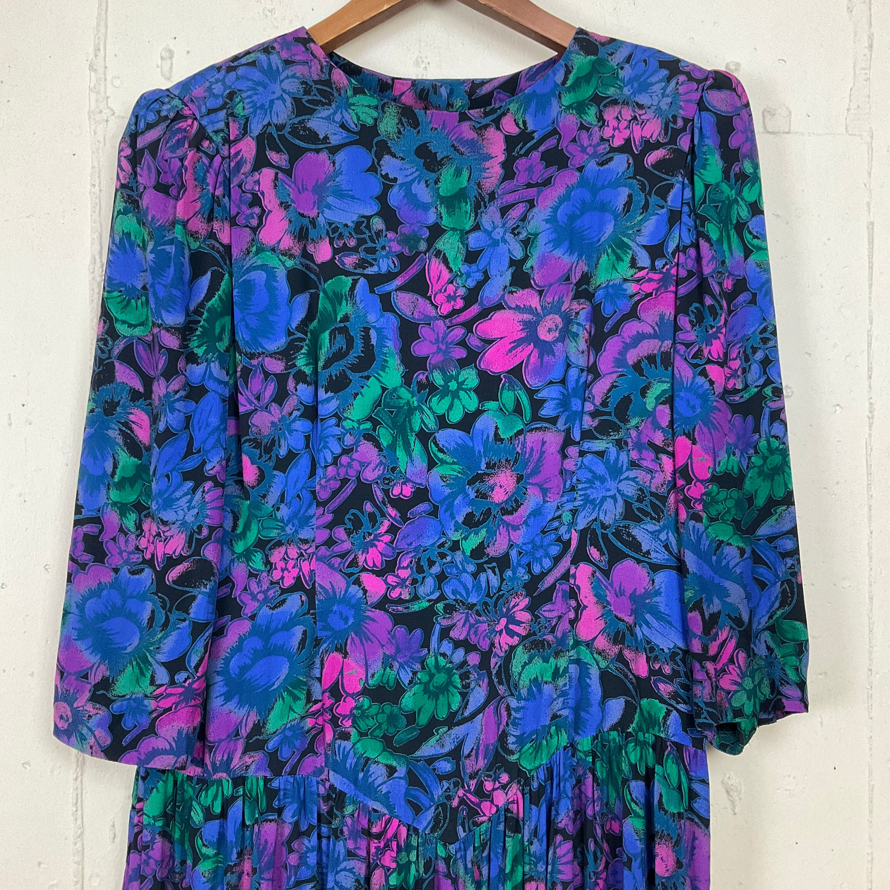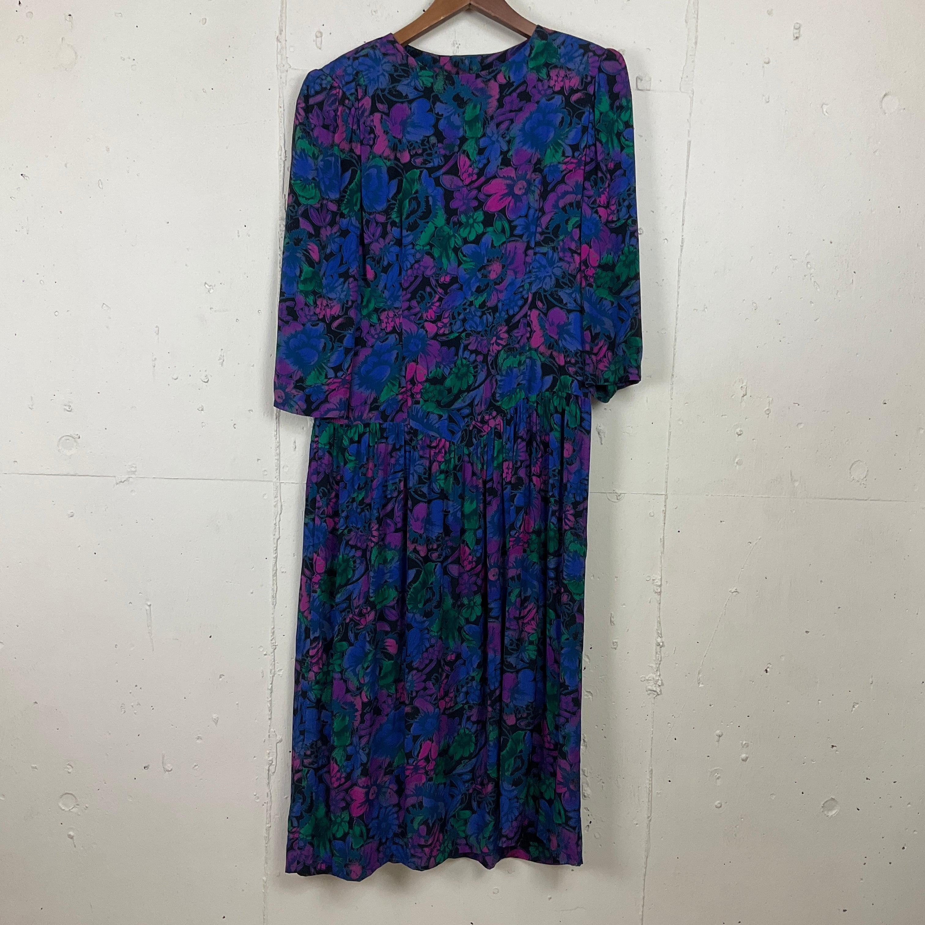 USA製 80年代 80s J.H.Paul 花柄 総柄 ロング ワンピース レディースM〜L相当 古着 ヴィンテージ ビンテージ【f240617014】
