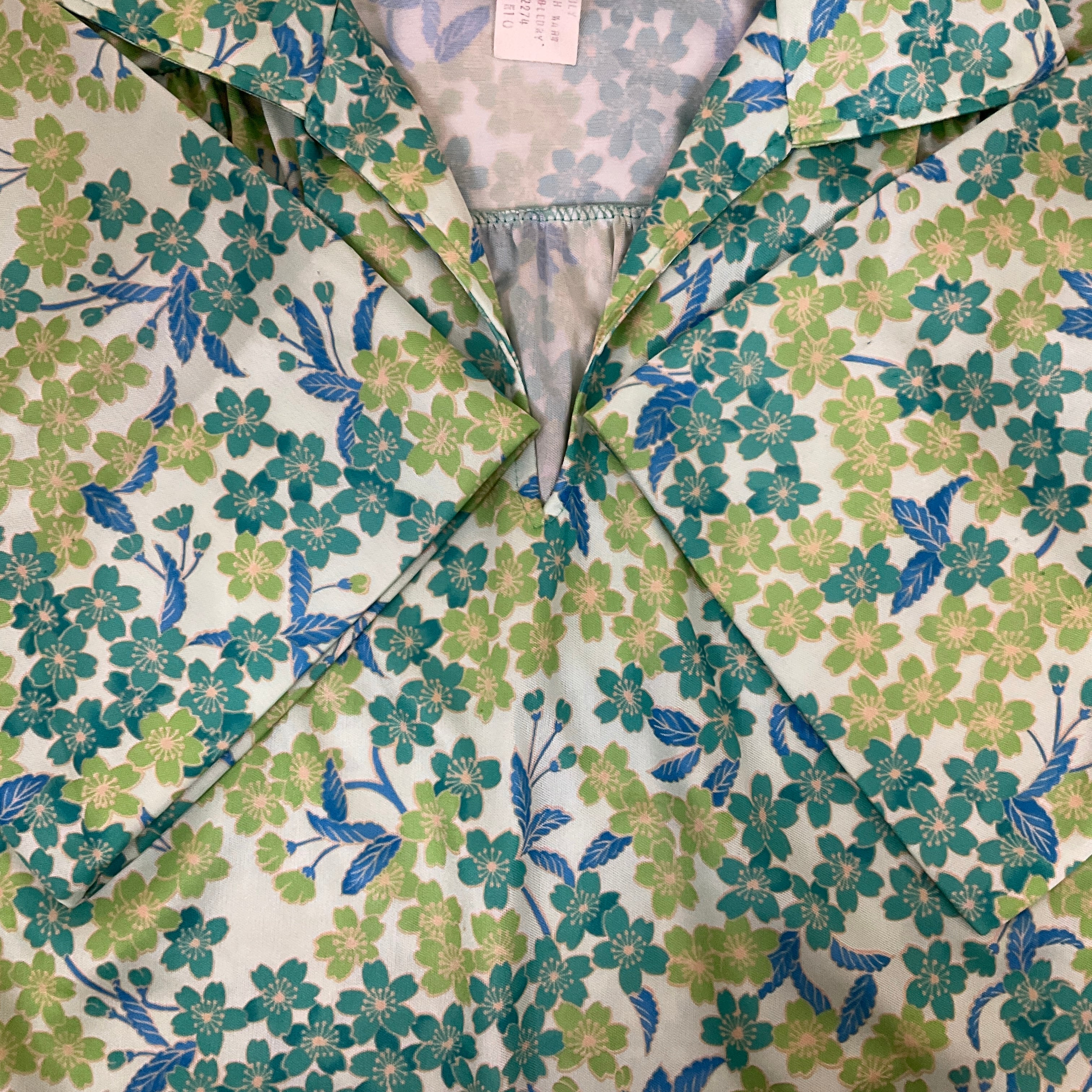 USA製 70年代 70s GILDA OF CALFORNIA 花柄 総柄 半袖シャツ ポリシャツ レディースM相当 古着 ヴィンテージ ビンテージ 黄緑 ライトグリーン【f240617018】